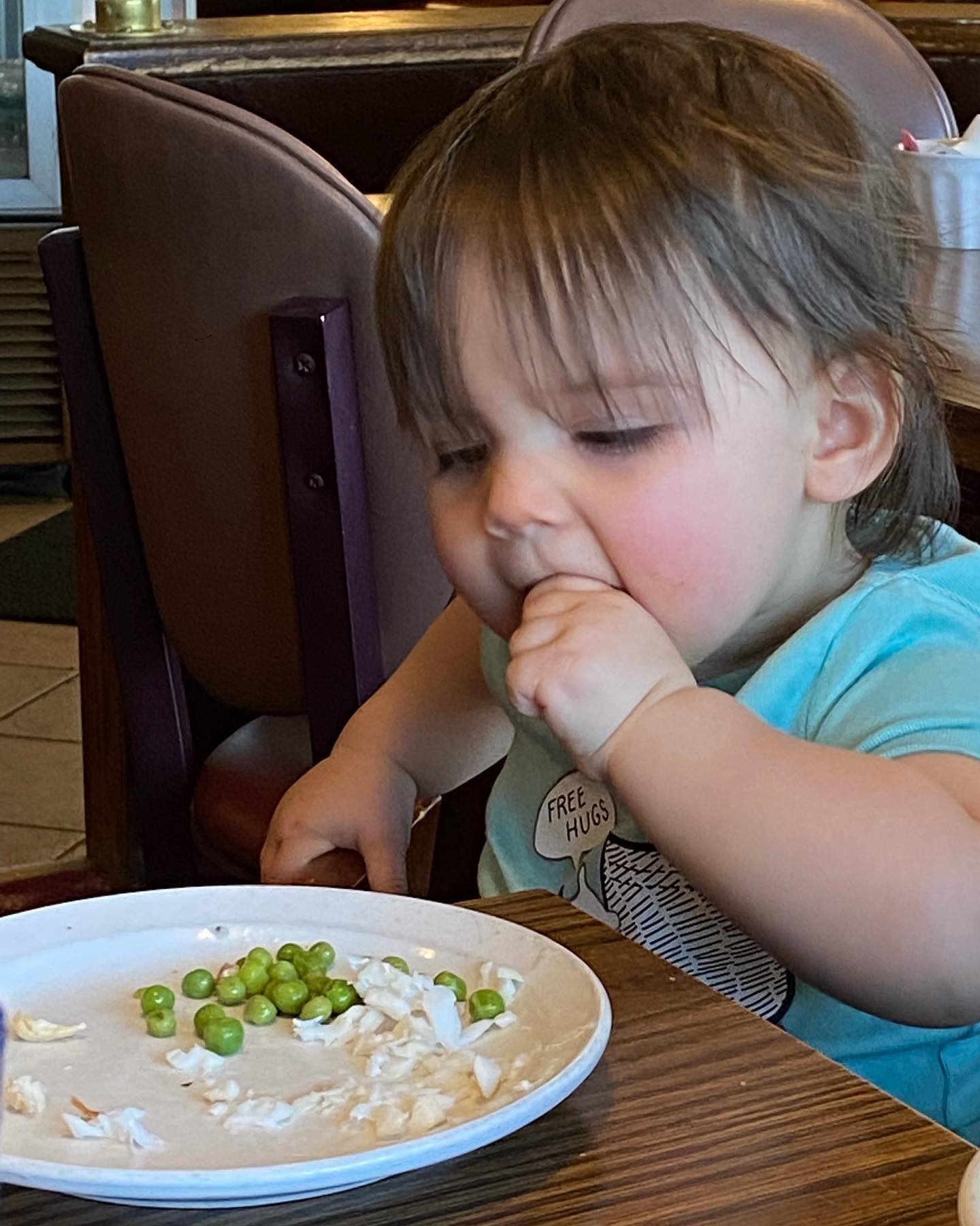 (She never liked peas, before…..but, all she ever tried were pureed…..)
