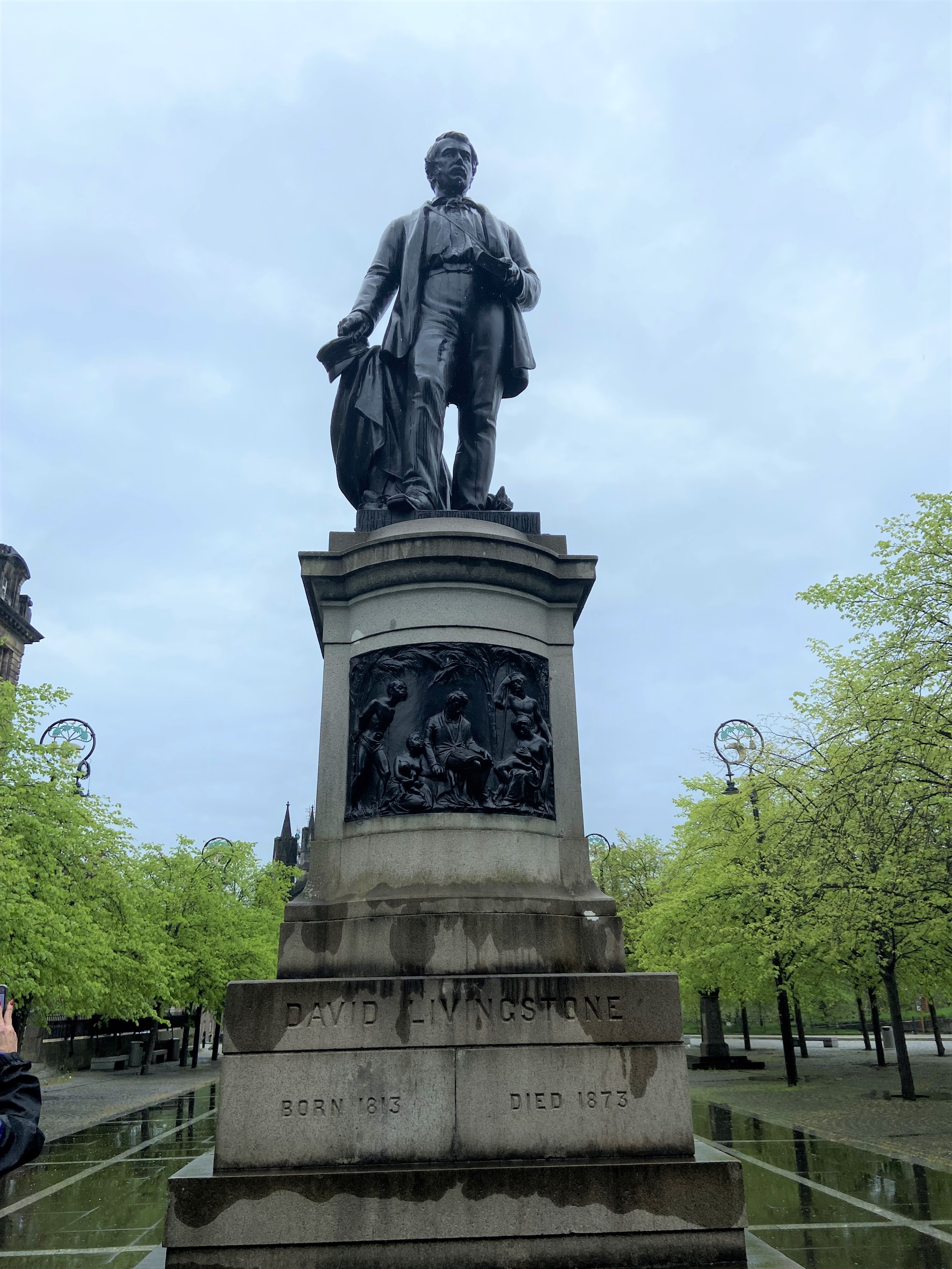 Scenes around Glasgow: A typical Police station, a 12th century cathedral, statue of David Livingstone – an explorer born 1813 / died 1873, and the oldest building in Glasgow: