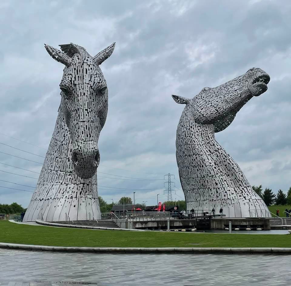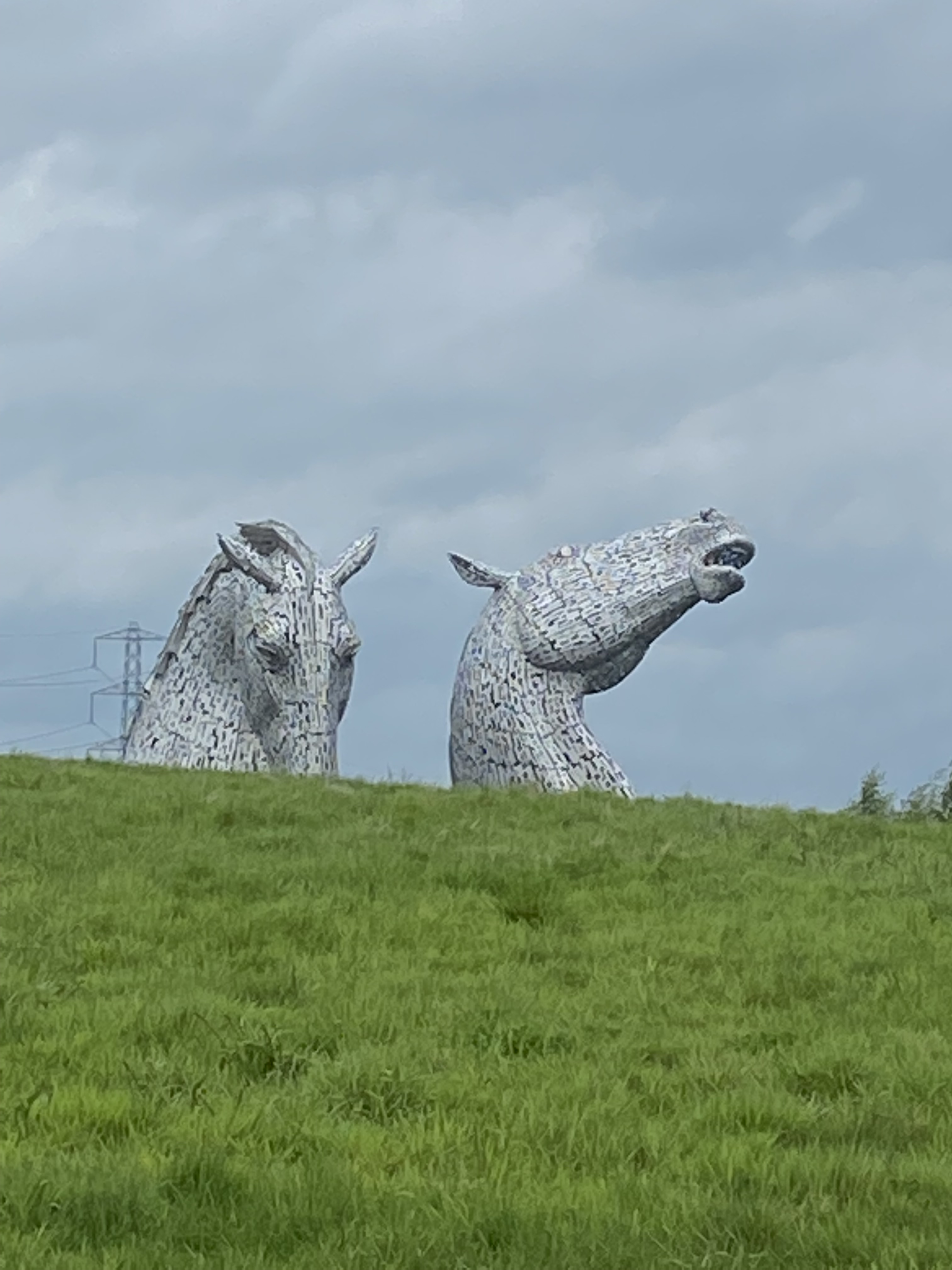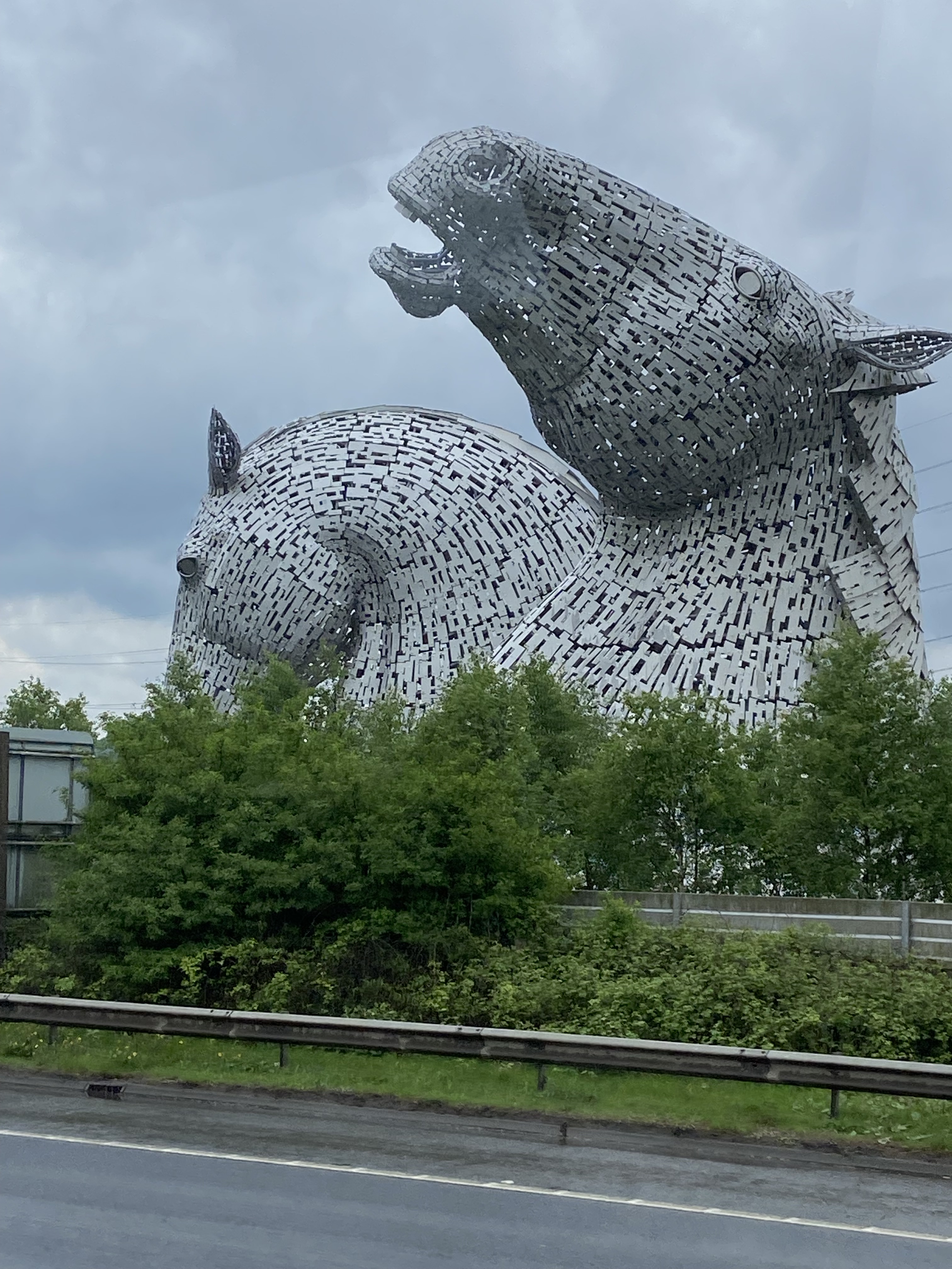 The first unplanned stop was to see the Kelpies. Kelpies are water spirits of Scottish folklore, typically taking the form of a horse and reputed to delight in the drowning of travelers and casting spells. The Loch Ness Monster is a Kelpie. We loved that we got to see these huge metal sculptures…..so beautiful!!!