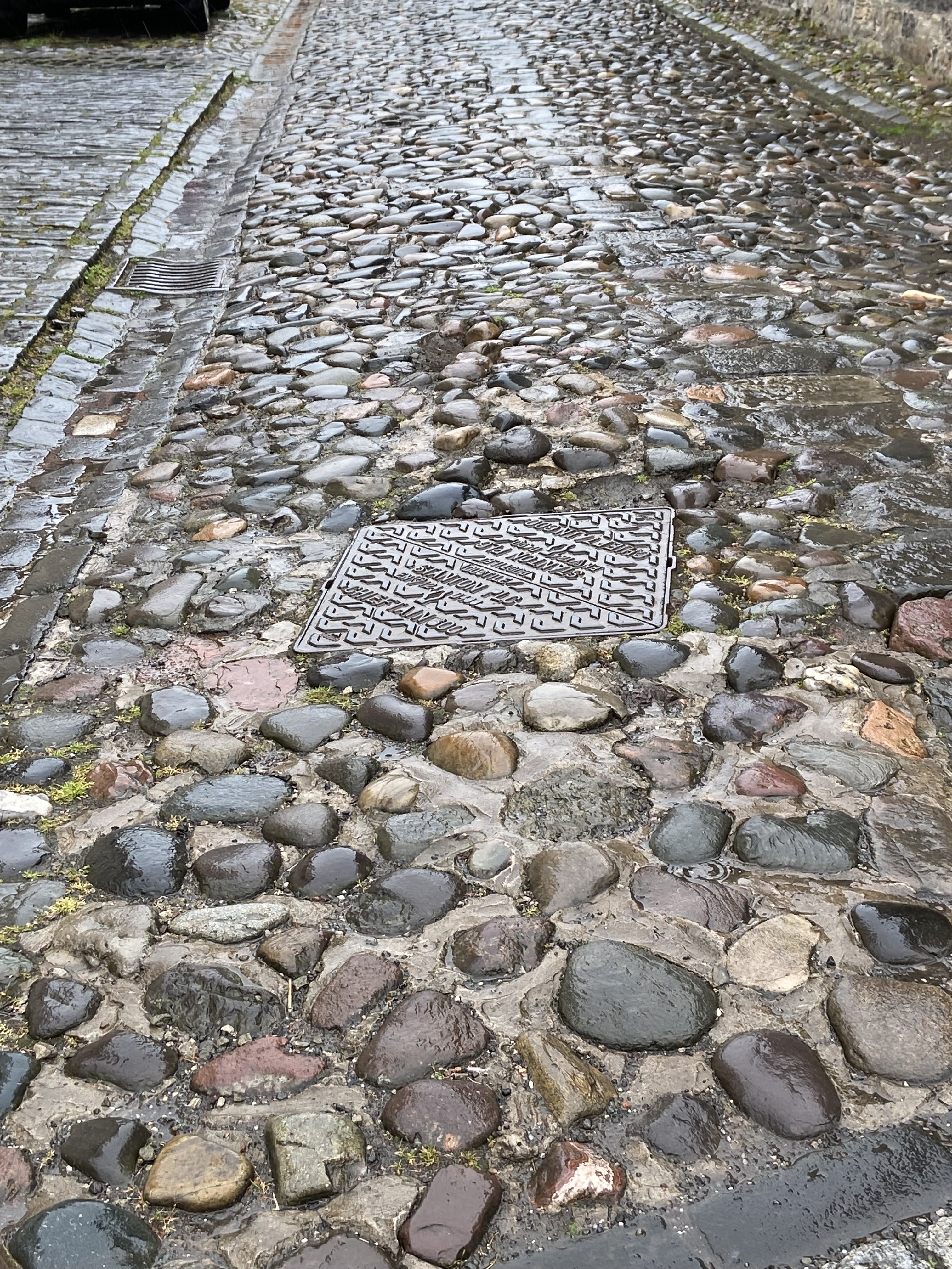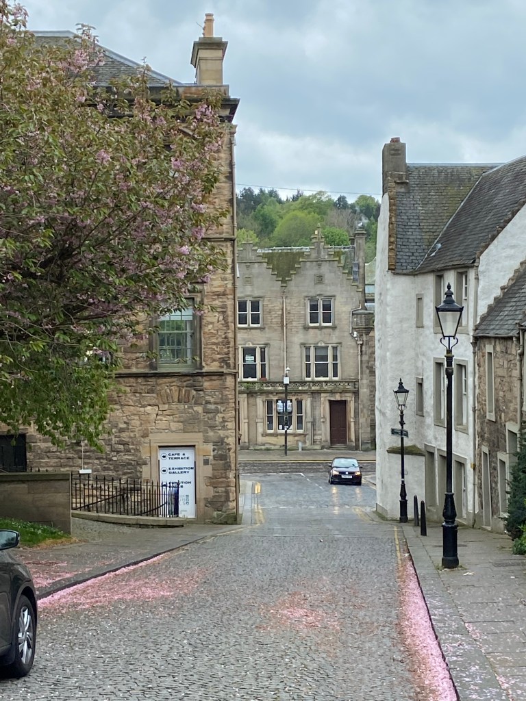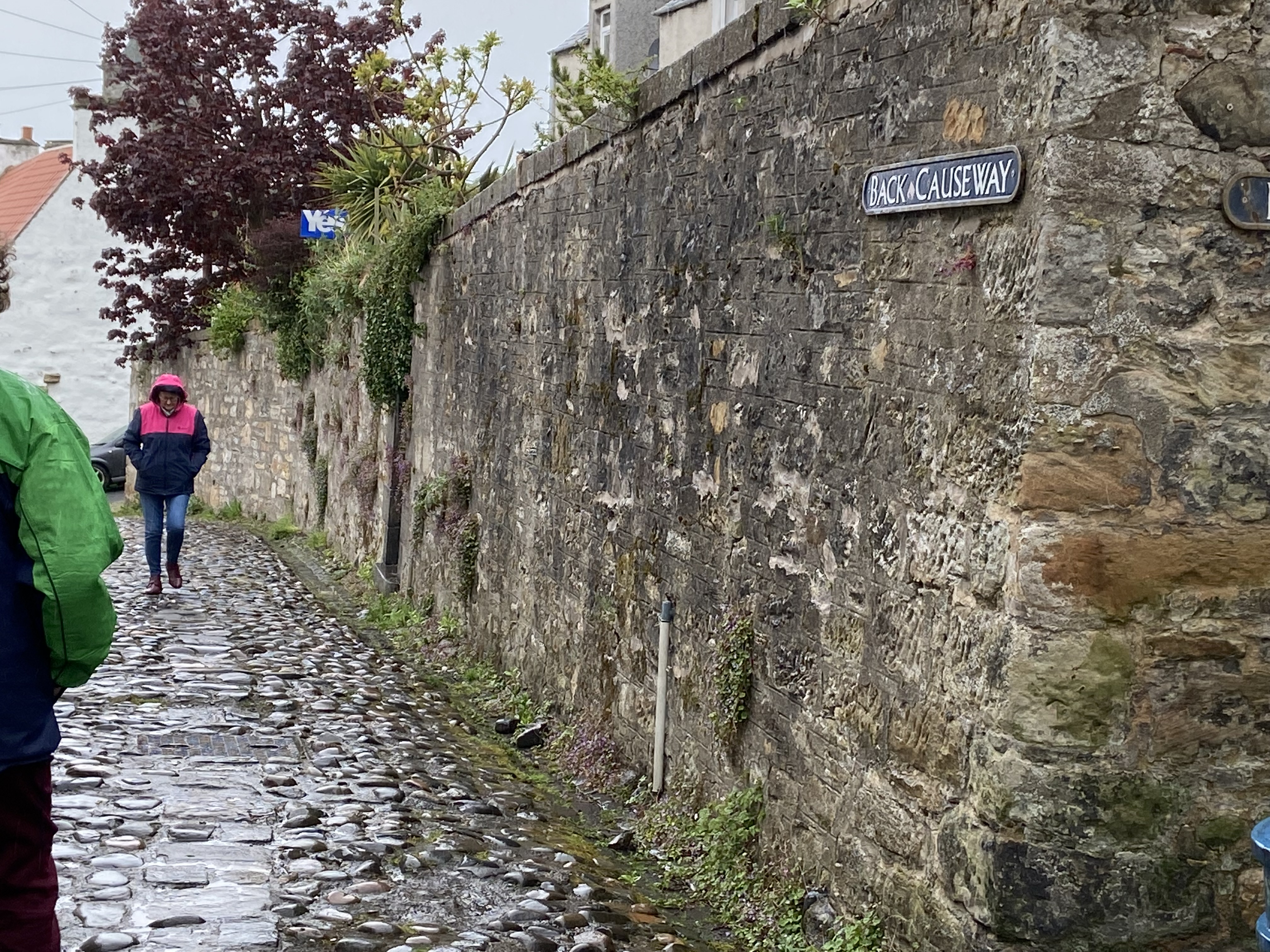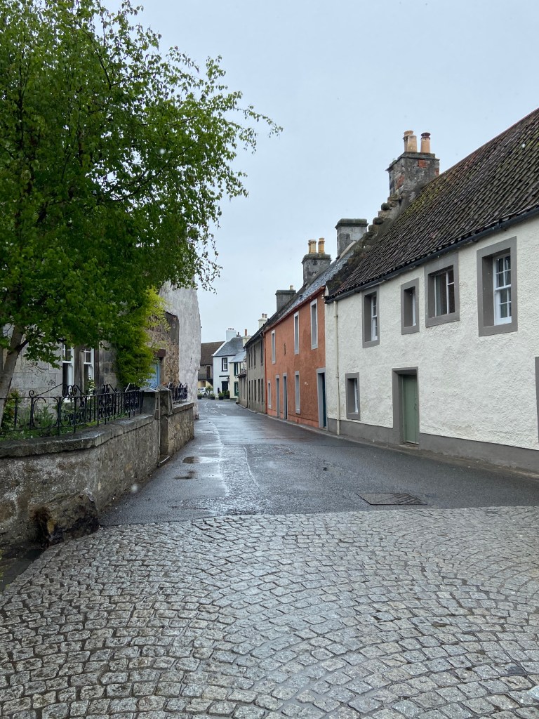 Then, we headed to Culross — the village of Culross is used in the filming of Outlander, too. Unfortunately, in addition to the “Deich” day, everything in the village was closed. So, soon after we got off the coach, Mick called Tam and told him to head back to get us. Some used the time to wander around for Outlander photos and some found a small coffee shop that did happen to be open to wait for Tam to return. It was a quaint little village right on the water…..would have been nice to spend some time there if the weather was better and if some of the shops were open.
