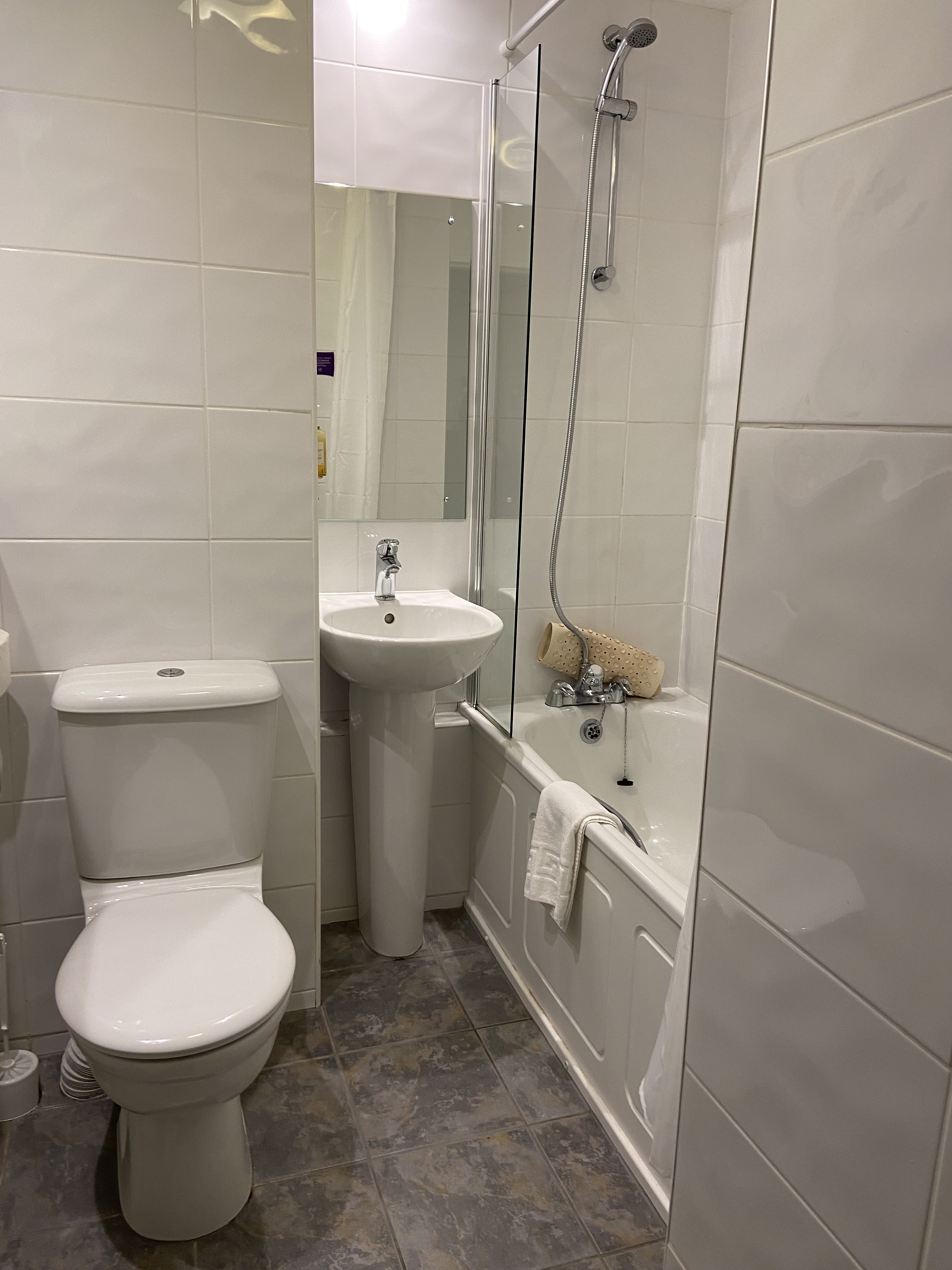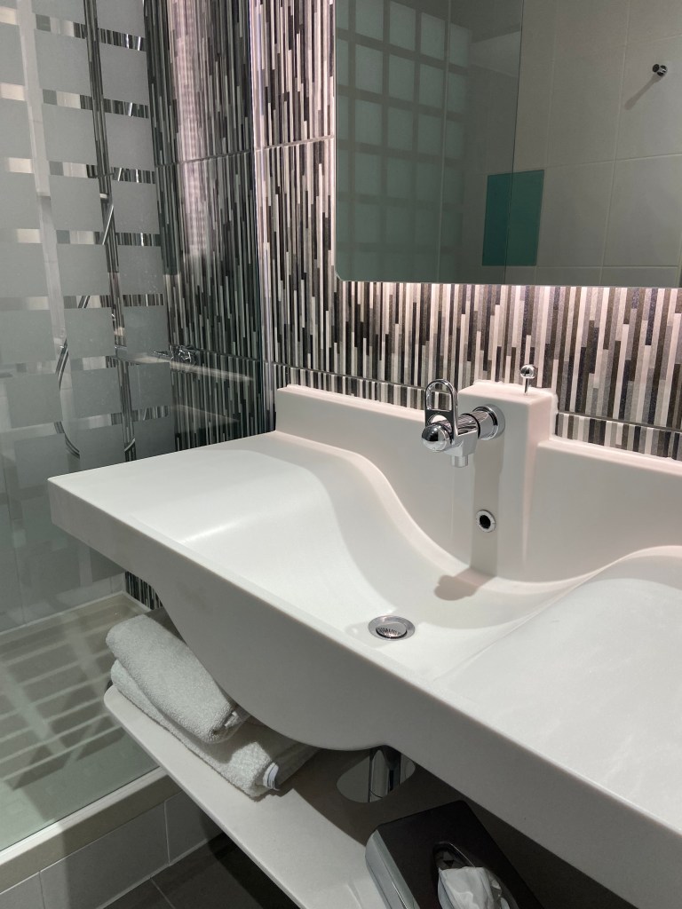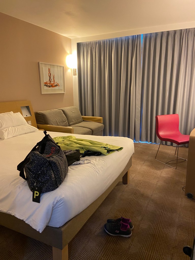 We left Culross and headed to Edinburgh to get checked into our hotel. The hotel we stayed at for two nights in Edinburgh was Novotel Edinburgh Park – very nice hotel with an amazing shower, comfortable bed, and another buffet type breakfast that was included and had the same typical Scottish breakfast items – this was my room: