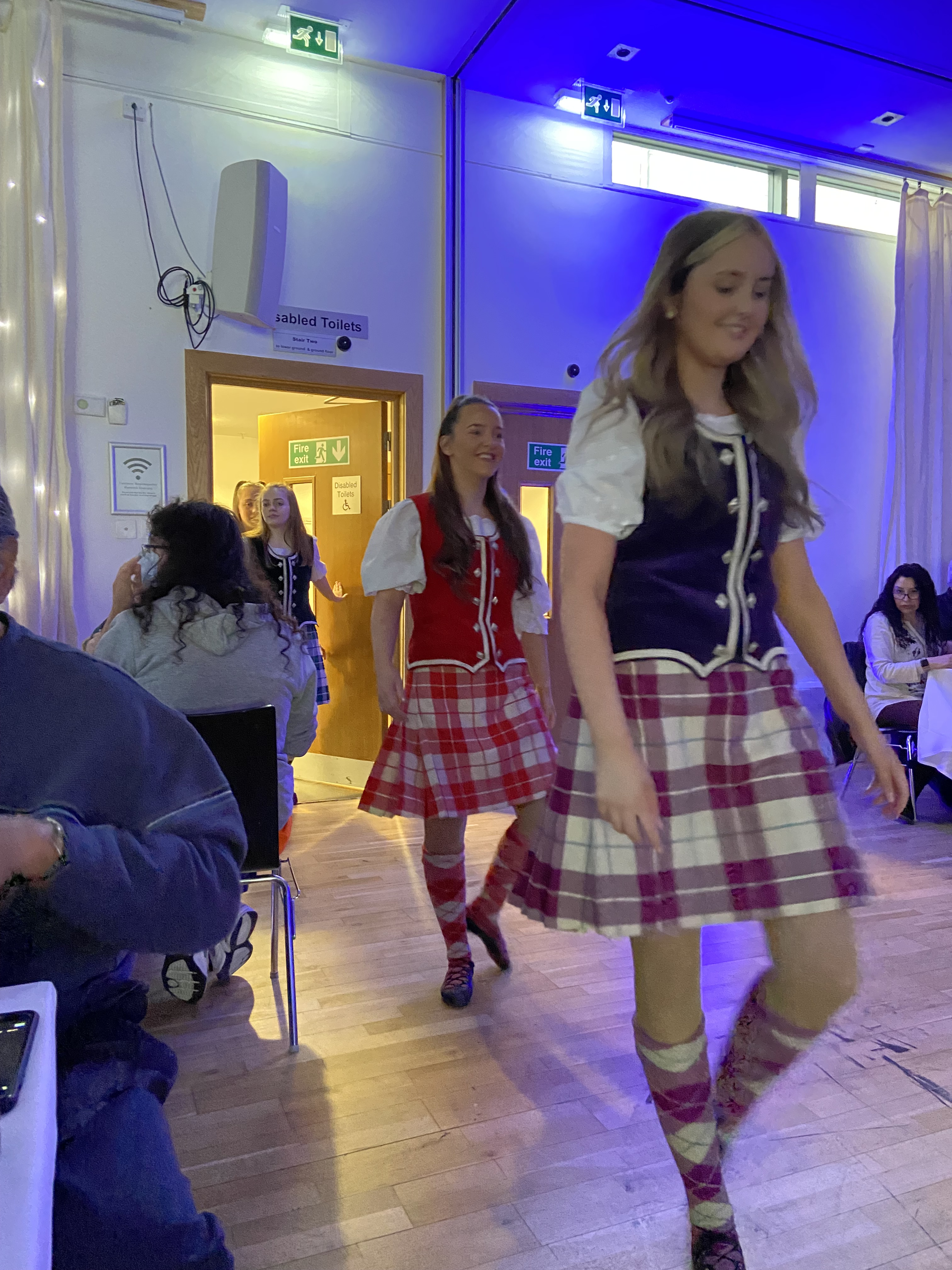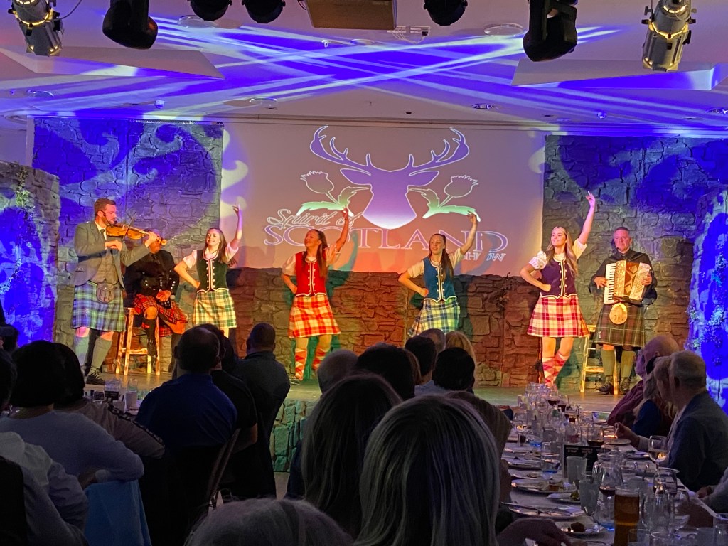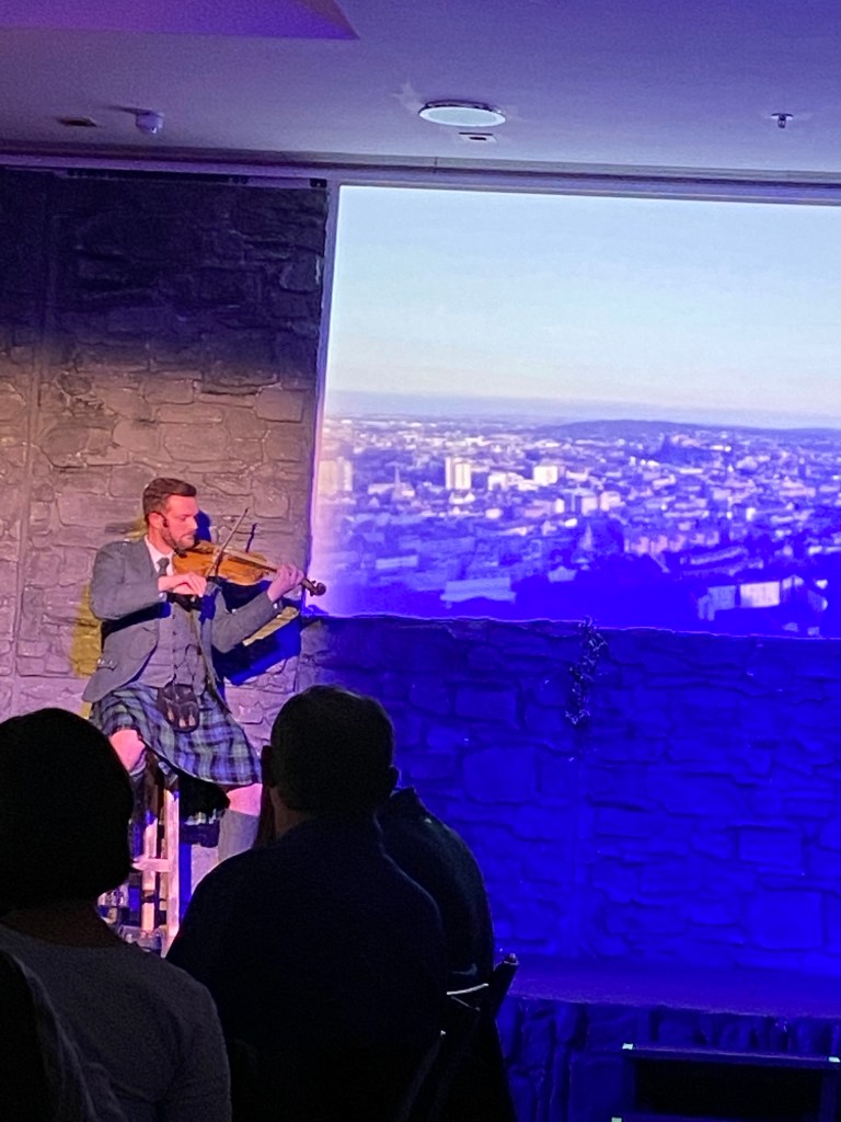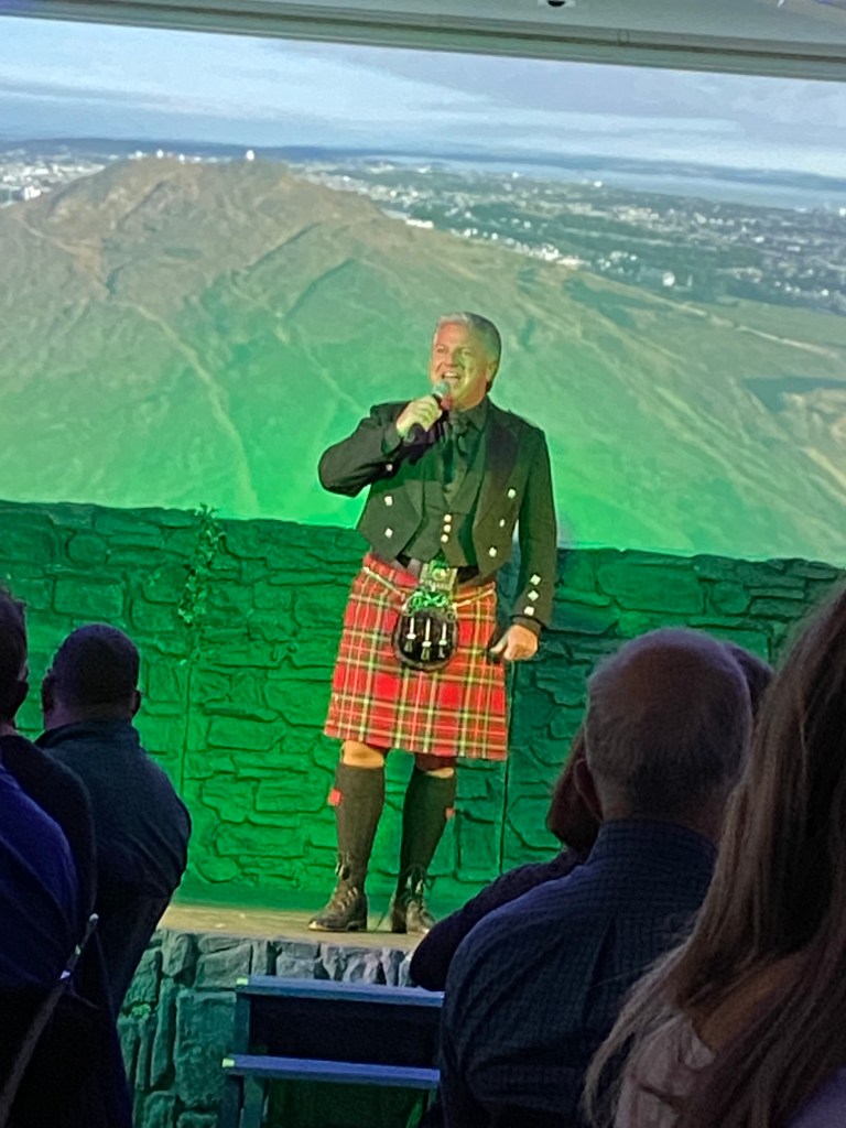 After we settled in, we met down at the lobby so the coach could take us to our first optional excursion. It was so much fun!!! We were taken to a venue that put on a traditional Scottish night out called “The Spirit of Scotland”— dinner, Highland dancers, bagpipers, singers, and the Ceremony of the Haggis! It was a great evening!