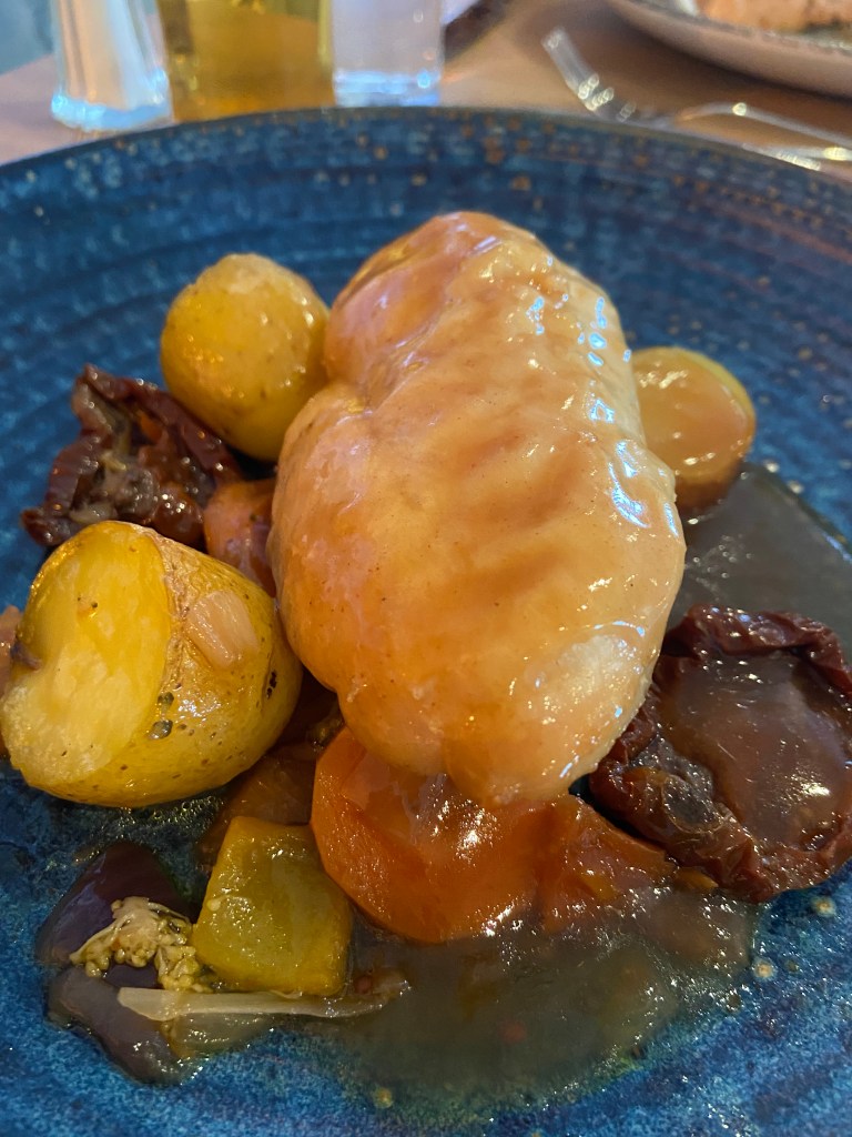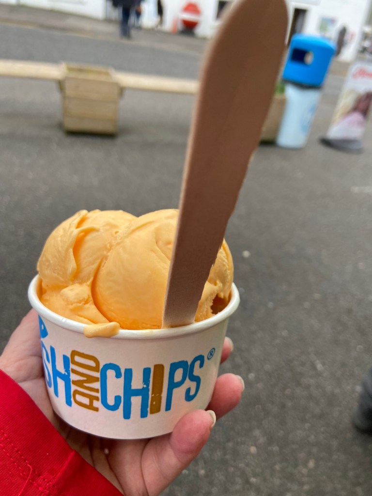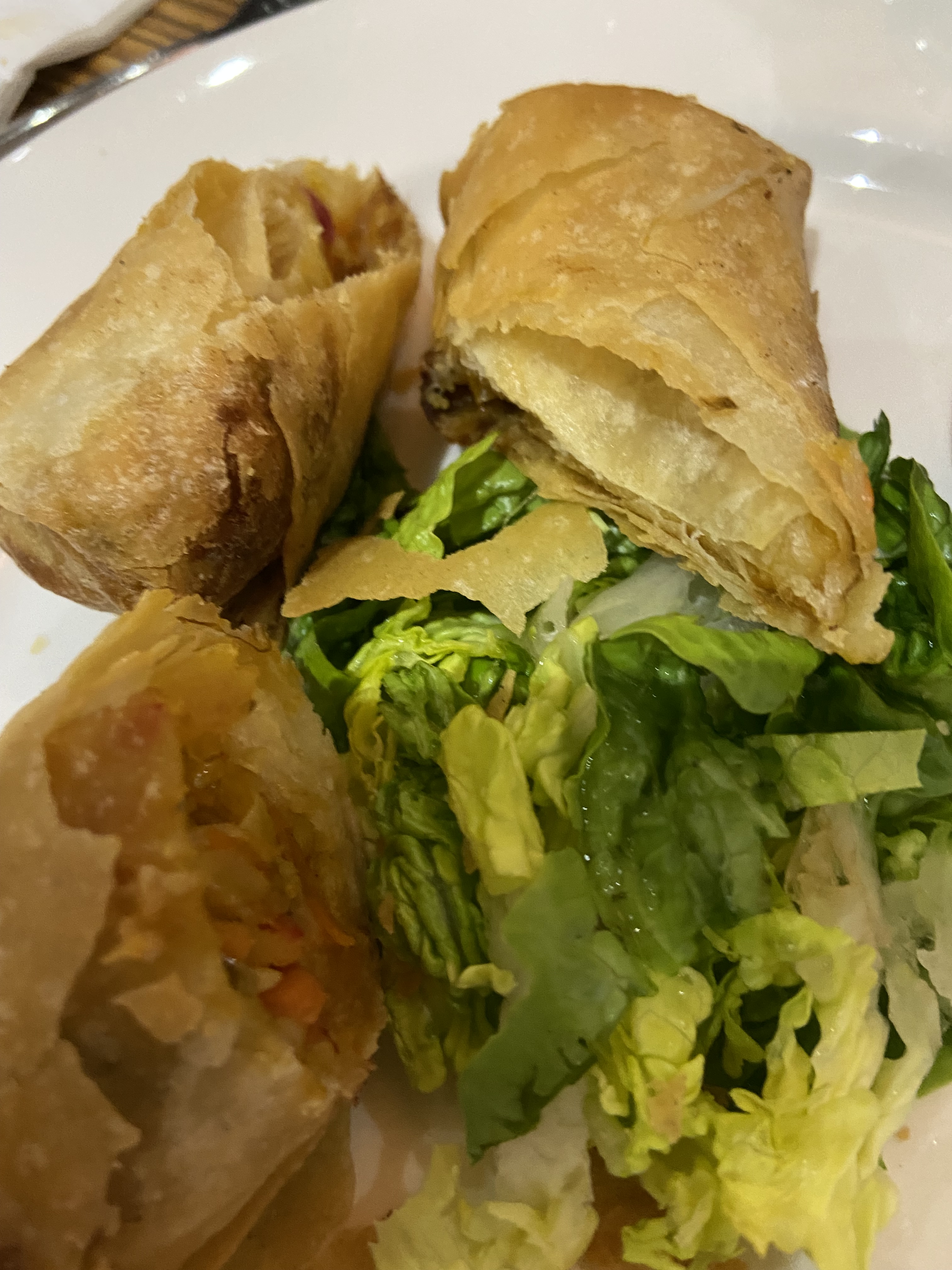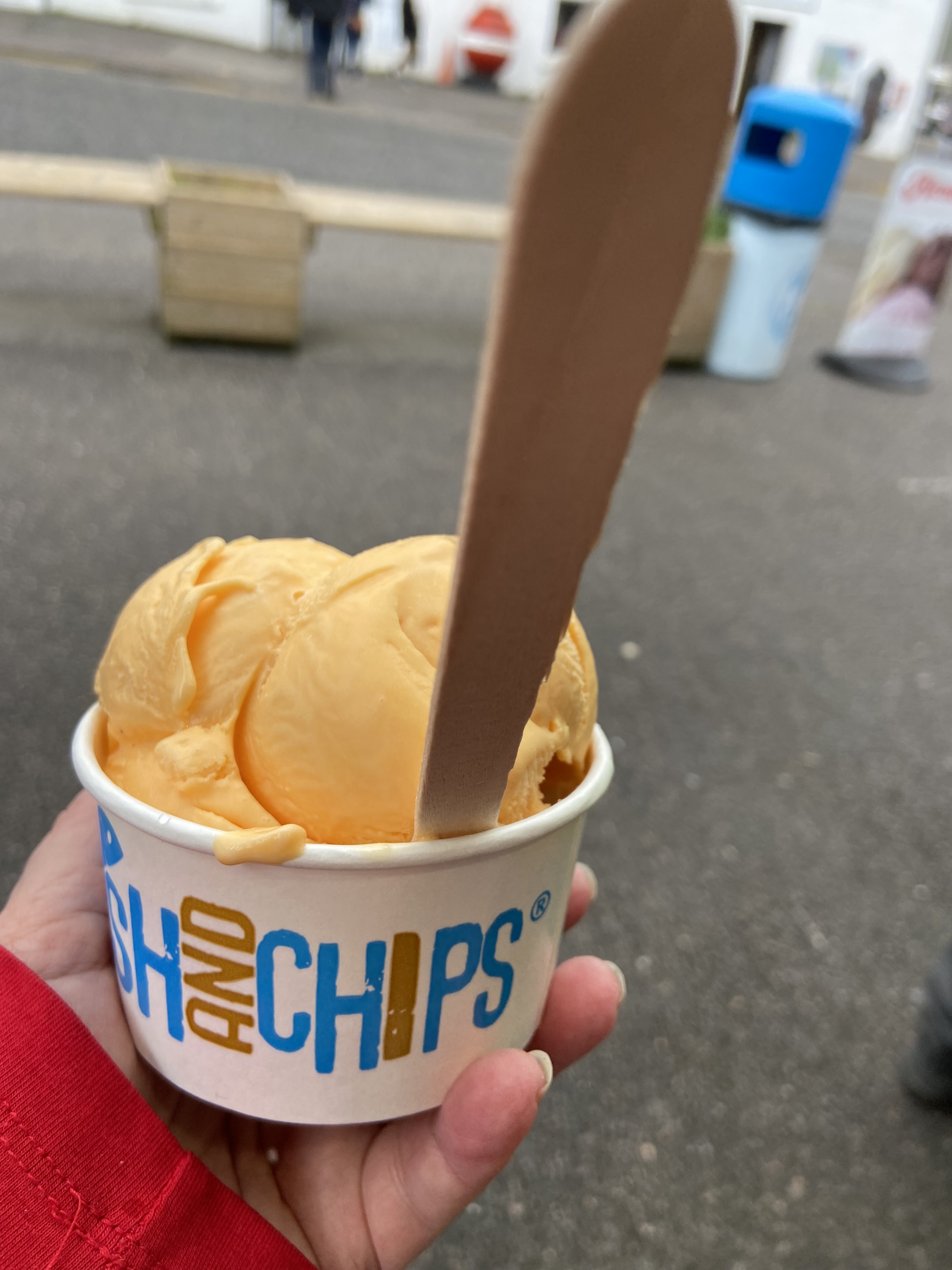 That night, we had our final dinner together – I chose the spring rolls, bangers (sausage) and mash, and ice cream……I was a little leery of the sausage and mashed potatoes because it was covered in gravy — I thought, gravy on sausage???? But, I decided to try it…..one more traditional Scottish / British meal…..and I am so glad I did – it was delicious!!!