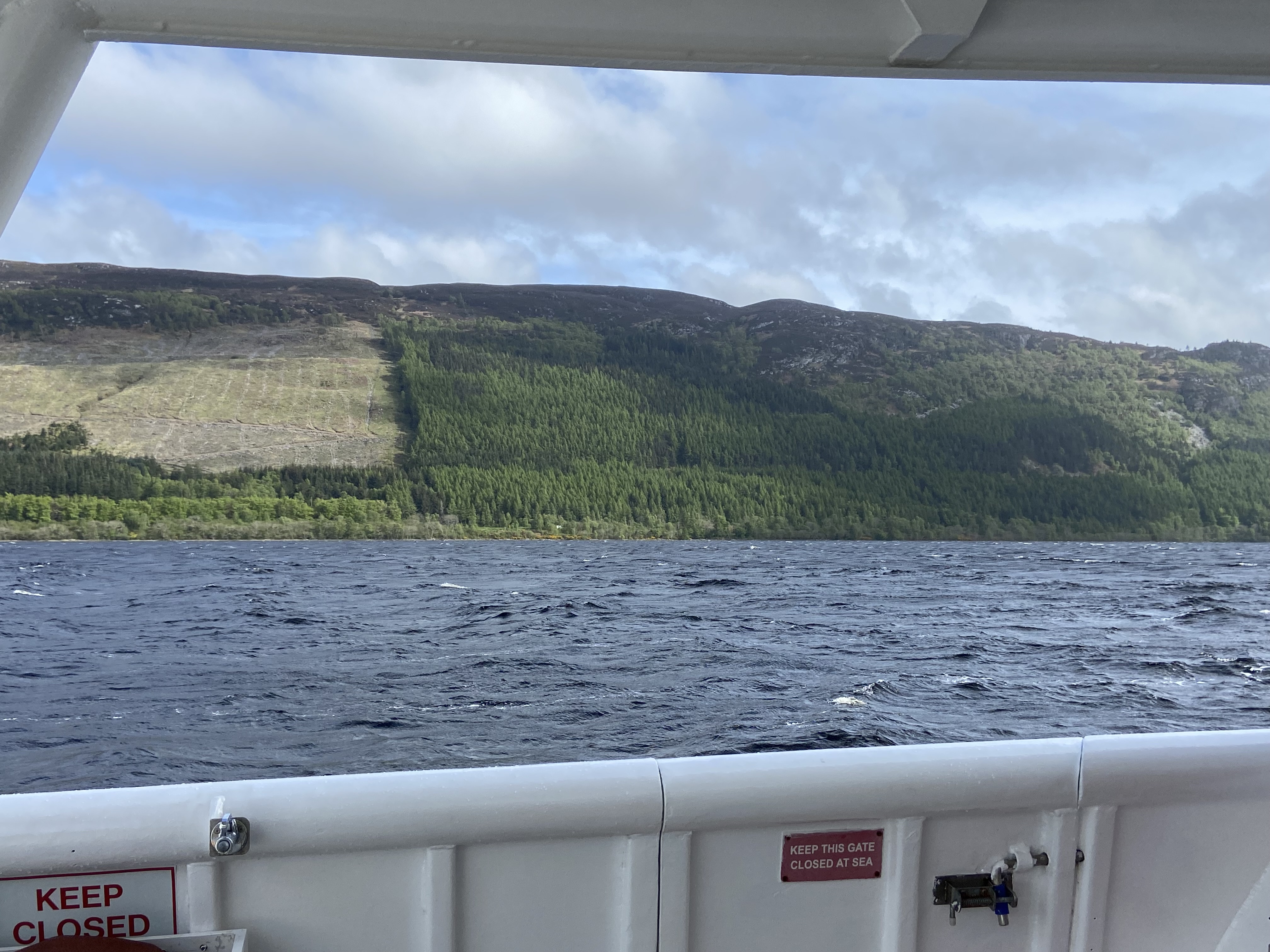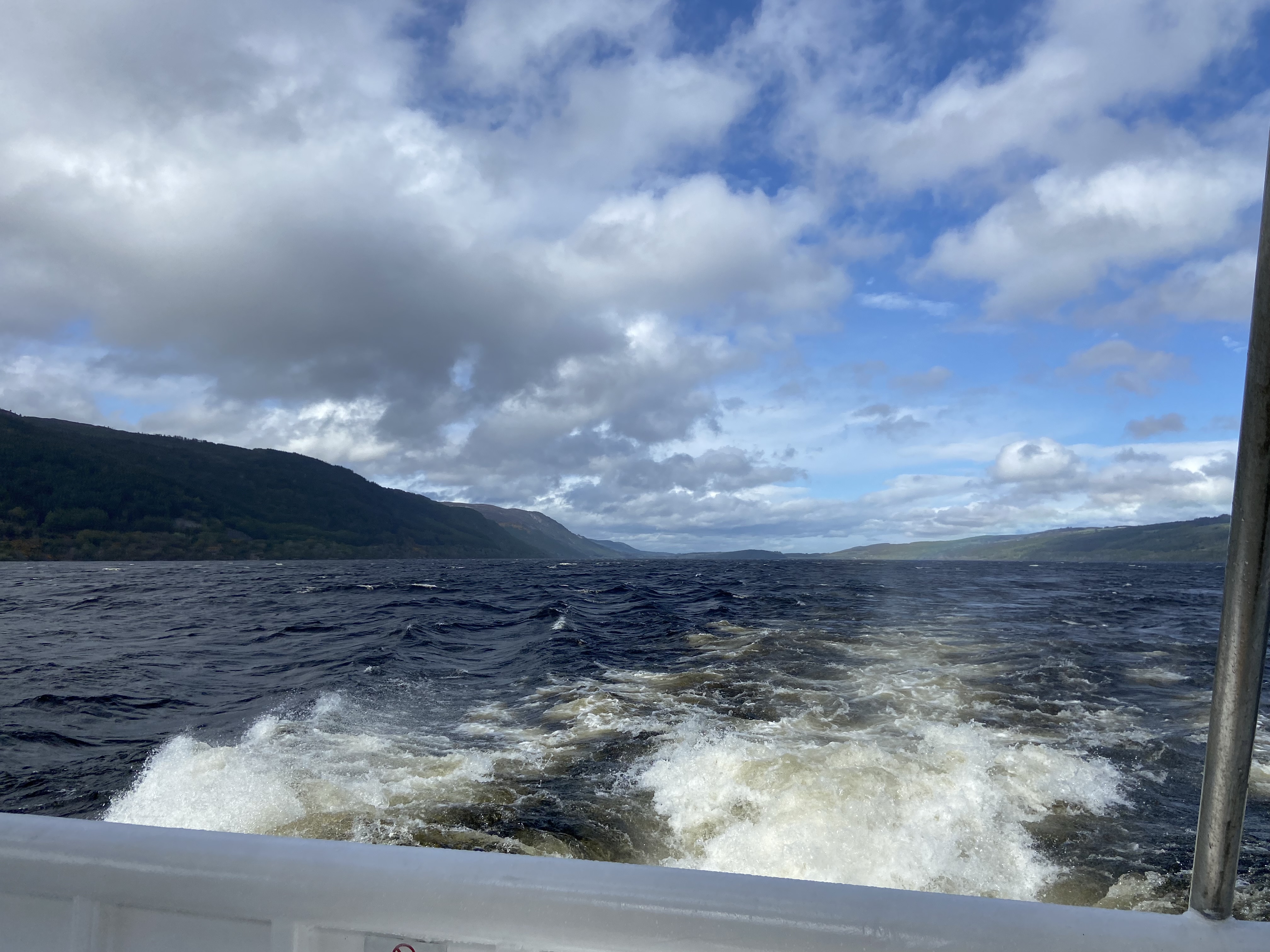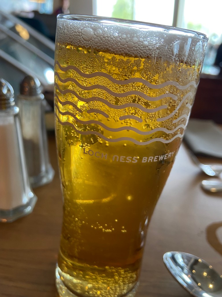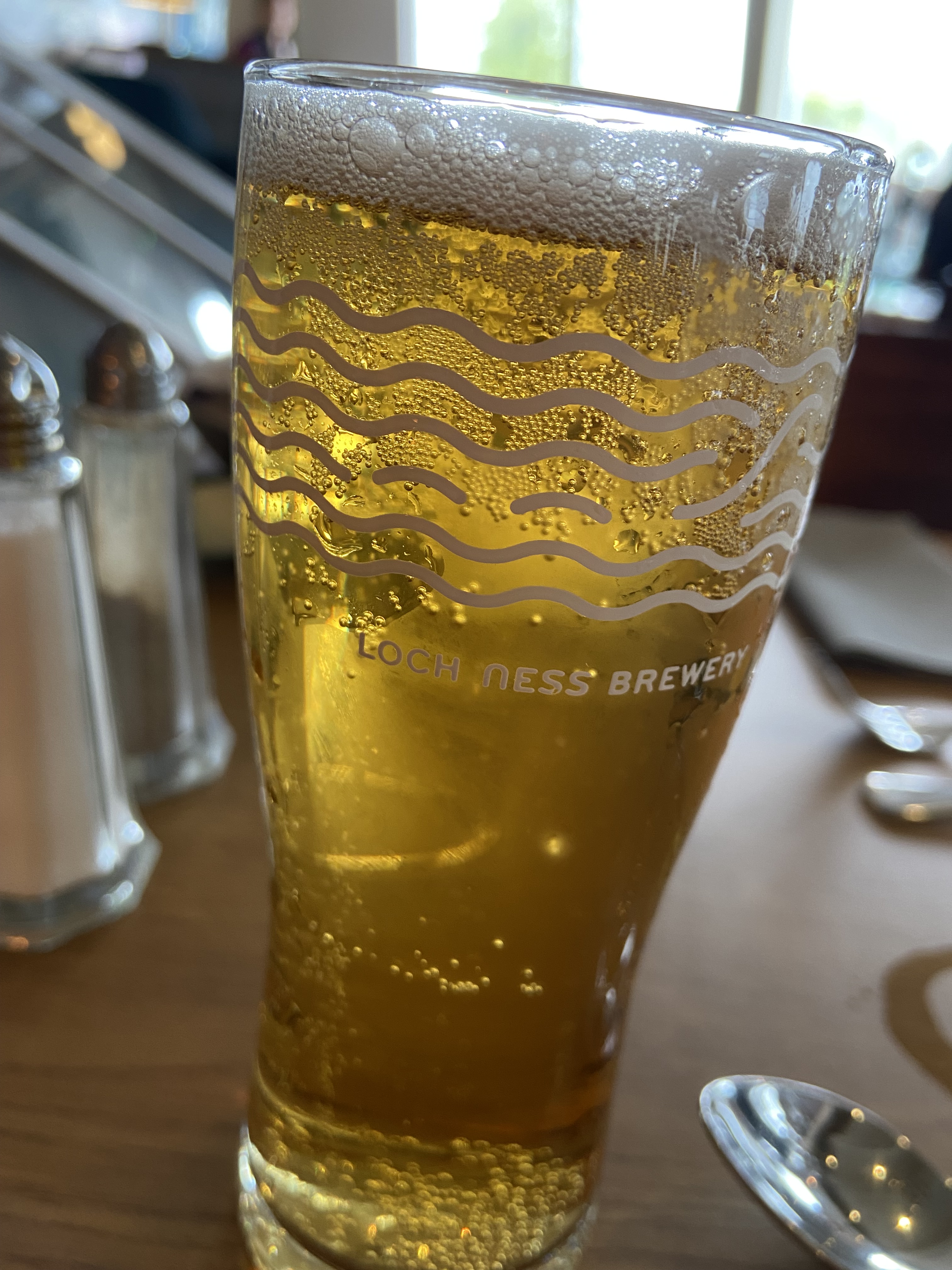 That afternoon / evening, we took a boat cruise on Loch Ness to search for Nessie…..no sightings! hahaha But, the cruise was very nice and Loch Ness is beautiful! Loch Ness is the largest fresh water body of water in Great Britain by volume! And it is quite the experience. After the cruise, we went to an exhibit that went through the history and investigations surrounding the Loch Ness Monster (Nessie) and had dinner – chicken with potatoes and veggies and a berry crisp with custard….and a 1/2 pint of locally brewed Loch Ness Lager!