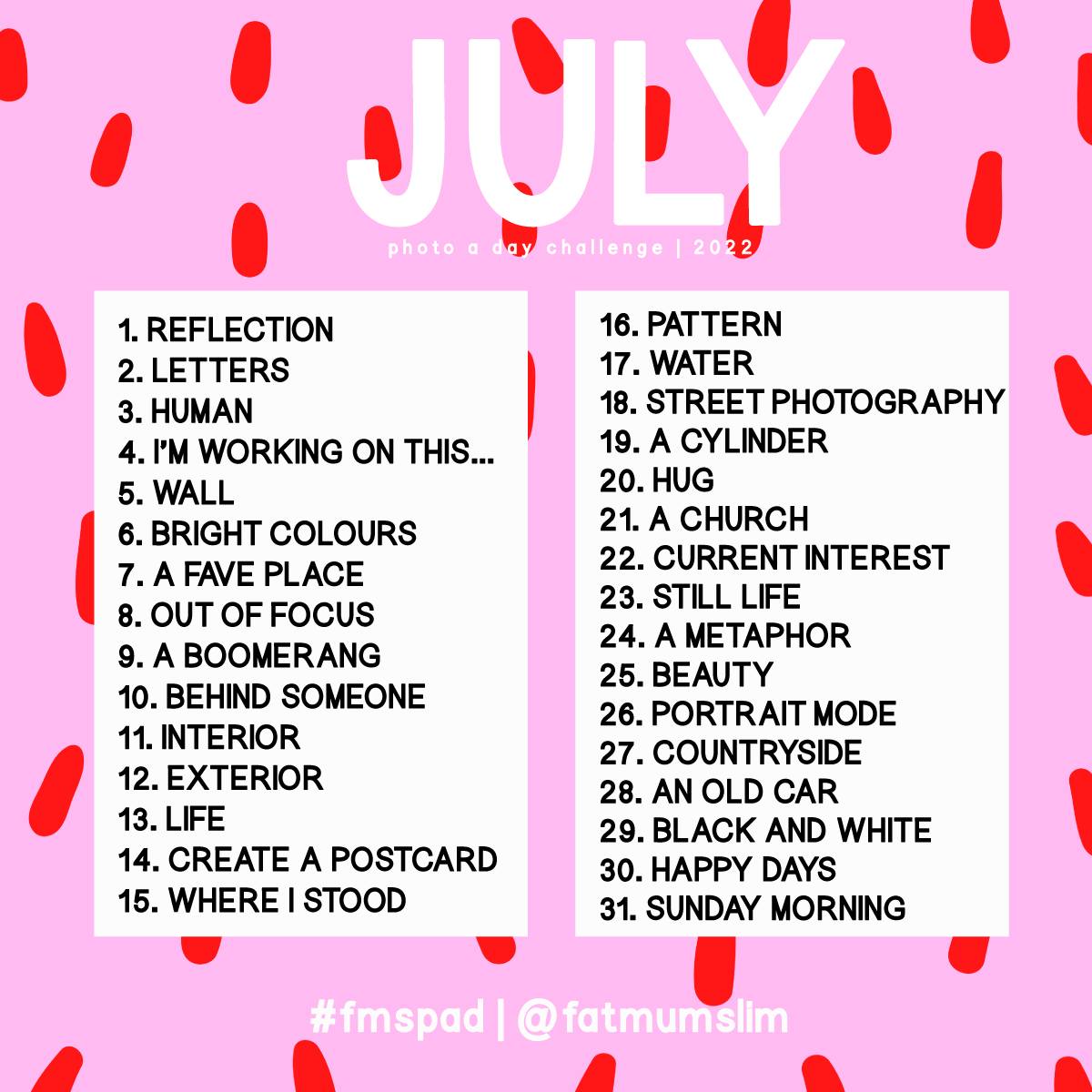 For those inquiring minds who like to know……here is July’s Daily Photo Challenge Topic List: