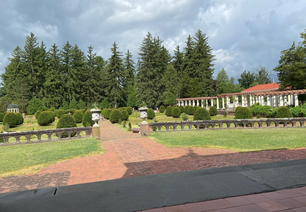 Let me just get one thing out of the way — we were a bit disappointed in the gardens. They are not maintained like I imagine Mary Thompson maintained them. While not in HORRIBLE shape, they are in desperate need of some tender loving care. But….to put it in perspective – remember I said the nephew left the property in disrepair and sold it to the Federal Government who ran it as a VA hospital for many years and the non-profit who took over the restoration only got involved in the early 70s – with no outside funding and mainly volunteers and then the “Covid years”…..I guess they are actually in pretty good shape, considering! The layout of them is amazing and some were in much better condition than others — I could imagine how stunning they must have been back in Mary’s day.