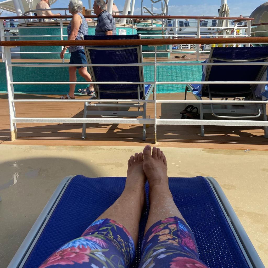 ….took a nap on a lounge chair on the pool deck of a cruise ship in the Mediterranean Sea!