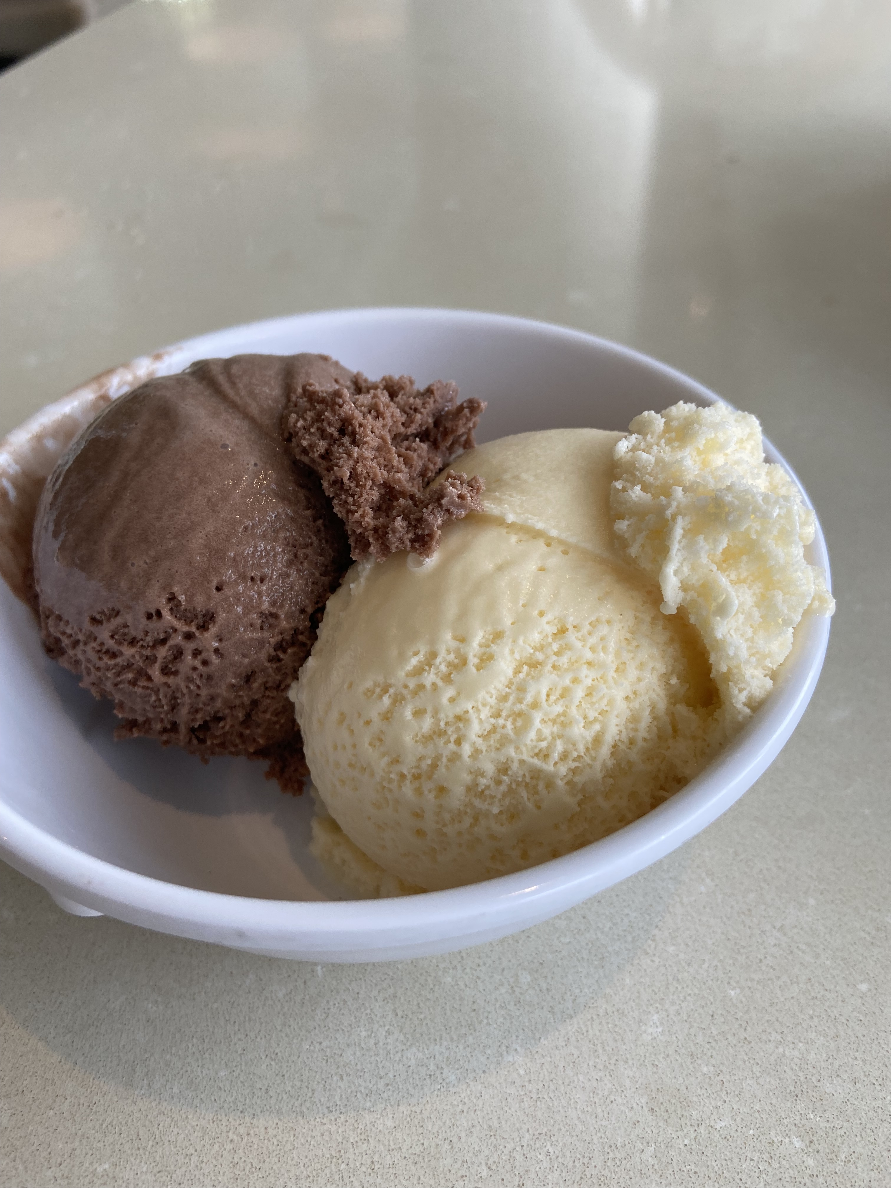 All these plates were from the buffet — fruit, ice cream, breakfast — all very good!