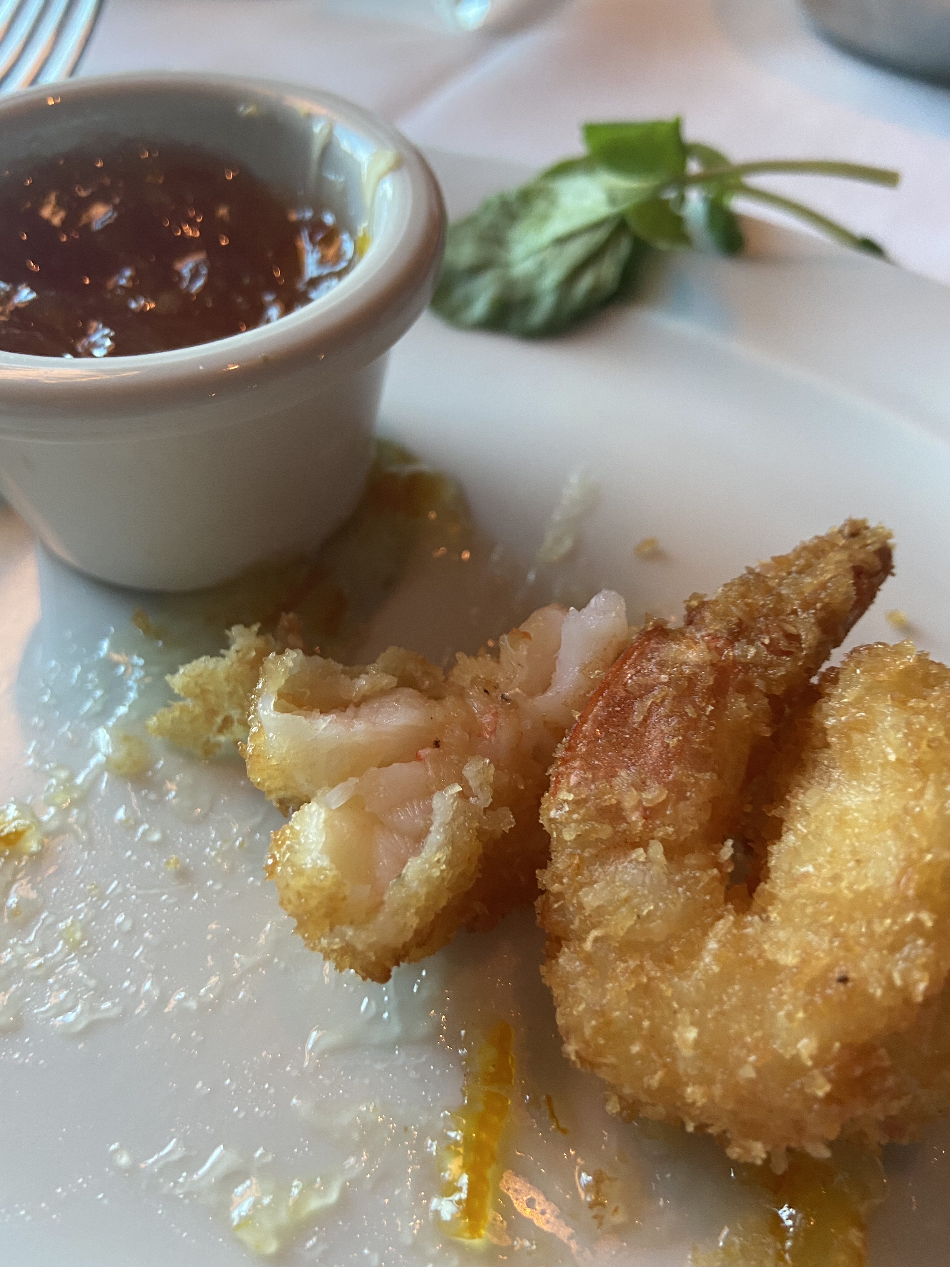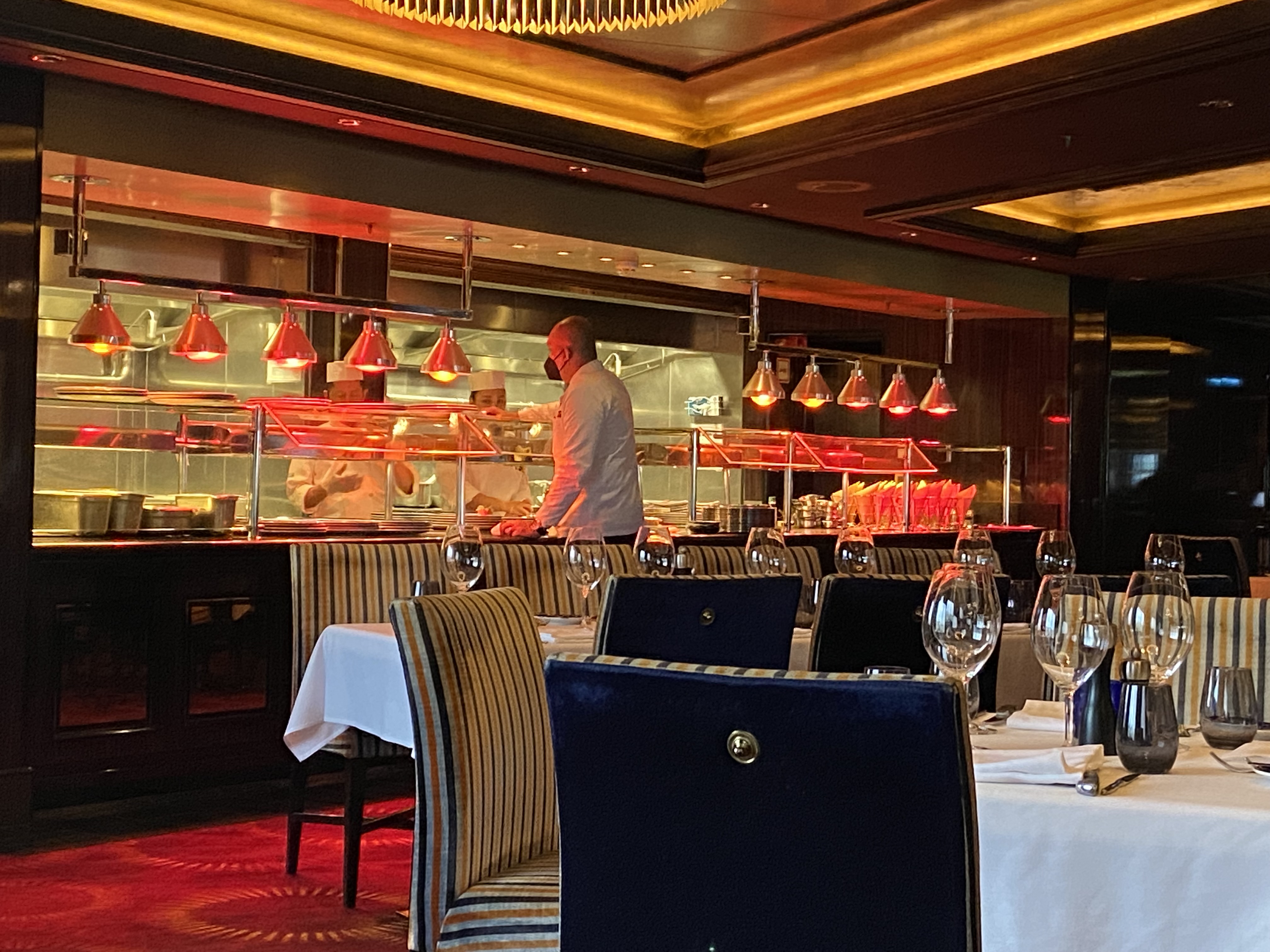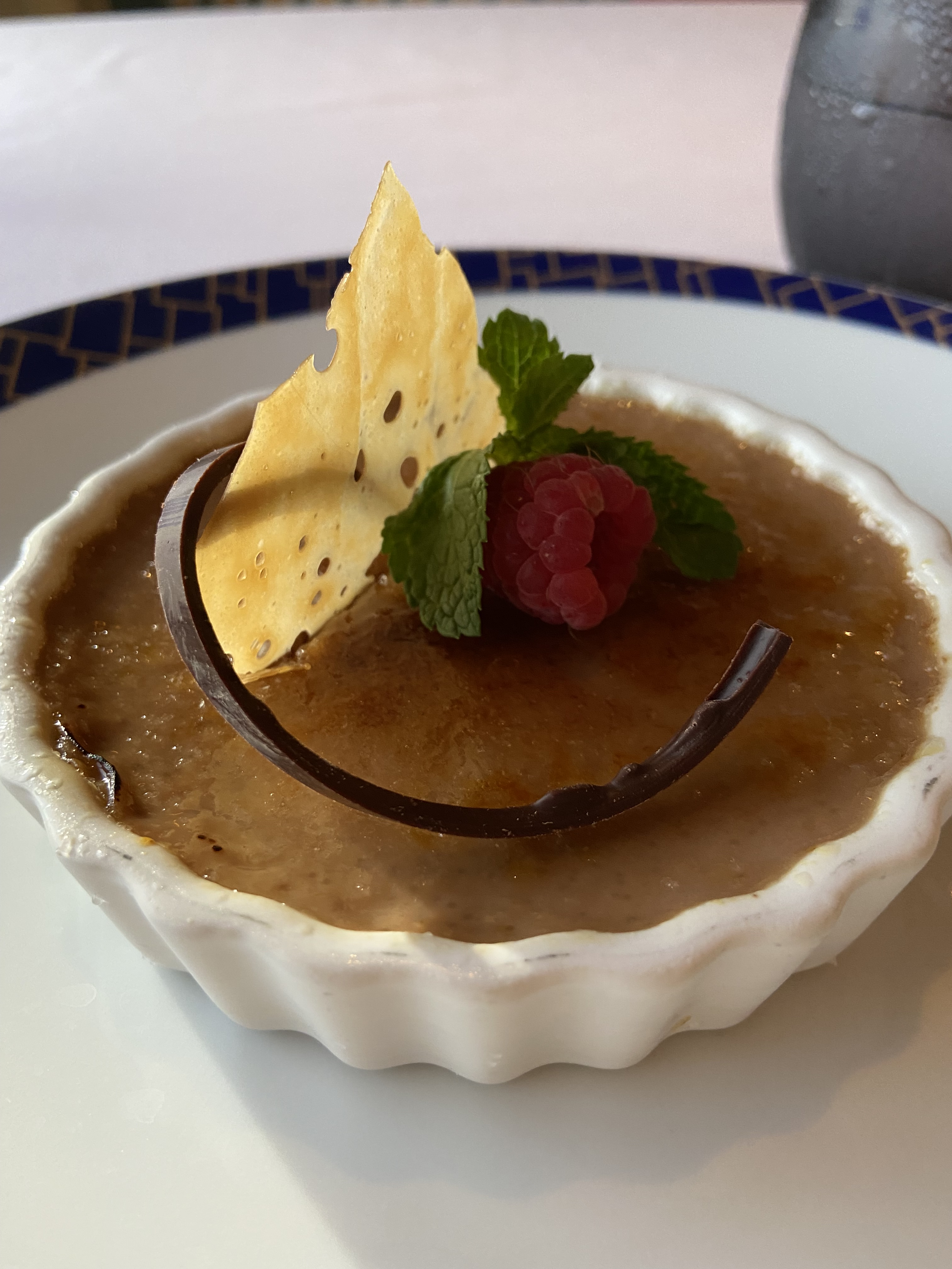 For my specialty dining night, I chose Cagney’s Steak House – EXCELLENT!!! I had a shrimp cocktail, a delicious ribeye steak cooked perfectly with a baked potato, raspberry creme brulee, and a glass of Riesling. It was all so delicious!