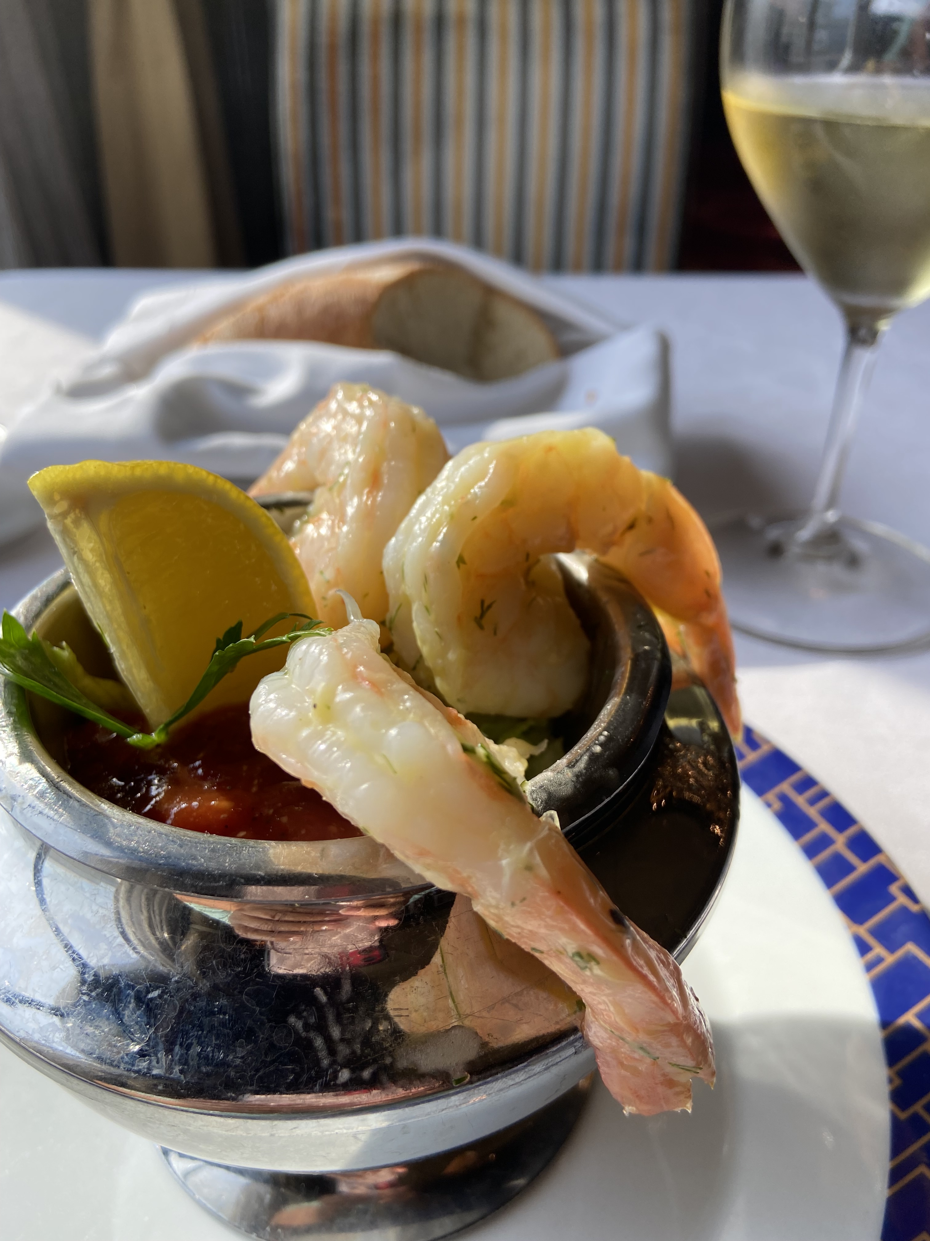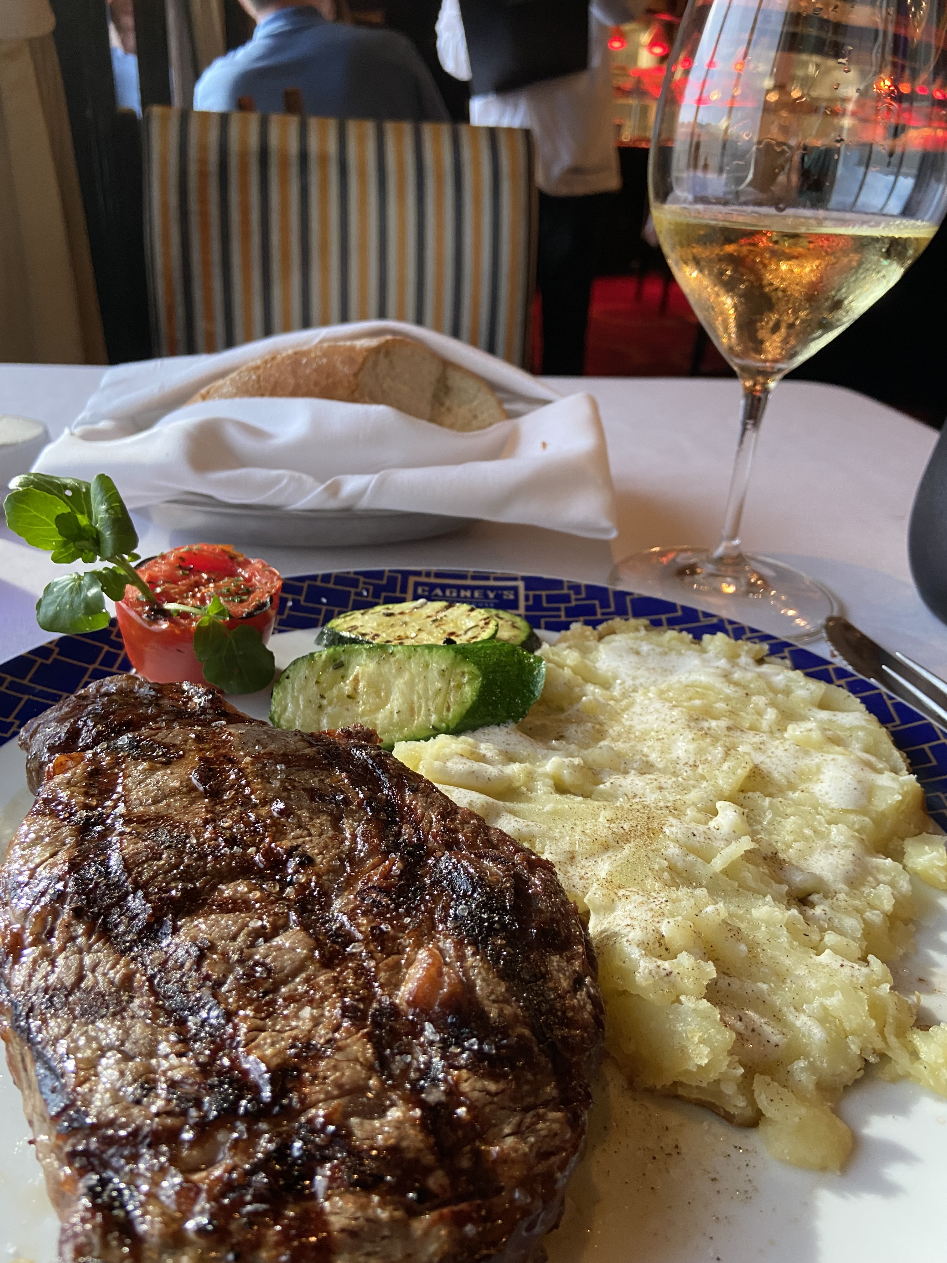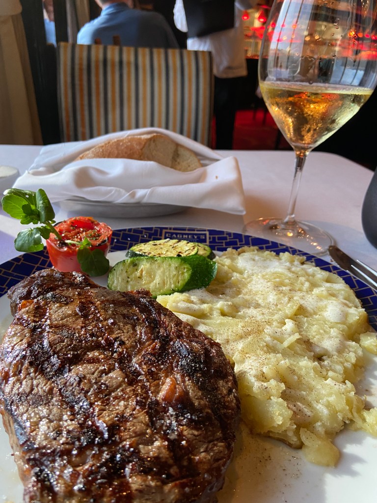 For my specialty dining night, I chose Cagney’s Steak House – EXCELLENT!!! I had a shrimp cocktail, a delicious ribeye steak cooked perfectly with a baked potato, raspberry creme brulee, and a glass of Riesling. It was all so delicious!