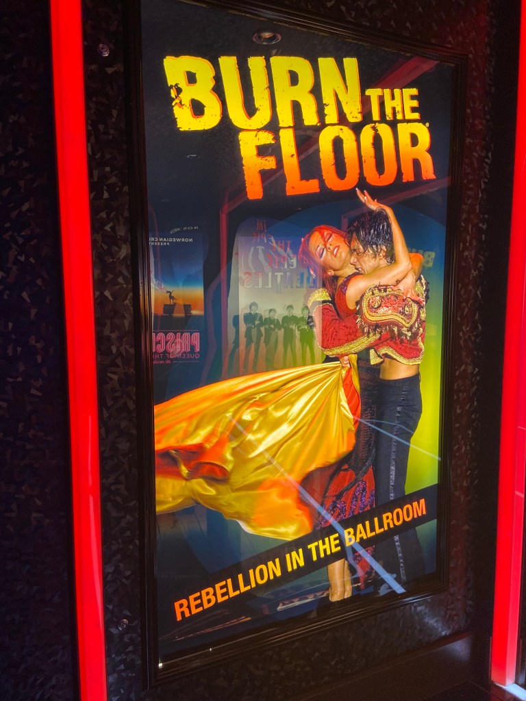 I saw two other entertainment shows that were both really good, too — both announced that photography was prohibited, so I only have photos of the posters. One was called “Burn The Floor” and was a musical about ballroom dancing through the ages. The other was “Priscilla Queen of the Desert” – a Broadway musical about three drag queens traveling across the Australian Outback in a broken down RV – very good!!!