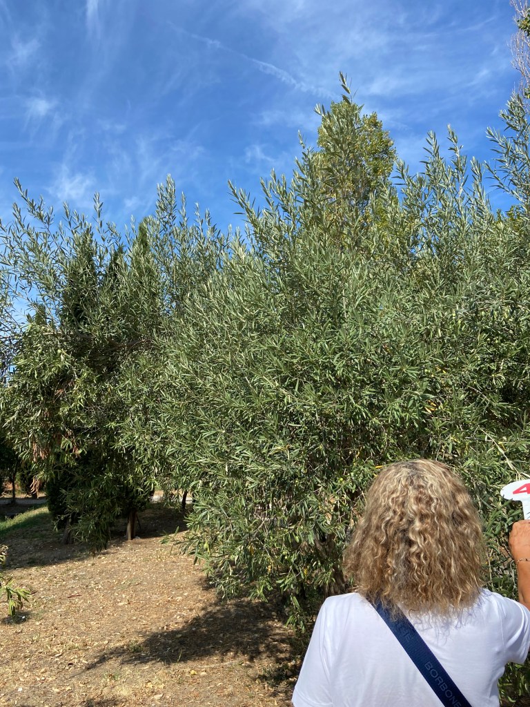 The group stopped to look at olive trees in someone’s yard on the walk to our destination