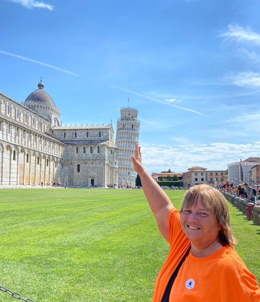 The walk from the bus to the Leaning Tower was a challenge, but it was doable – I got there and back – and thoroughly enjoyed the time in the courtyard with the tower, the cathedral, and the baptistry. This was our shortest stop, but it was ample time to enjoy this amazing place.