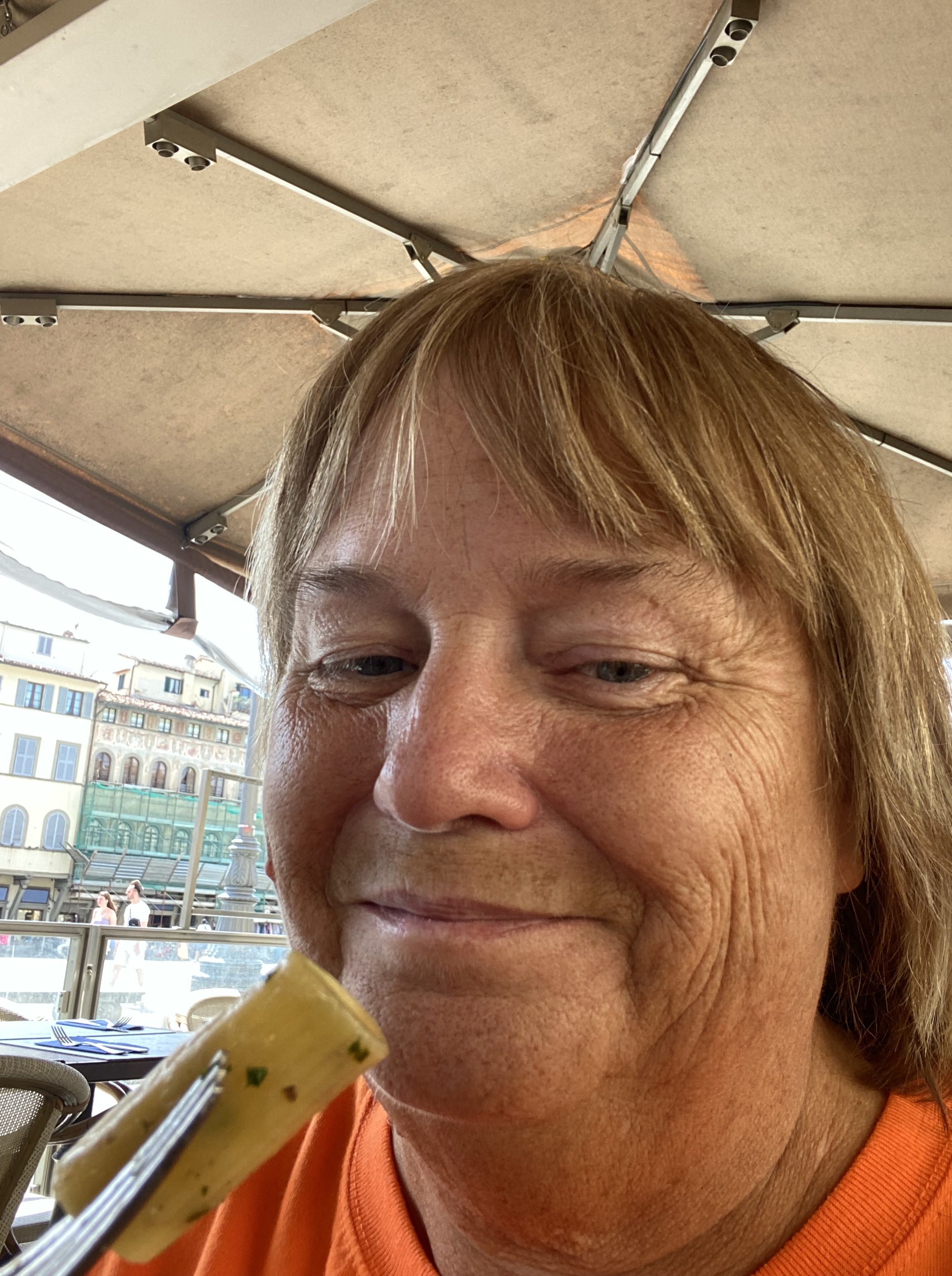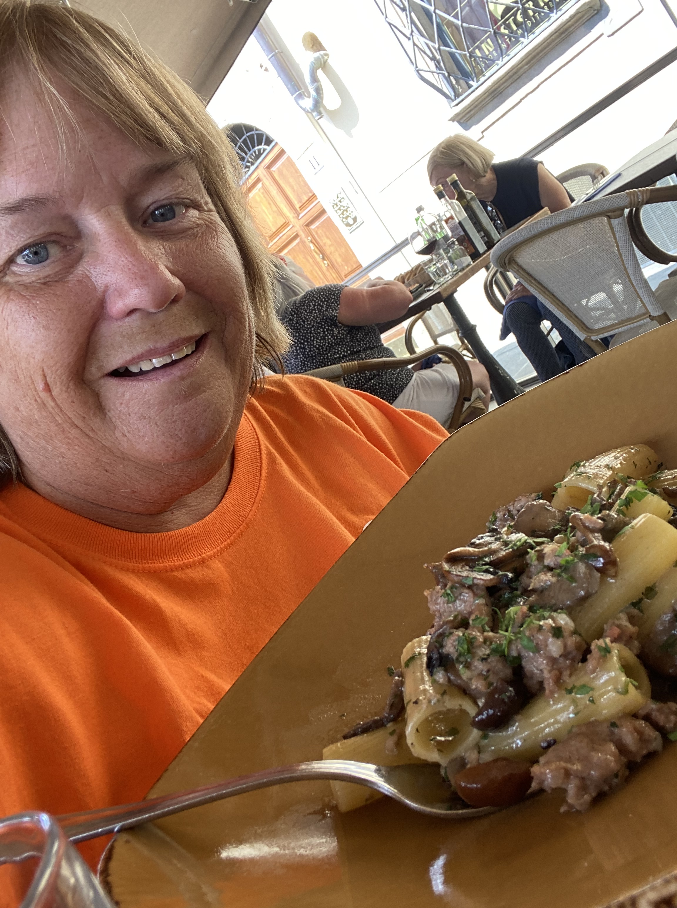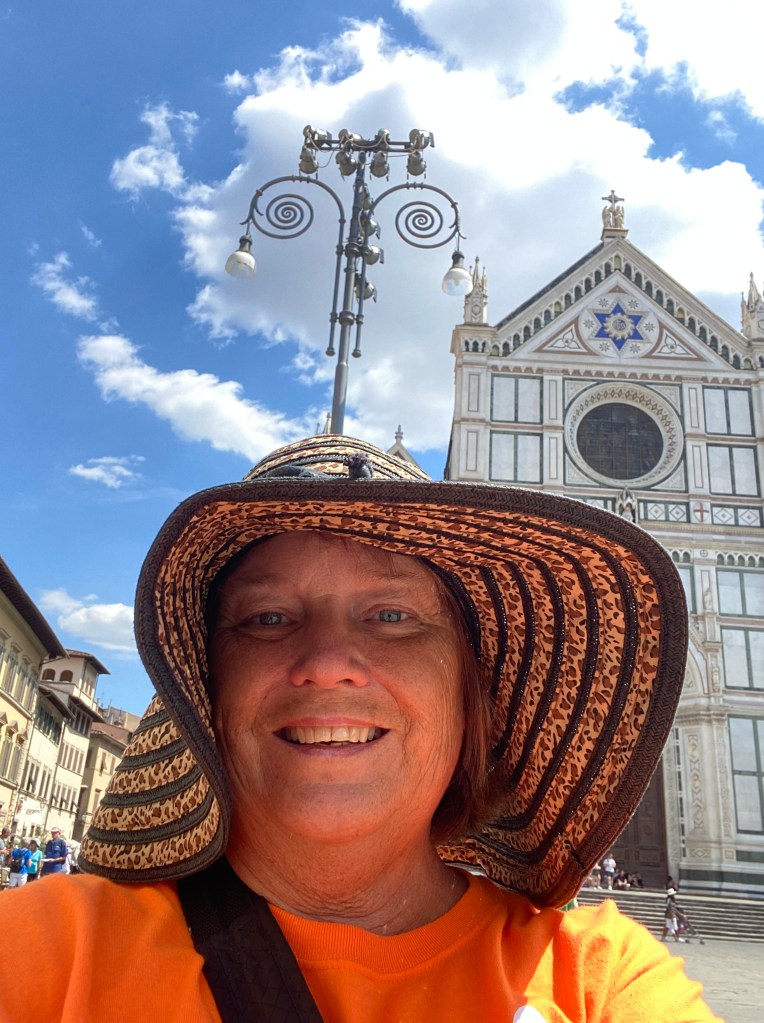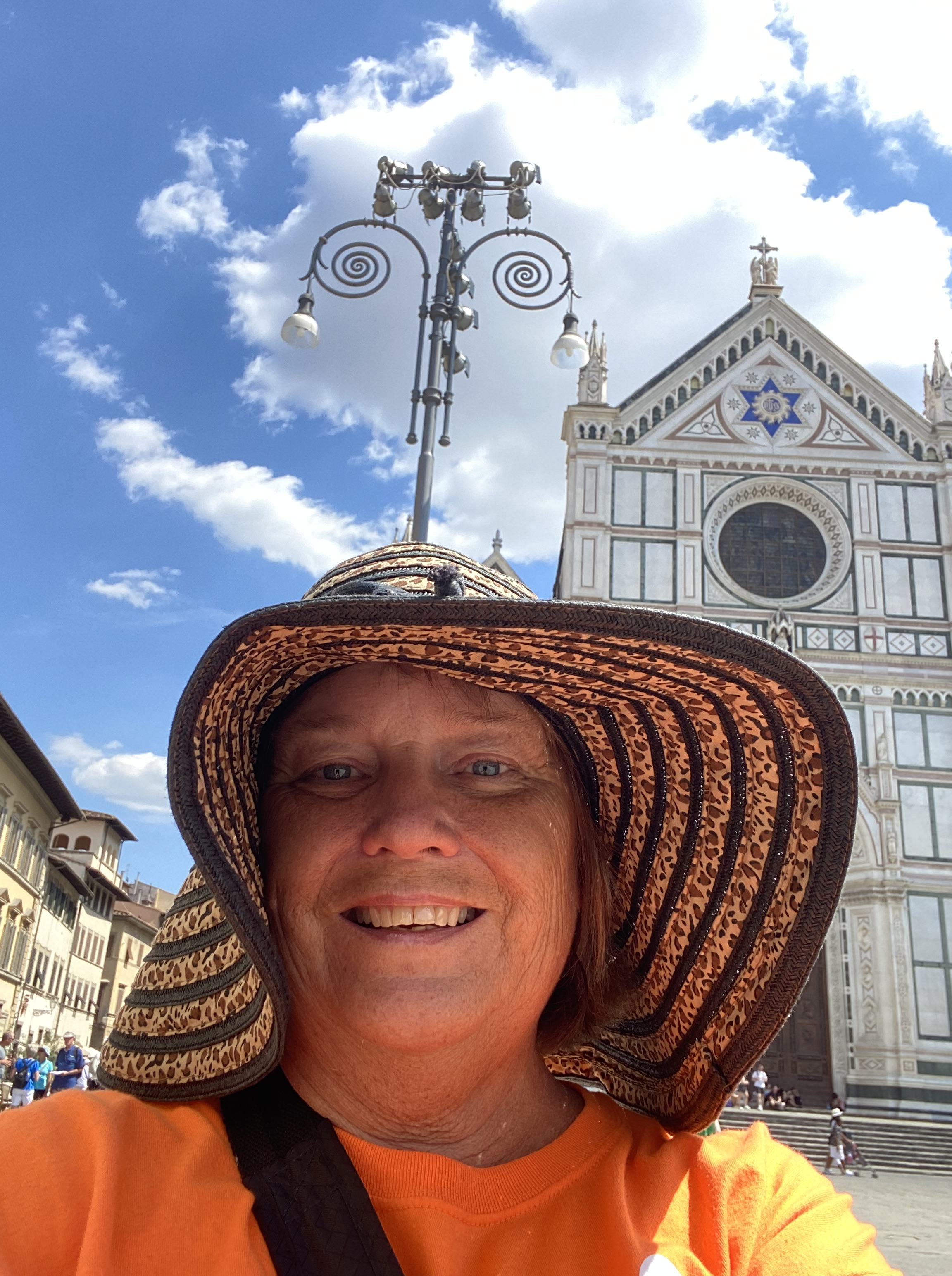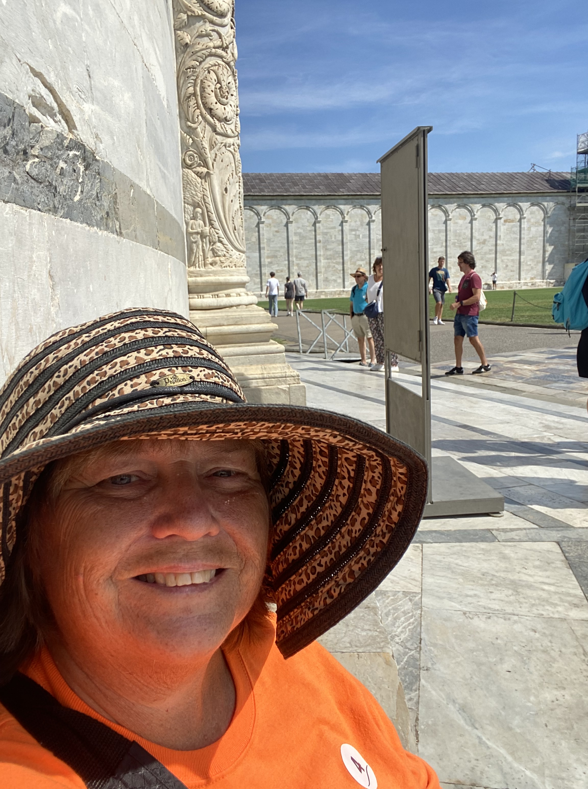 The excursion I chose was a 10 hour tour called “Florence and Pisa On Your Own”. A bit of advice from someone who learned the hard way — when anyone in Europe says “short walk” or “just a couple blocks” or “just over there – 5-10 minutes tops”, you need to understand that they walk everywhere and what they mean by a short walk could be very different than your idea of a short walk! hahaha I chose this tour because the description said it was a bus tour with stops at Pisa and Florence and time to explore on your own and at your own pace at both locations. On our first stop in Pisa, the guide said the bus is not allowed to be any closer than the designated parking area and we will walk about 20 minutes to the Leaning Tower and back…..it ended up taking about 25 minutes! When we got to Florence – same thing – however, the guide noticed there were five of us ladies of a certain age that struggled with the walk in Pisa and ordered us a taxi – we had to pay for it, but for three euros a piece, we were driven to the primary spot in Florence and another three euros a piece took us back to the bus. What a wonderful thing that was….things always work out the way they should!!! I feel like I am voicing a big complaint, but, really I’m just explaining my experience – it was a small thing in the grand scheme of things and it was sooooooo worth it to get to see what I saw and be in some of the most amazing places in the world!