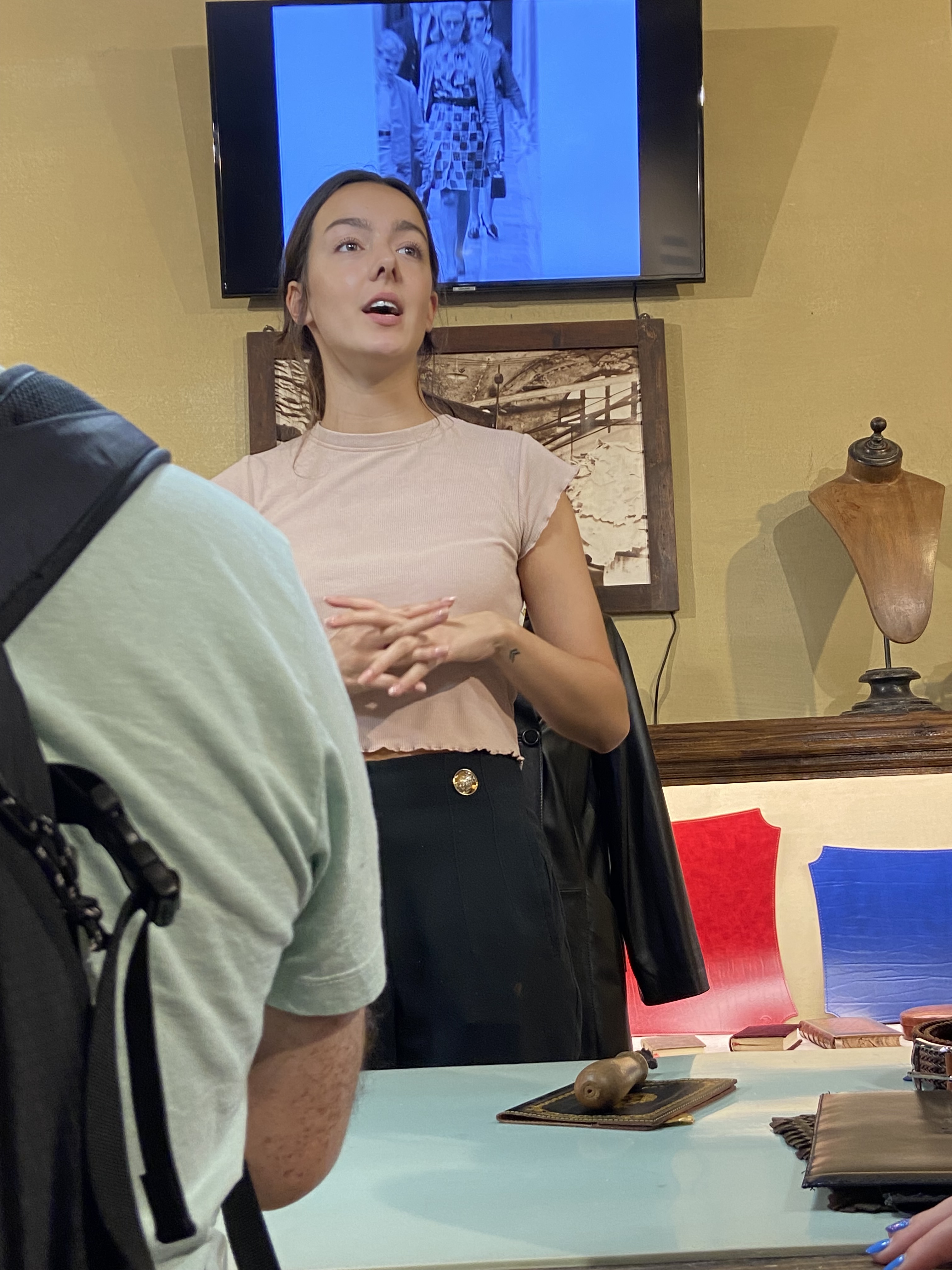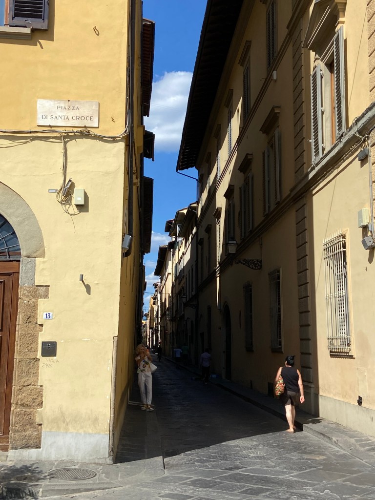 When we arrived in Florence, it was another 20-25 minute walk to/from the bus to the primary spot where we were left to explore on our own. But, as I said earlier, a few of us had the pleasure of being taken from the bus by taxi…..we were dropped off at the Michelangelo Florentine Leather Shop where we’d meet up with the others.