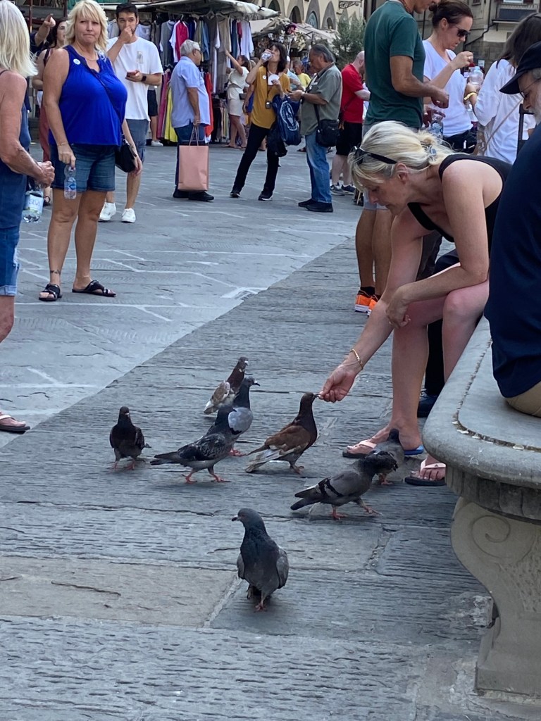 I watched this lady feed the pigeons by hand — they all took their turns getting morsels from her!