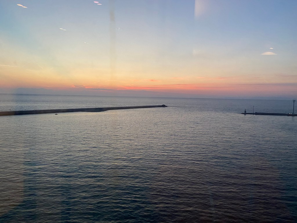 Back on the ship, I caught my first sunset — all the other nights, so far, I was so exhausted I fell aslep before sunset or I was inside having a late dinner or watching a show!