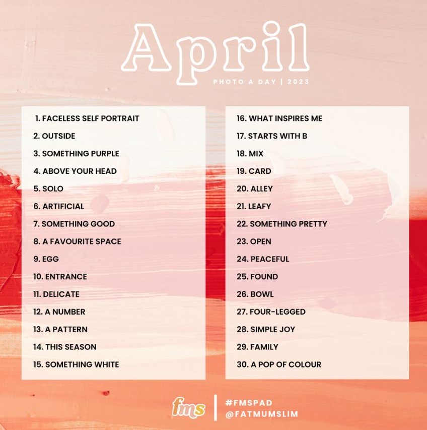 So, there you have it…..March being closed out…..and, here is April’s Daily Photo Challenge Topic List: