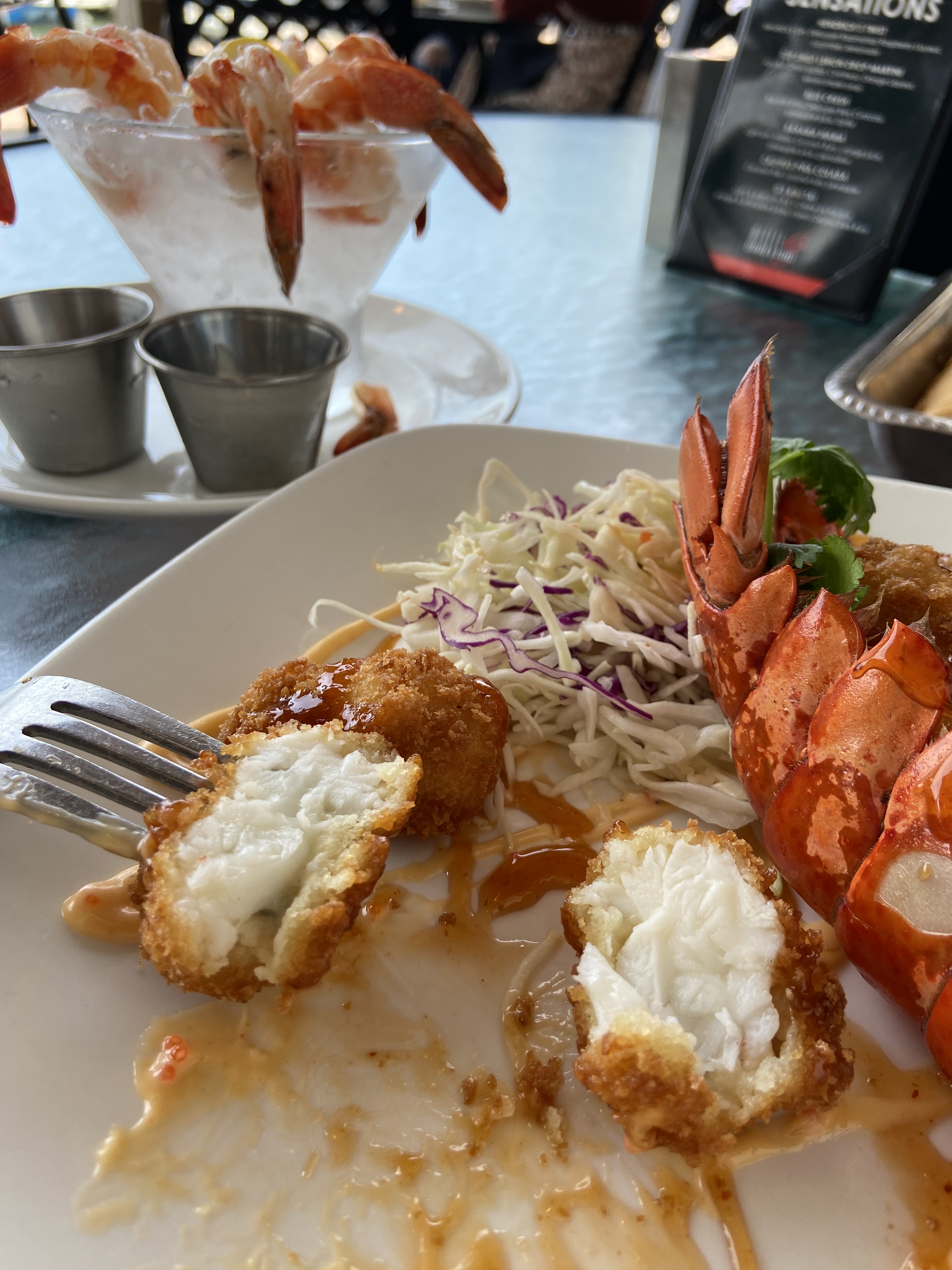 Lunch consisted of a shrimp cocktail and lobster bites – tempura battered chunks of lobster and a glass of sweet tea! OMG – it was delicious – I was in heaven!!!