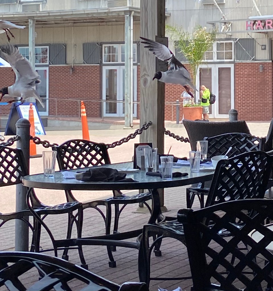 I sat there enjoying the gorgeous weather, scenery and entertainment! The seagulls provided quite a show! There was a sign that said “Please Do Not Feed the Seagulls! They are on very strict diets!” But, someone must have forgot to tell the seagulls about their diet! hahaha The table near me finished and left and before the waiters could clear the plates and leftovers, the seagulls swooped in and had themselves a feast! Most took small bites and flew off to enjoy their bounty, but one took off with a HUGE portion of garlic toasted baguette. Others flew after him in an attempt to take their share, but he was fast….until he dropped it and a swarm of gulls attacked it get whatever they could before he fought them off and took it back. It was quite entertaining! hahaha