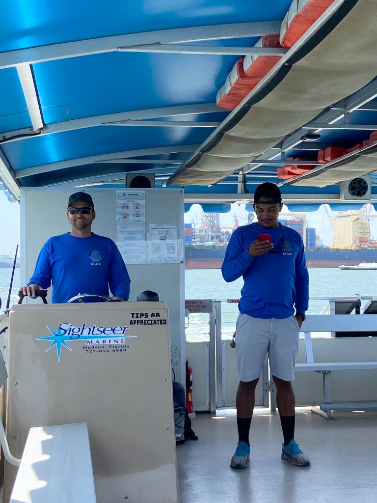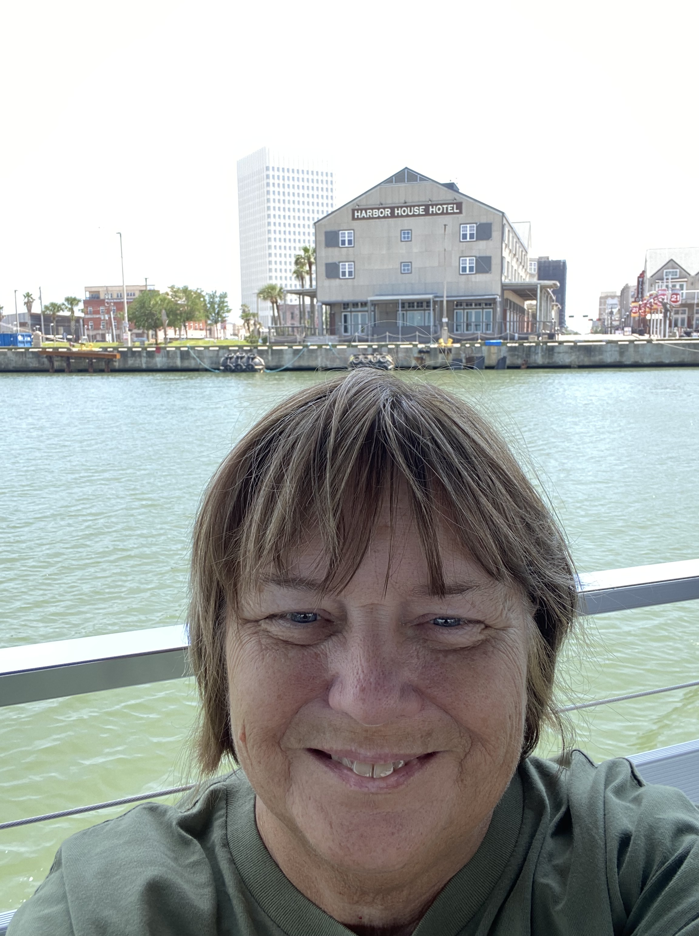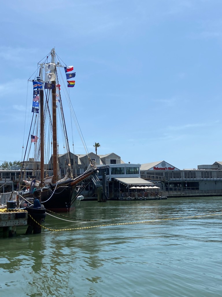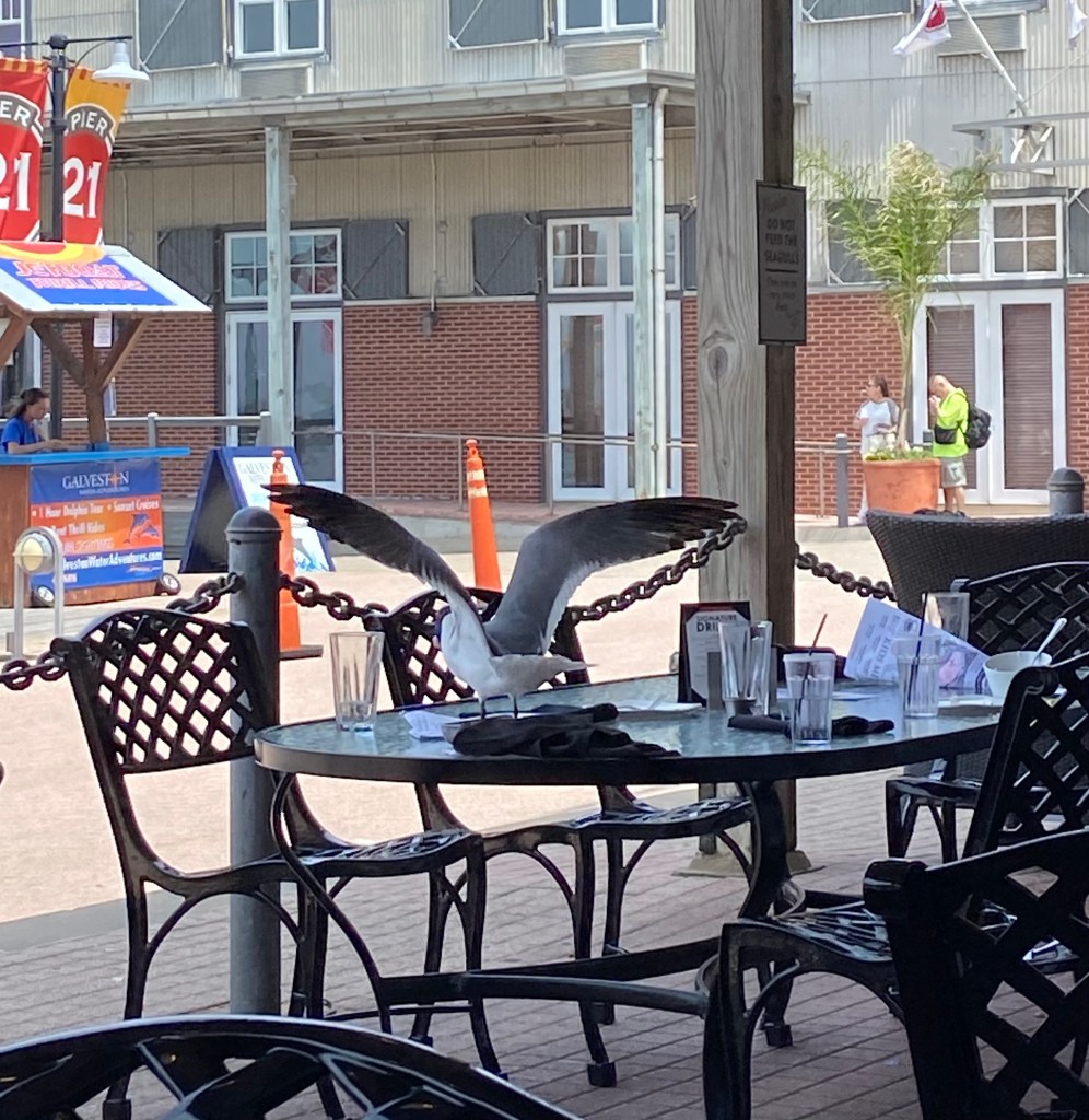 I had booked a Dolphin Cruise on Galveston Bay. I love water tours and tend to look for them whenever I’m in an area with an interesting shore, river, or whatever to see. Always great to see it from the water! The tour was booked for 2:00 and I drove to the pier first when I got to Galveston to find it and get a place to park. Just about all parking on the island is paid parking, so I used the paid lot that was closest to Pier 21 and parked. I went to the tour stand and checked in – I was way early, so I had plenty of time to do a little exploring. I wandered the pier for a little bit and then popped in at Willie G’s Steaks and Seafood – I had an outside table overlooking the pier and enjoyed an amazing lunch!