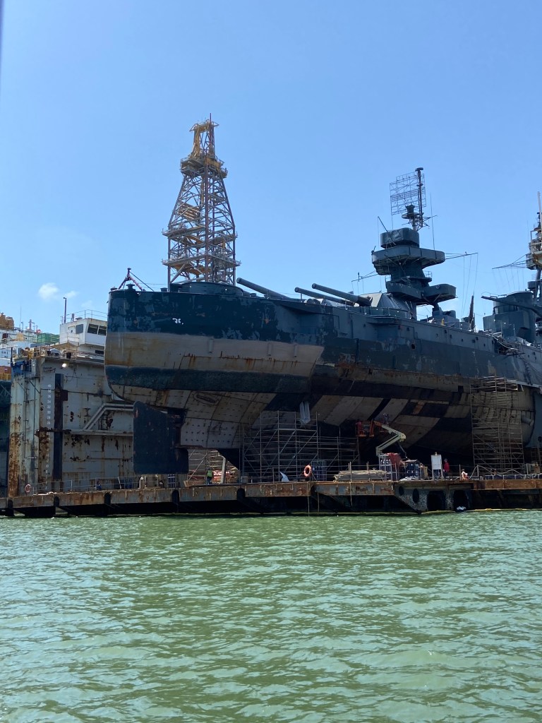 USS Texas in dry dock undergoing repairs – WWI and WWII Battleship is now a floating museum