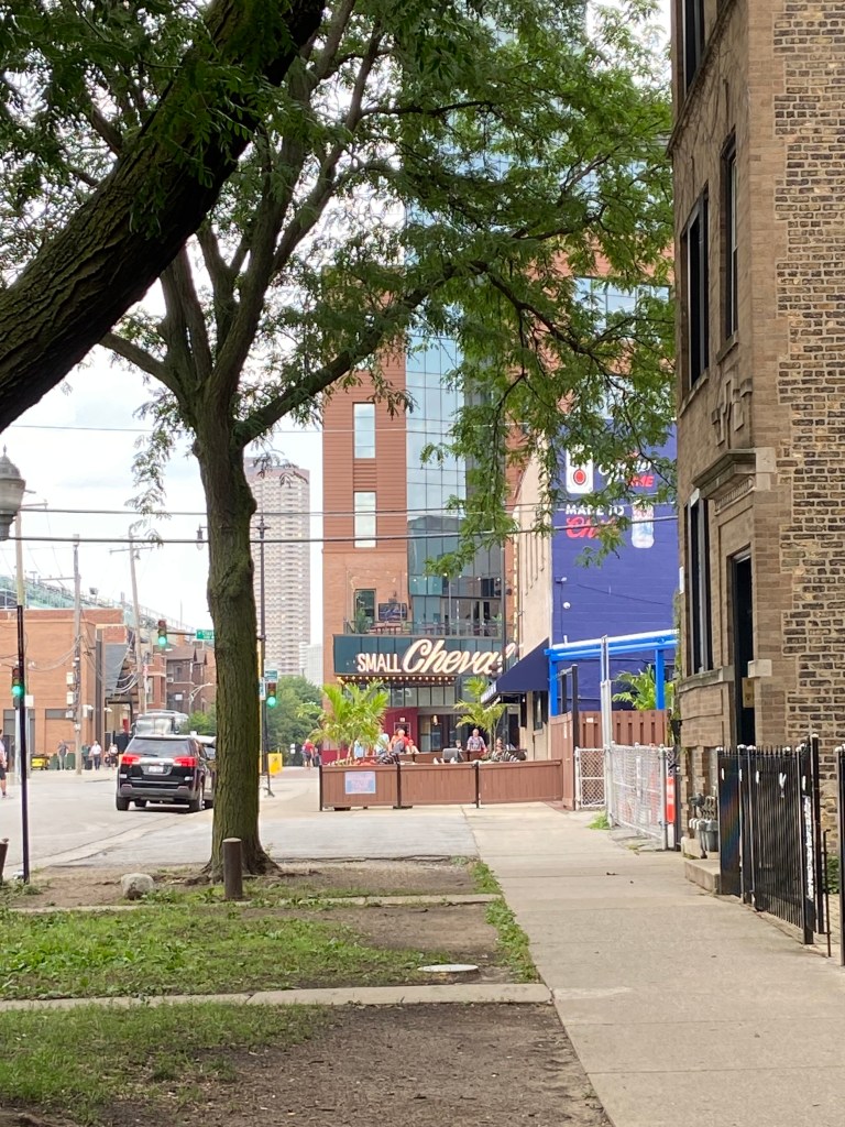 We rented a condo through Airbnb. It was a perfect location – about a block from Wrigley Field in the neighborhood called Wrigleyville and just a few blocks from Catherine’s apartment. It was clean and comfortable with a cute layout — a long, narrow building typical of cities in a lovely and quiet tree lined neighborhood. That said, it was an older building in need of some TLC and repairs…..minor inconveniences, but noticeable. Here are some pics of the condo and the surrounding neighborhood:
