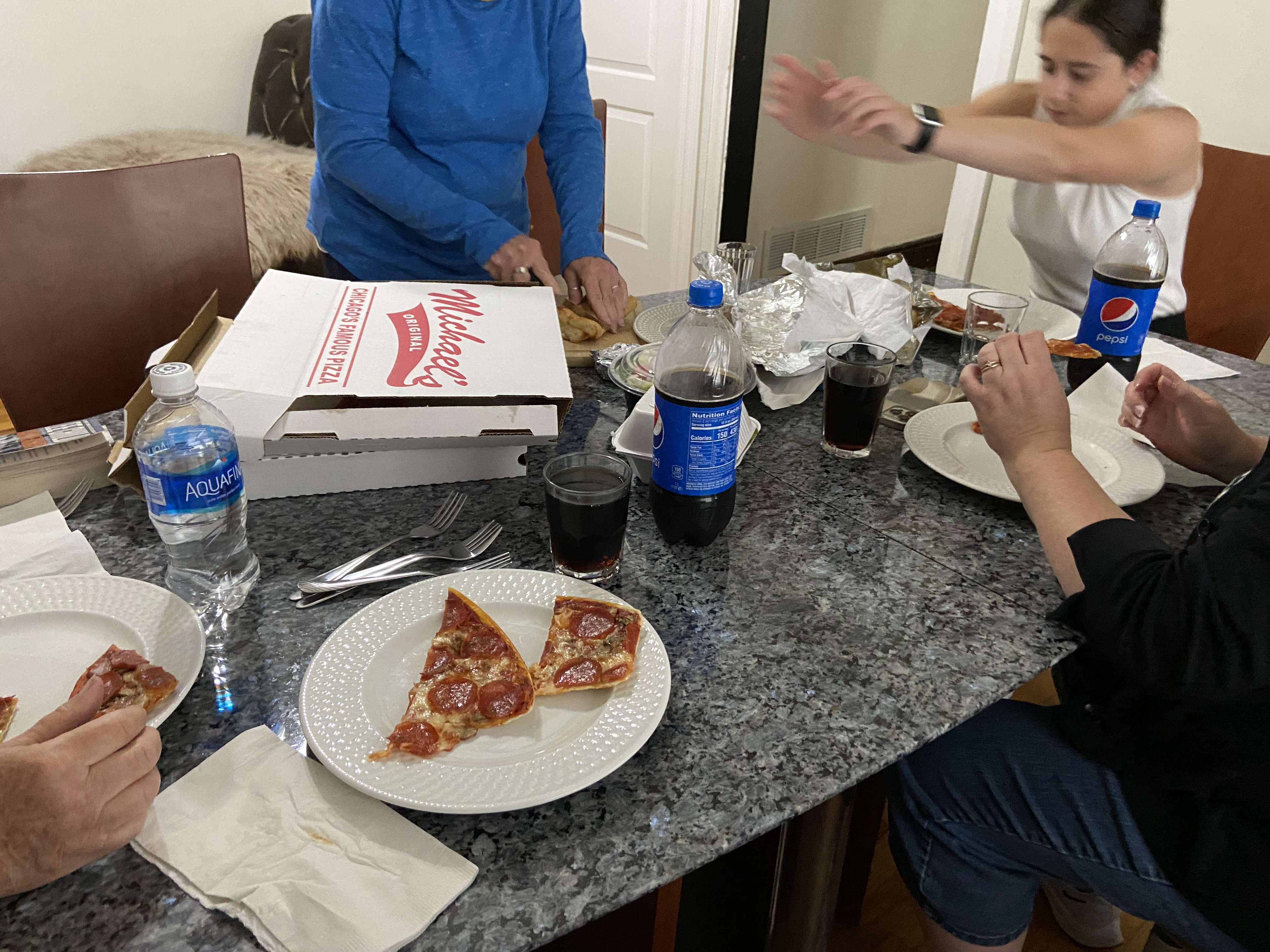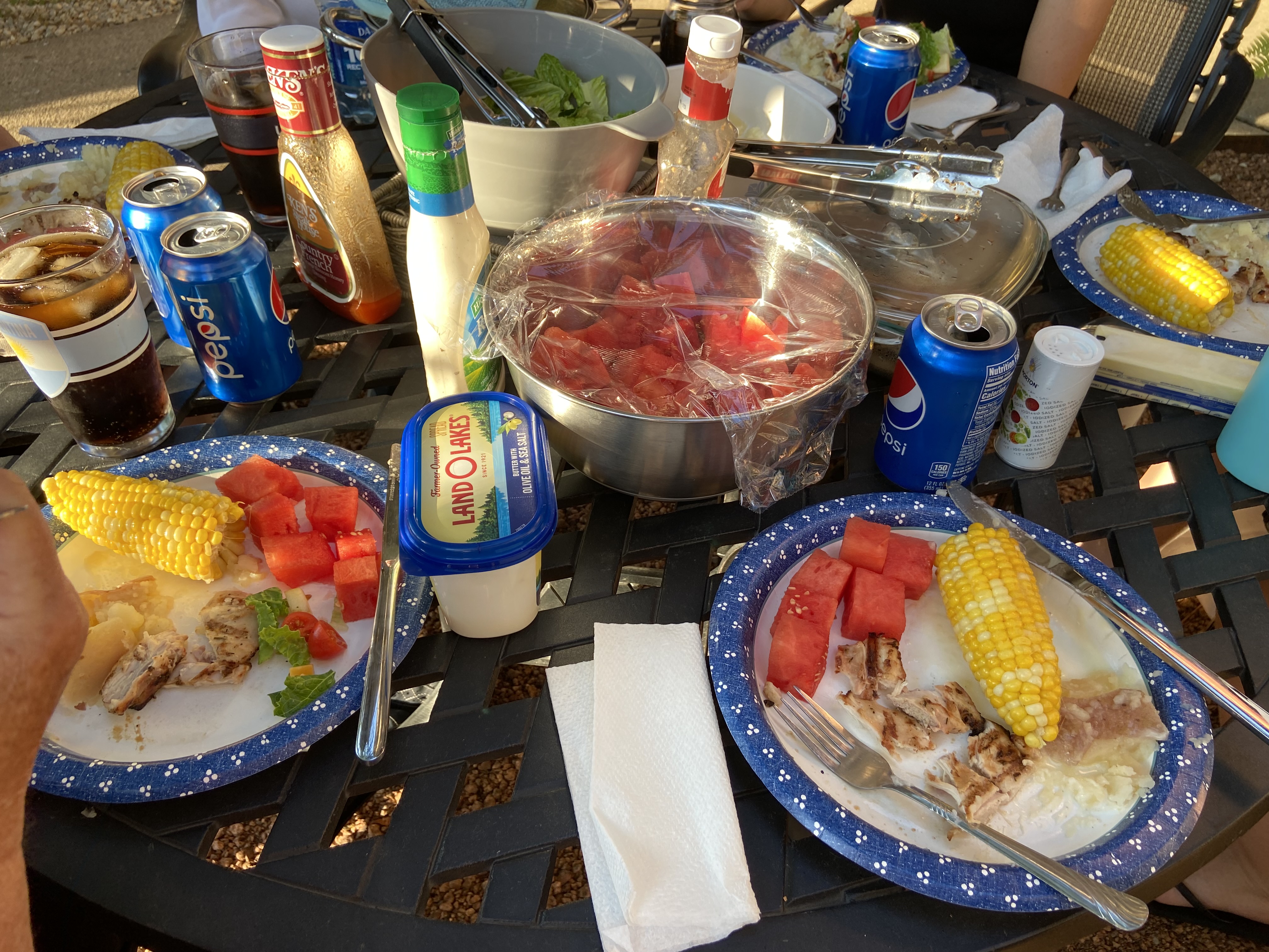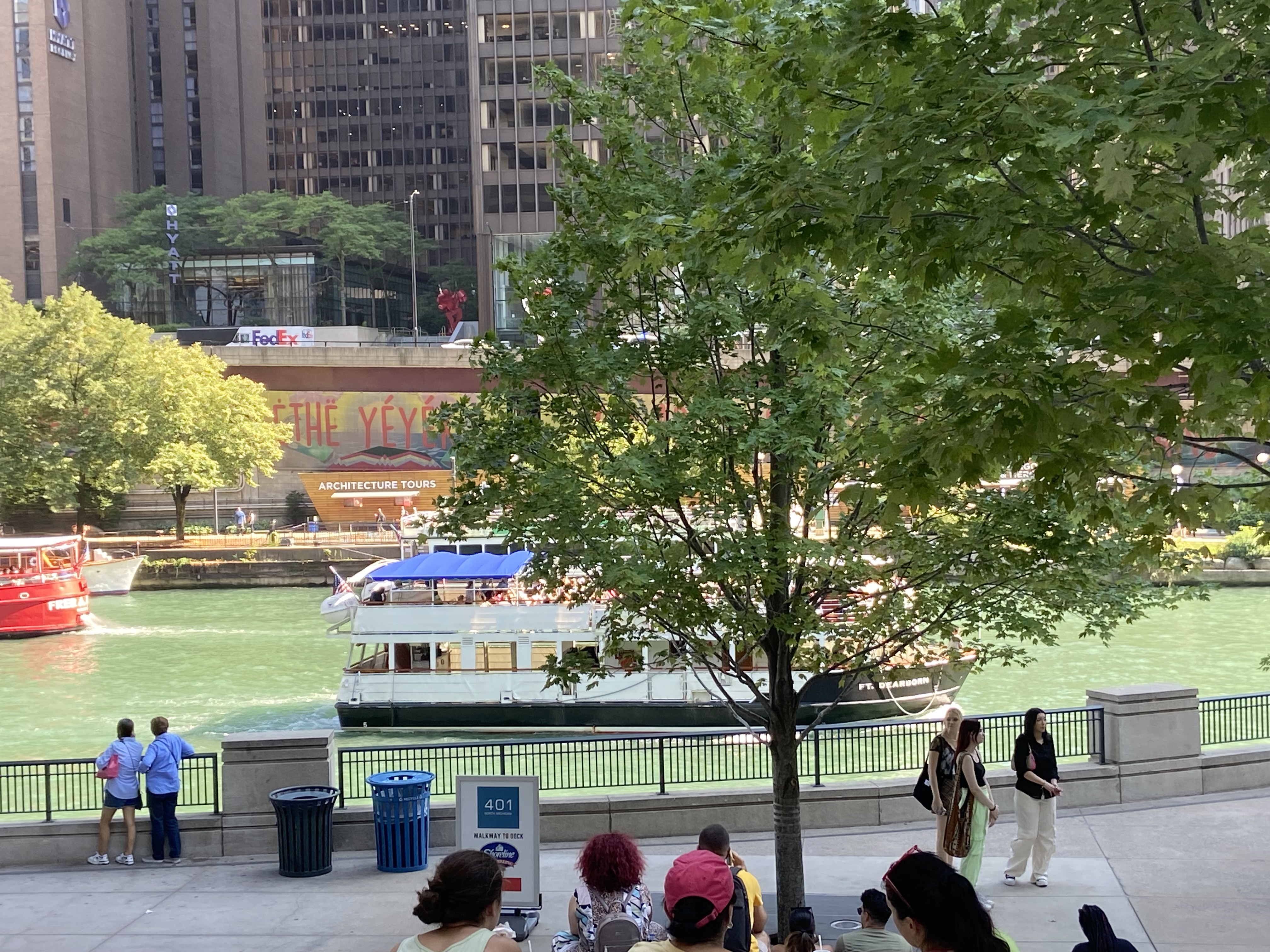 The plan on Thursday evening was to do an Architectural River Cruise, but we were all exhausted and hot, so we decided to change the tickets to Saturday afternoon, instead. We headed back to the condo and decided on just snacks and unwinding that evening…..Catherine and Tara jumped in the lake…..I was sooooo jealous!!!