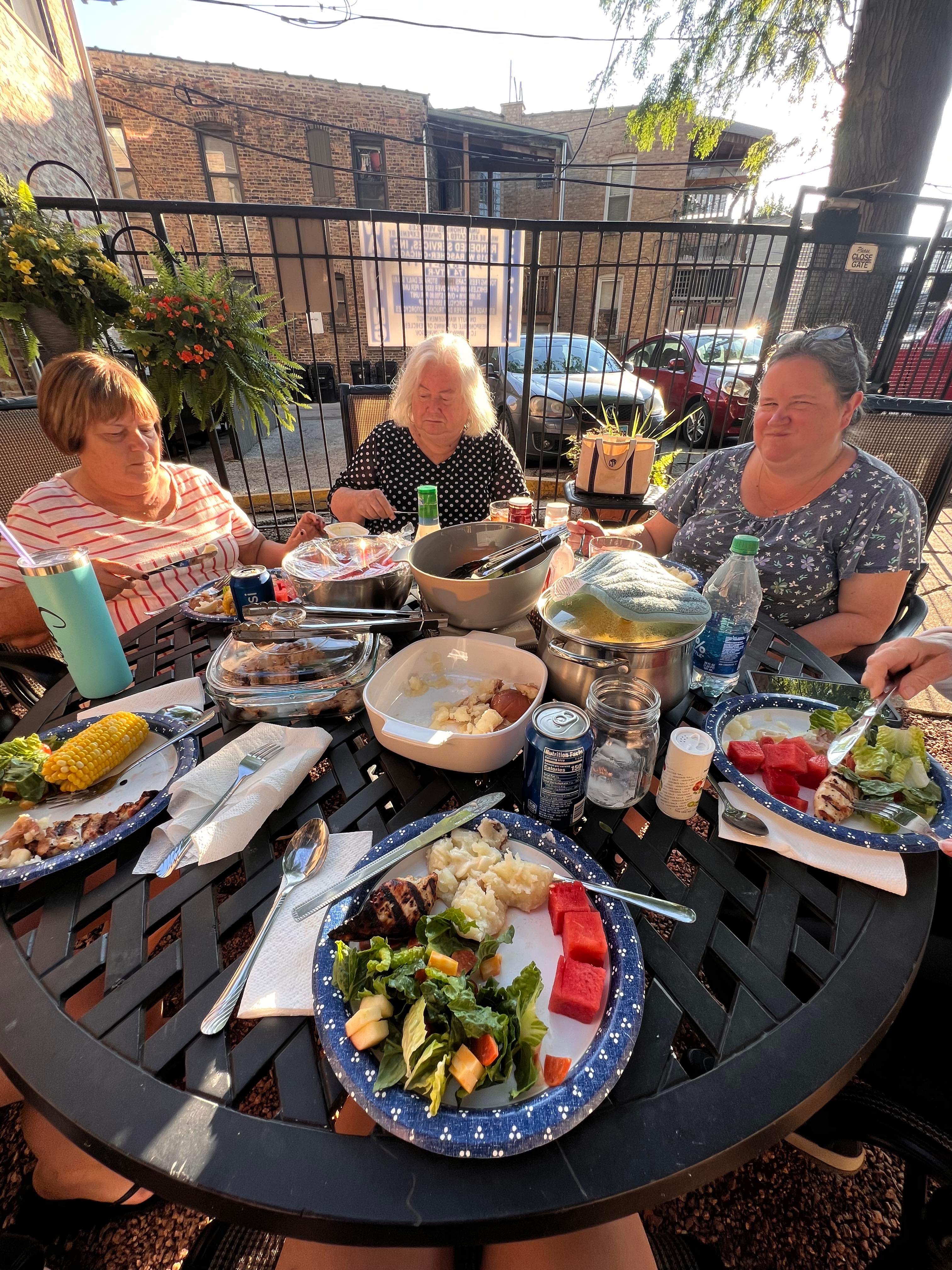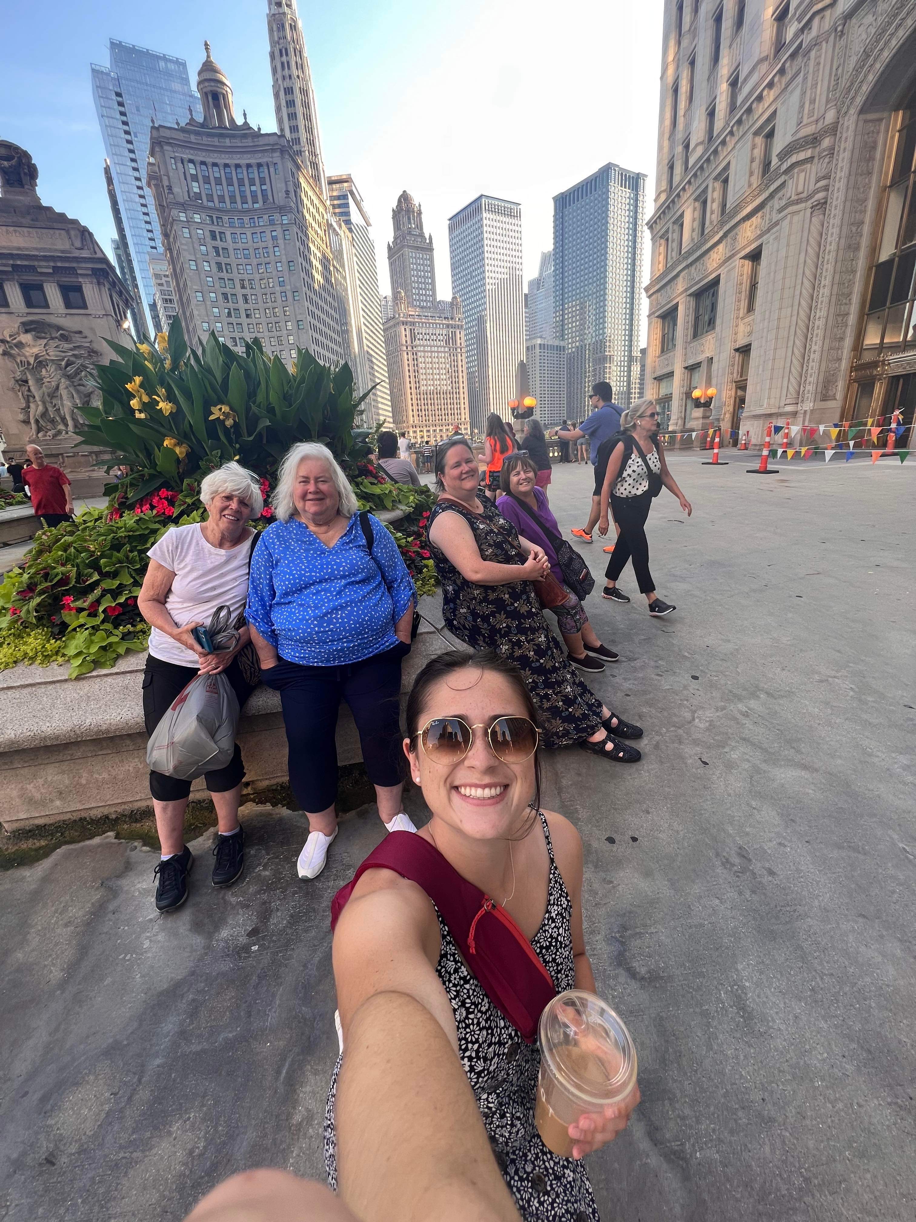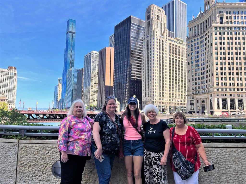 Although I’m not a huge fan of big cities, there are a few cities that have always piqued my interest and Chicago is one of them. Visiting Chicago was a bucket list item….I say “was” because it has recently been checked off that prestigious list of places I still want to see and things I want to do. This was achieved during the week of July 26-31 on a fun girl’s trip with friends who were going to visit a family member who lives there – my friend Cathy’s granddaughter, Catherine – and they let me tag along. We traveled from far and wide to gather there…..well, “far and wide” may be a stretch — Cathy, her daughter, Tara, and I traveled from Albion via Buffalo airport and Cathy’s sister, Linda, traveled from Long Island via LaGuardia in NYC. We all met up in Chicago Midway Airport where Catherine greeted us and our adventure began!