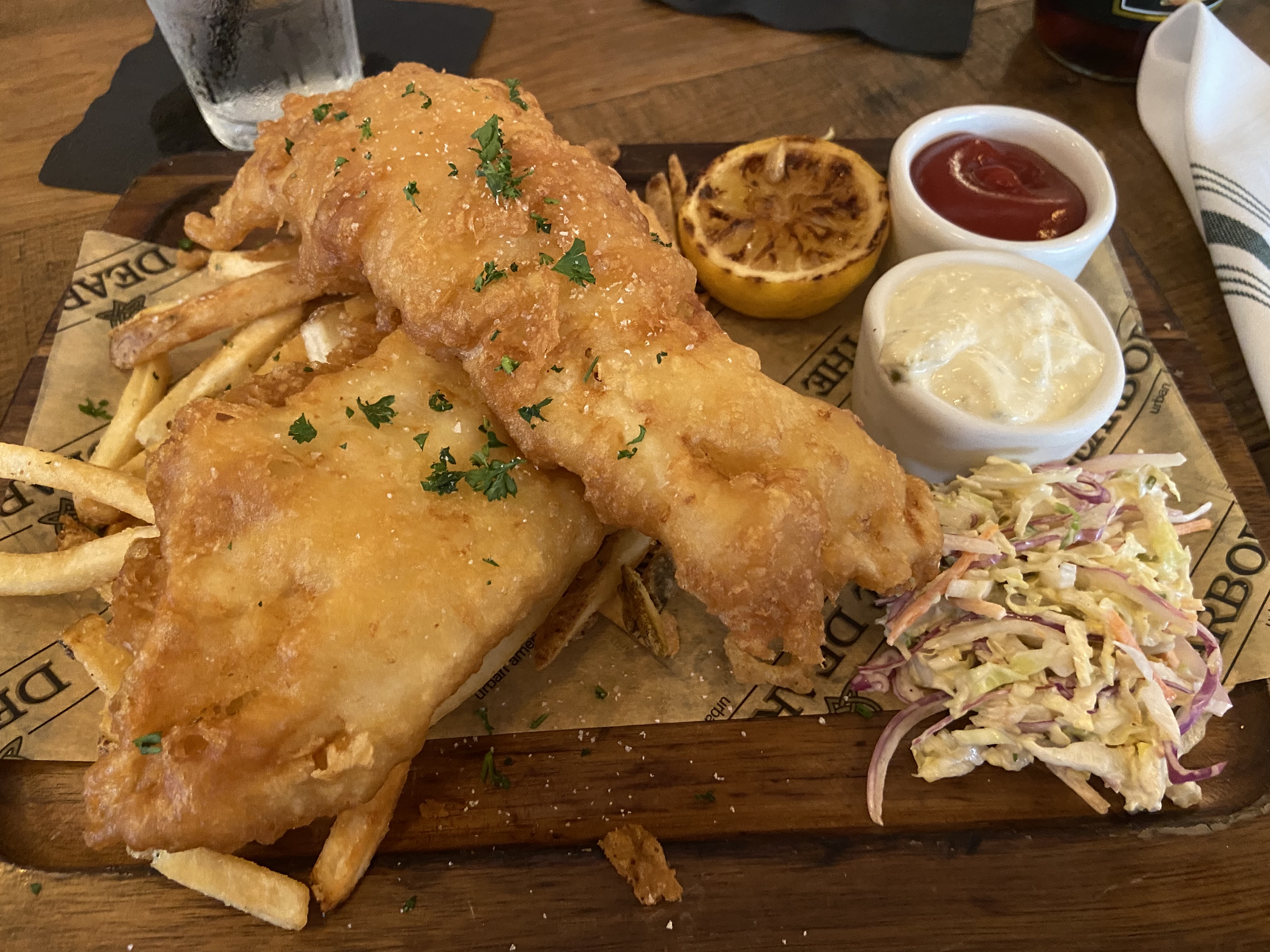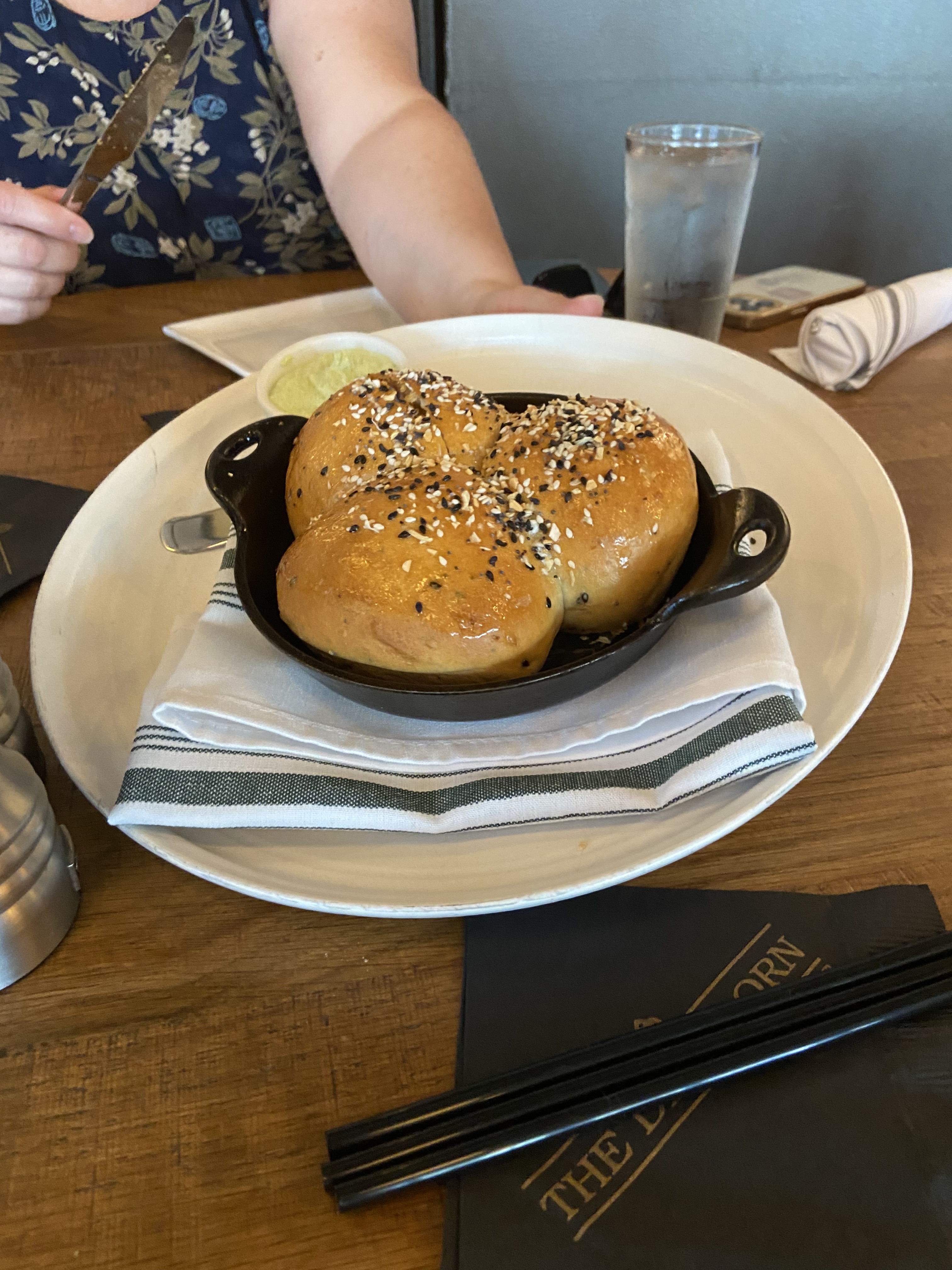 Lunch on Thursday was at the Dearborn – a very nice restaurant downtown. Three of us had the “Fish and Chips that Beat Bobby Flay”…..they were good, but not what I would think could beat something Bobby Flay made – I expected something a bit more “special”! Two had sandwiches they said were good. We also had the “Everything Parker House Rolls” as an appetizer – they were very good!