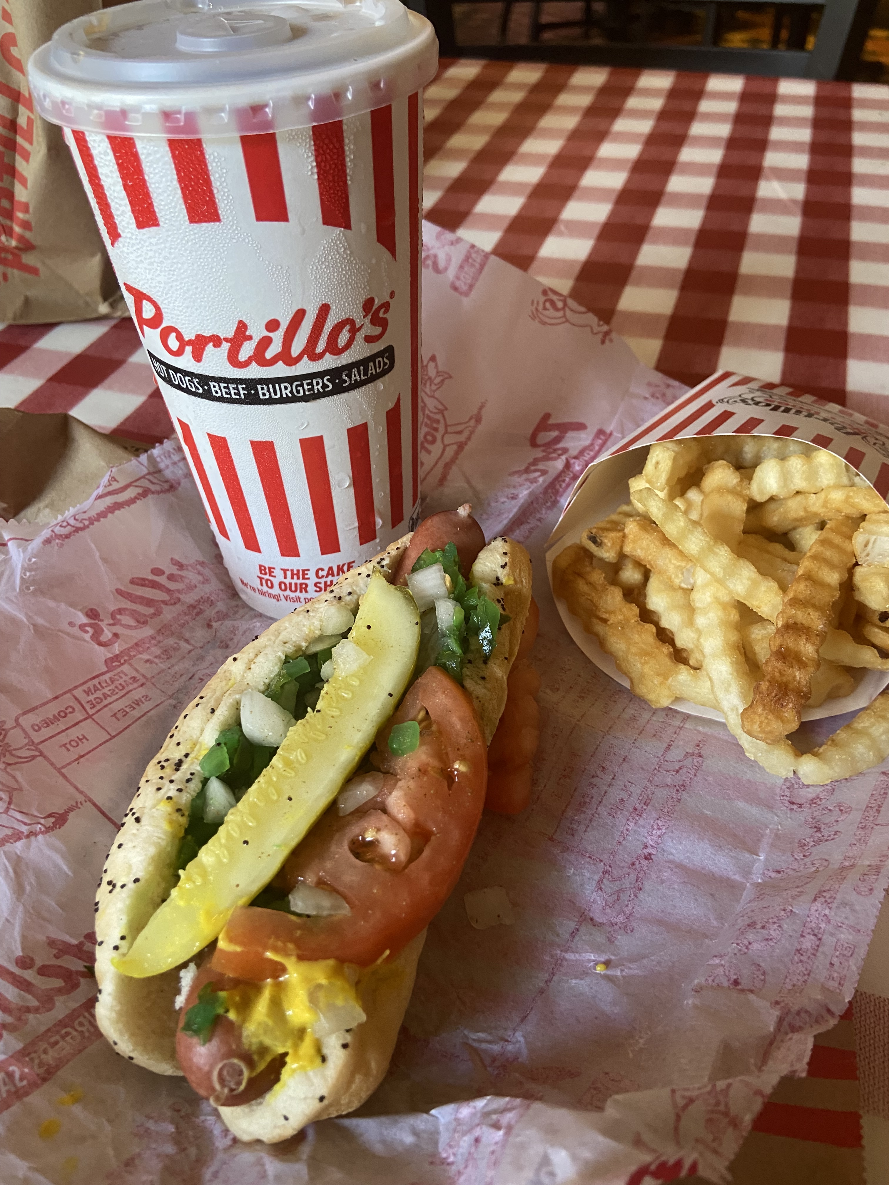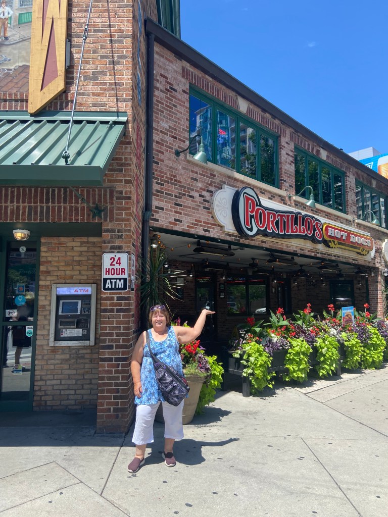 Our first stop was lunch at Portillo’s – it boasted “All Chicago Style Food”. I had the Chicago Hot Dog – hot dog, mustard, celery salt, onions, relish, tomato, and a Kosher pickle, on a steamed poppy seed bun! (Also comes with sport peppers which I left off) – it was really good!!! The food the others got was “meh”, but it was a fun stop.