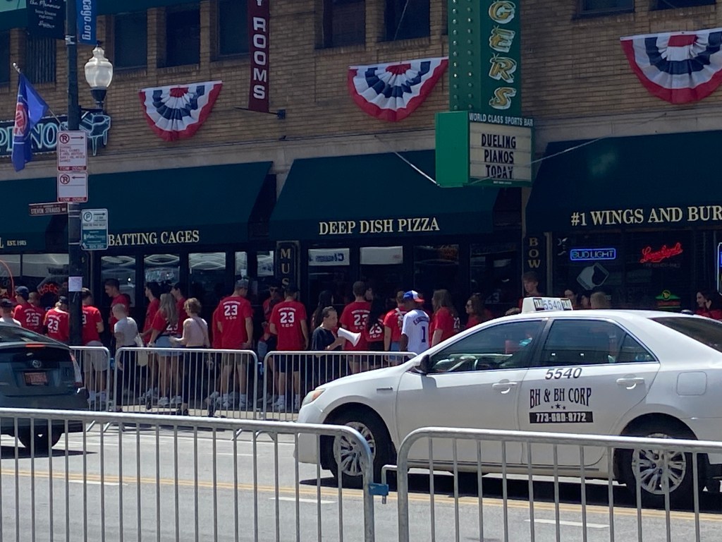 When we left Wrigley Field, we shopped at the gift shop and then headed out for lunch. We considered going to a cool spot near there called “The Stretch” that is based on the movie “Ferris Bueller’s Day Off”, but there was a “Mustache Crawl” going on with HUNDREDS of young people pub hopping for the event.