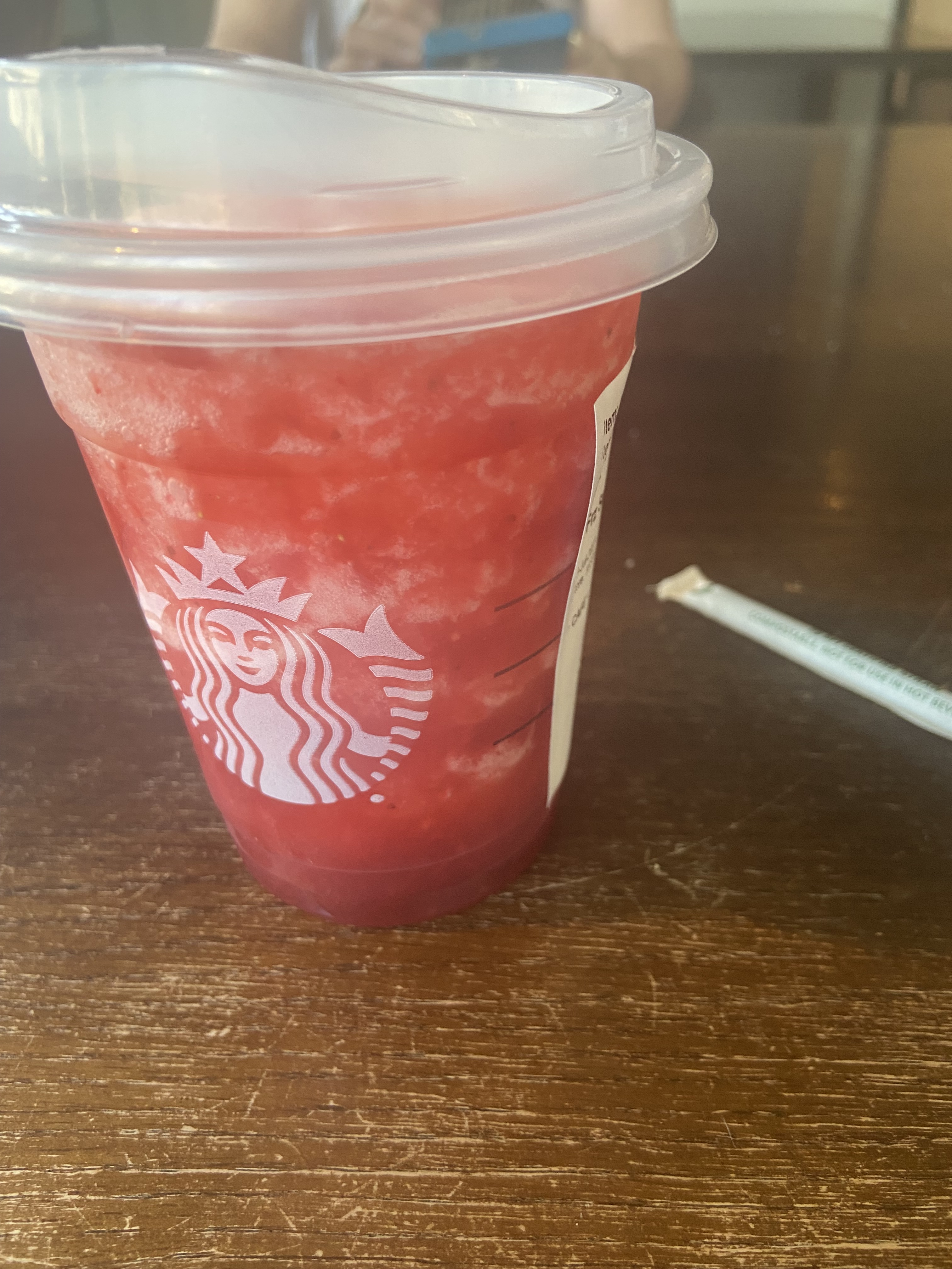 We killed some time waiting for the next bus at a Starbucks — my very first time ever in a Starbucks! I don’t drink coffee, so never saw the benefit of going to one. But, I discovered they have non-coffee drinks and this frozen strawberry-acai lemonade was PERFECT on the super hot day we were having! And it was sooooooo good!!!!