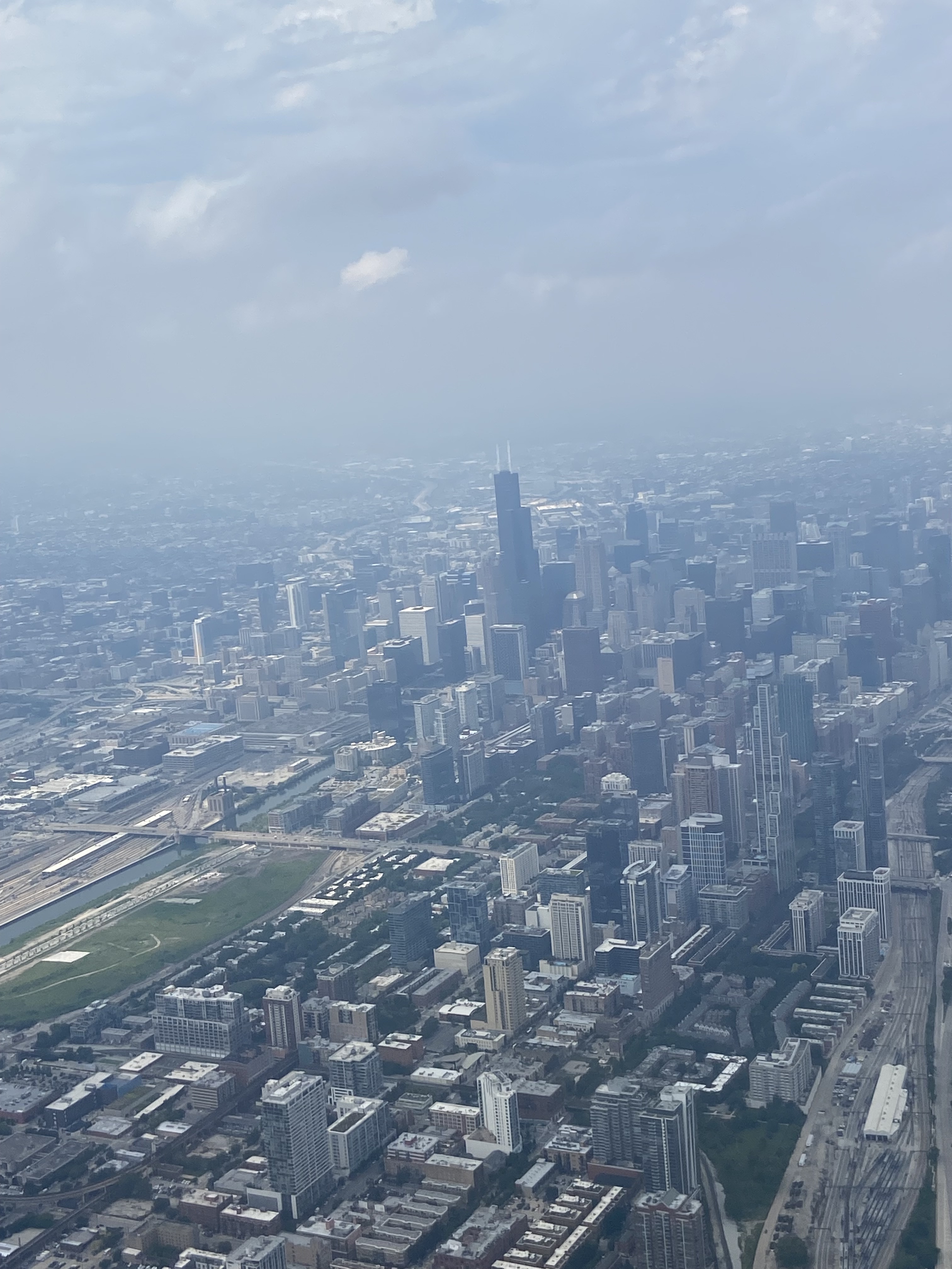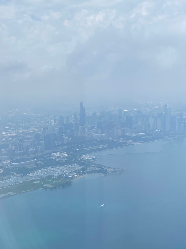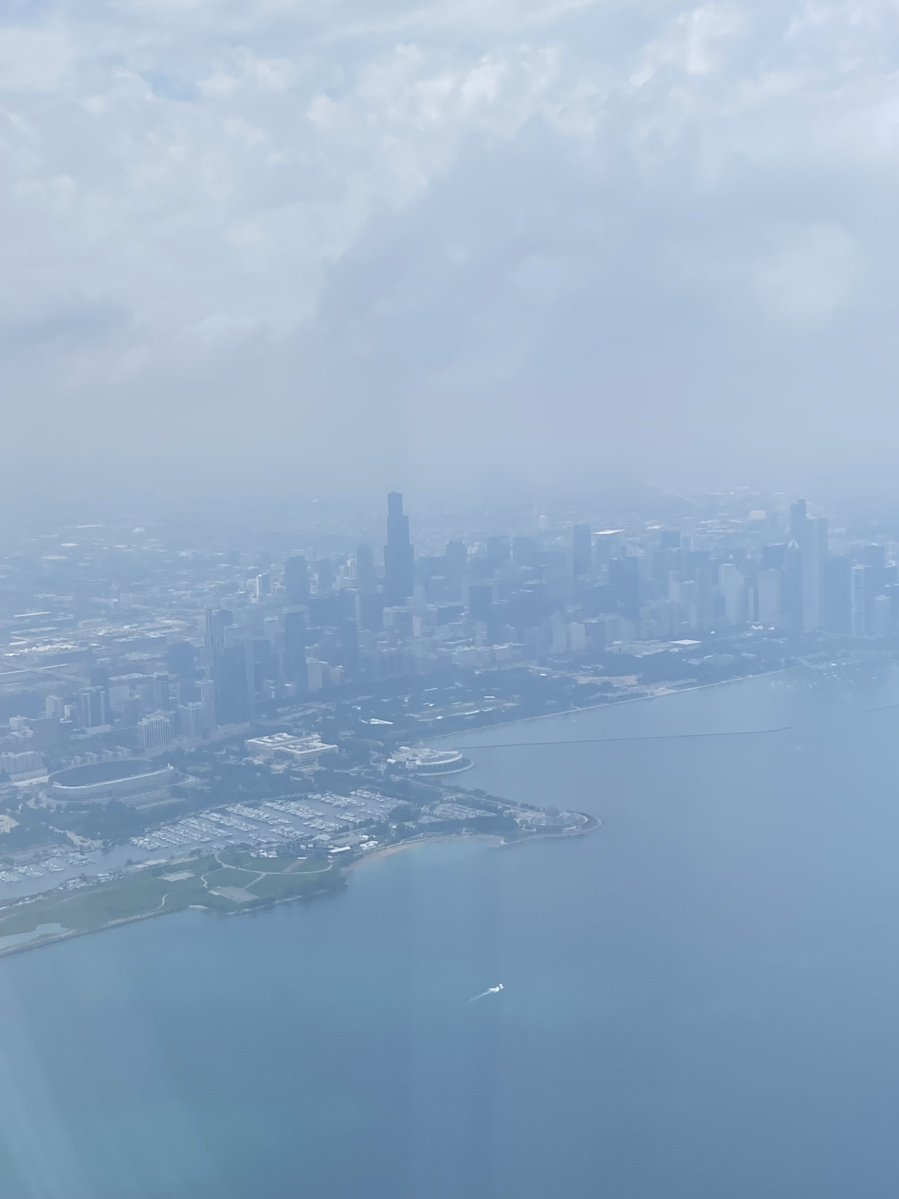 Our first views of the Chicago skyline from the plane as we approached Chicago Midway