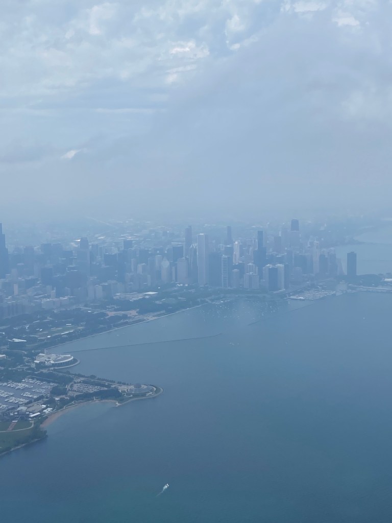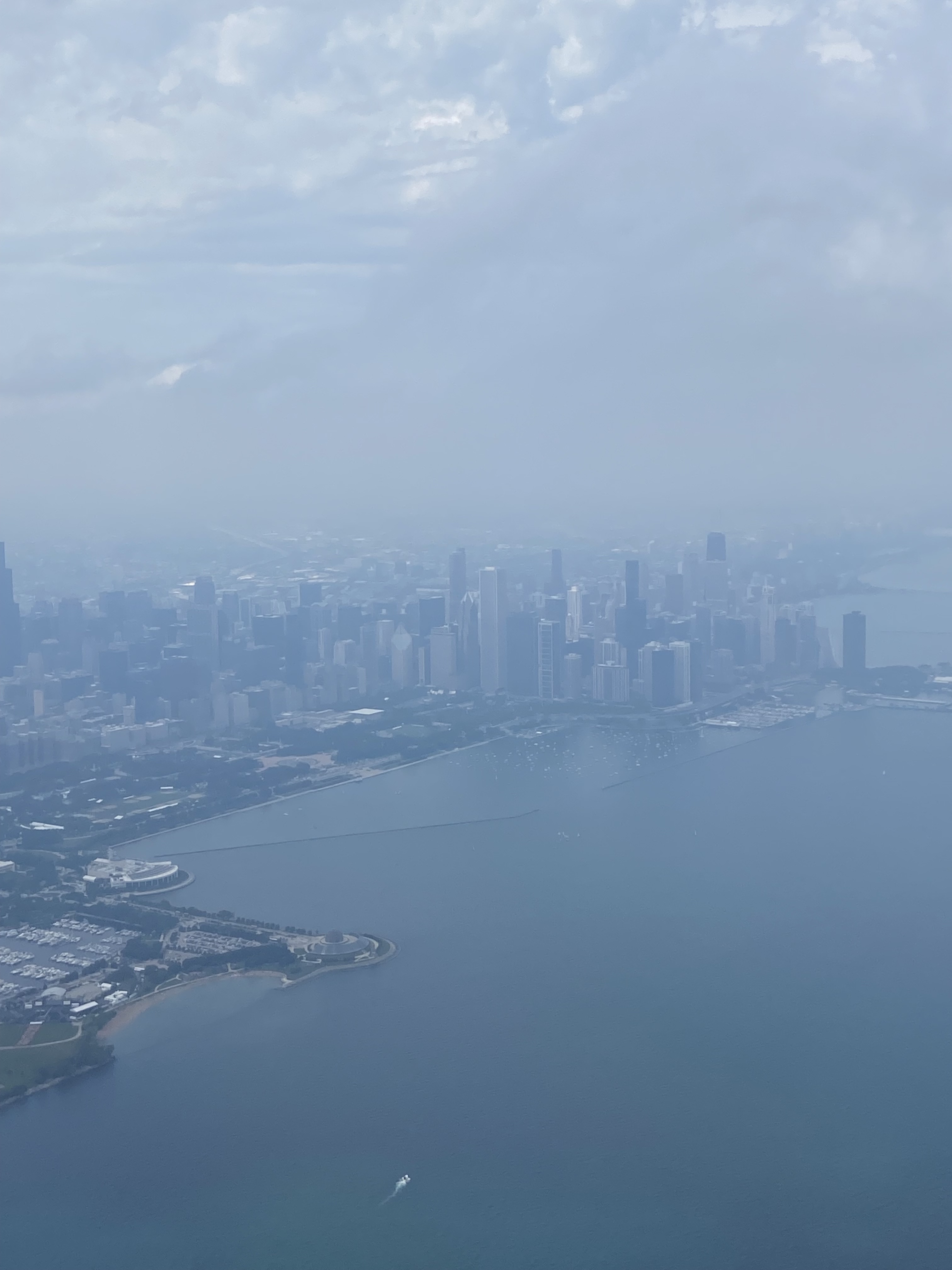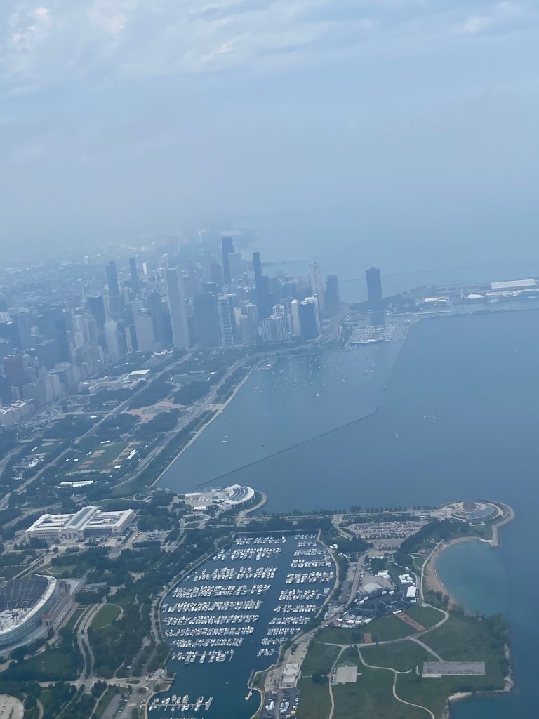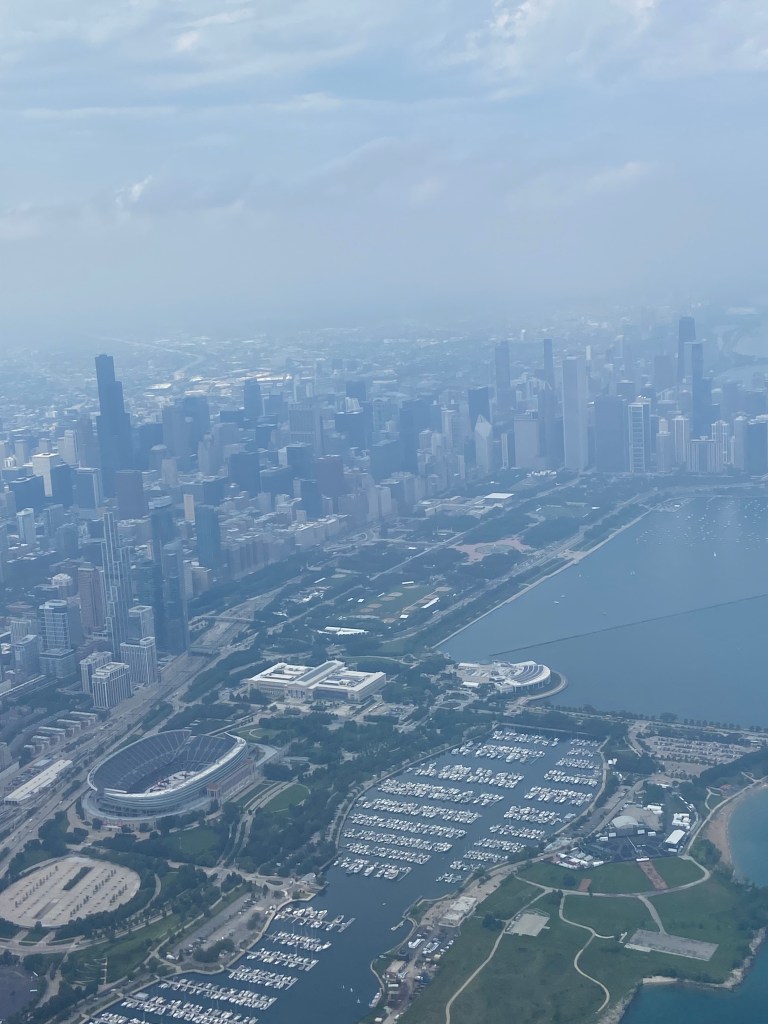 Our first views of the Chicago skyline from the plane as we approached Chicago Midway