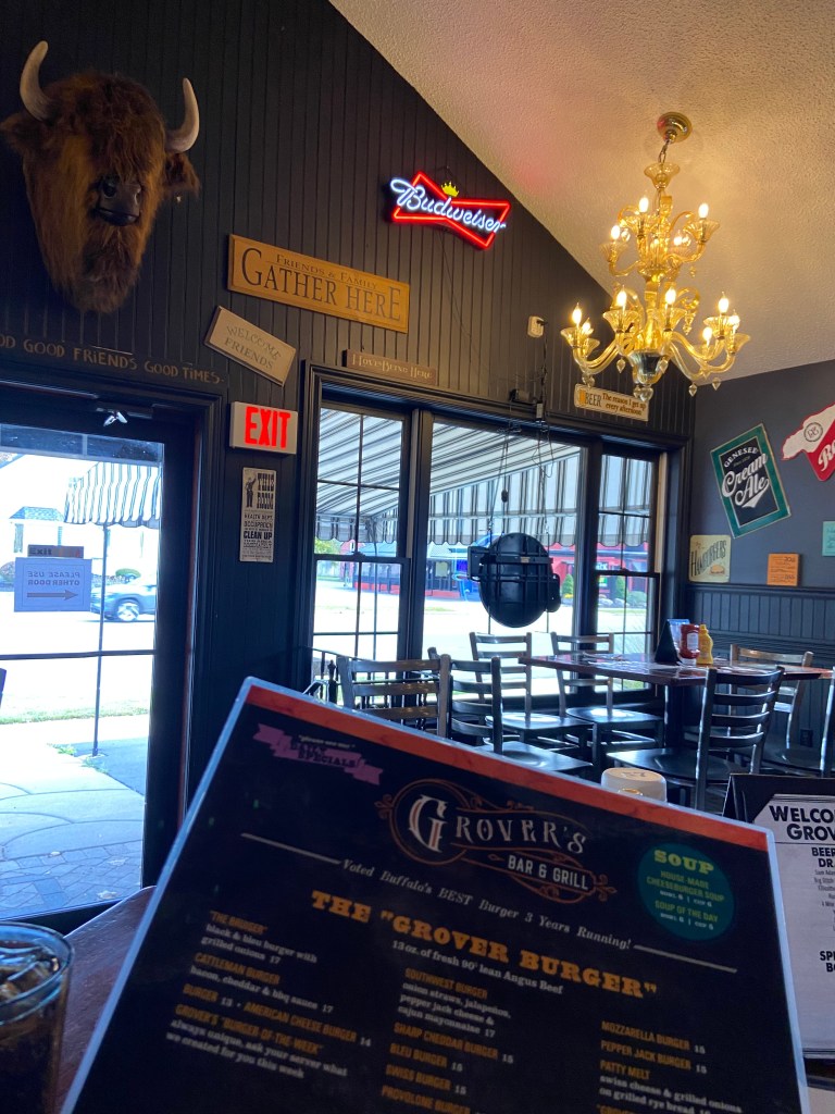 I had my lunch at Grover’s Bar & Grill on Transit Road in East Amherst. It was originally a hunting lodge built by former President Grover Cleveland and was featured on Food Network’s “Drive-ins, Diners, and Dives”. The place is adorable — very welcoming and nicely decorated in a rustic way. The waitress was friendly and fun. I liked it! One thing to note: they are “cash only” – it wasn’t a problem for me cause I had cash on me and they do have an ATM in case I didn’t! So, all was good!