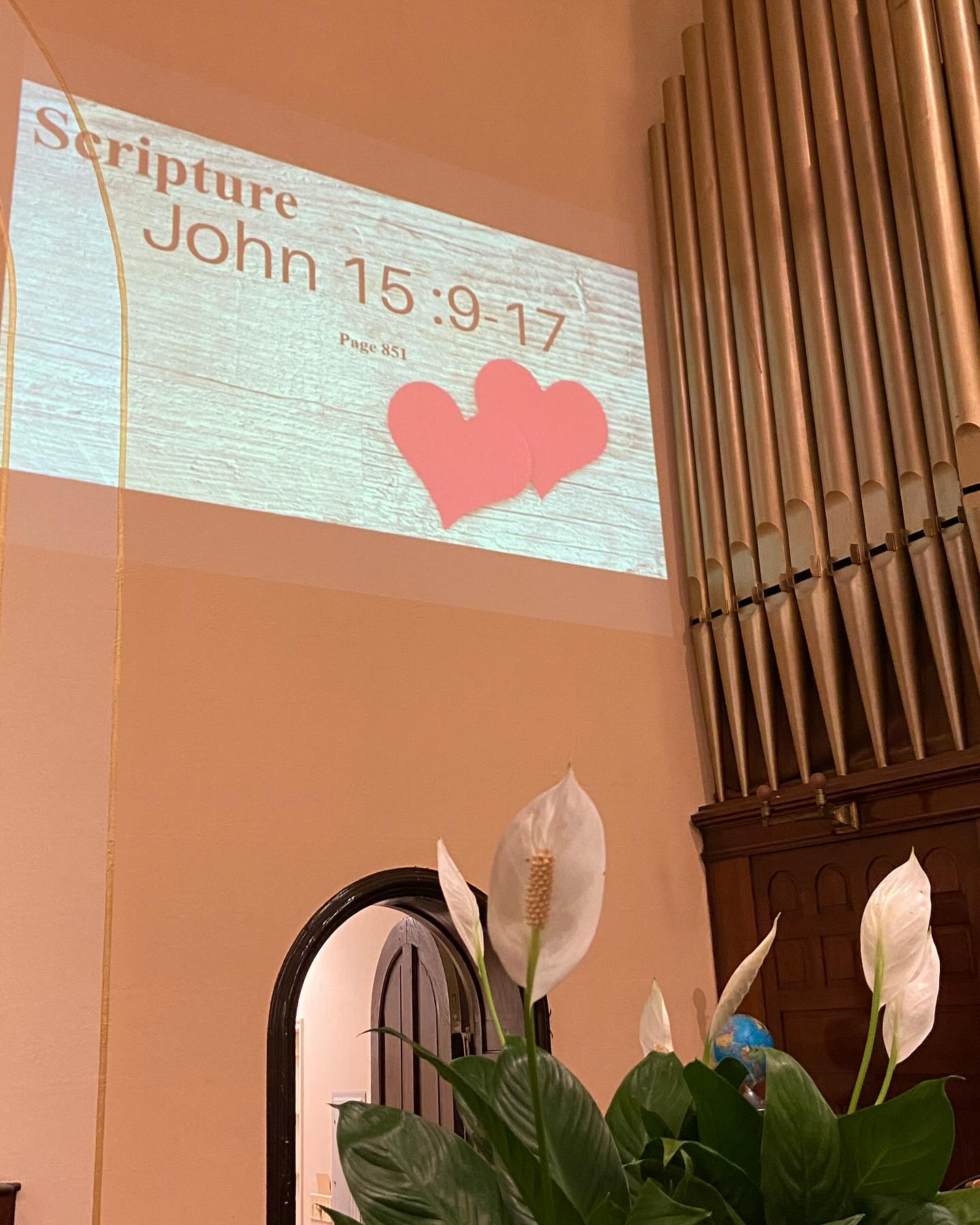 I’m always amazed when the Daily Photo Topic turns out to be a perfect prompt to get a photo during Sunday Worship!!! One of our scripture readings this morning was John 15:9-17, which reads (two different translations of the same scripture):