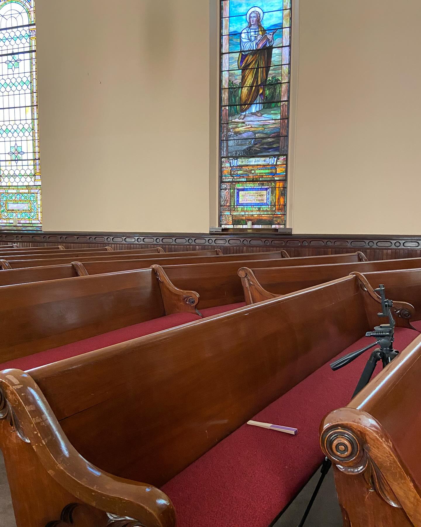 This is where I sit every Sunday morning – the tripod is what I use to video the service for our Facebook page and YouTube channel.