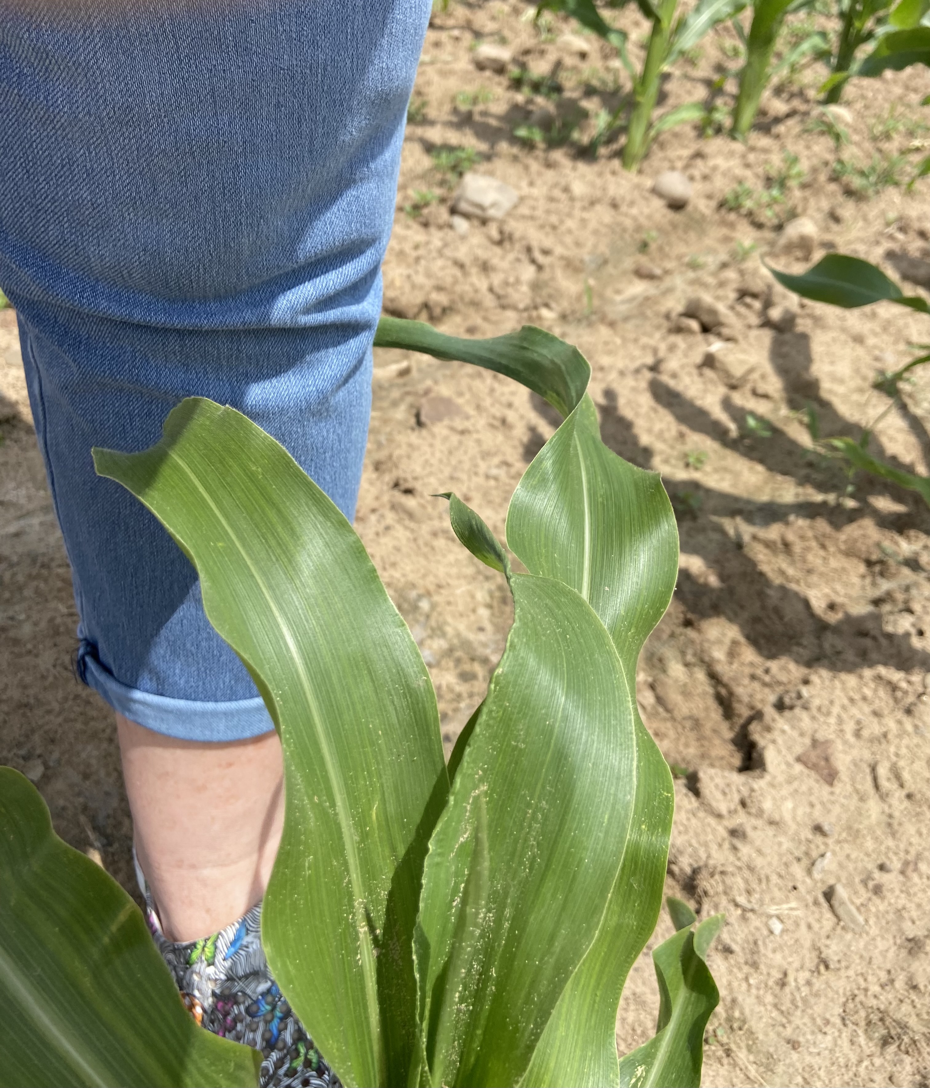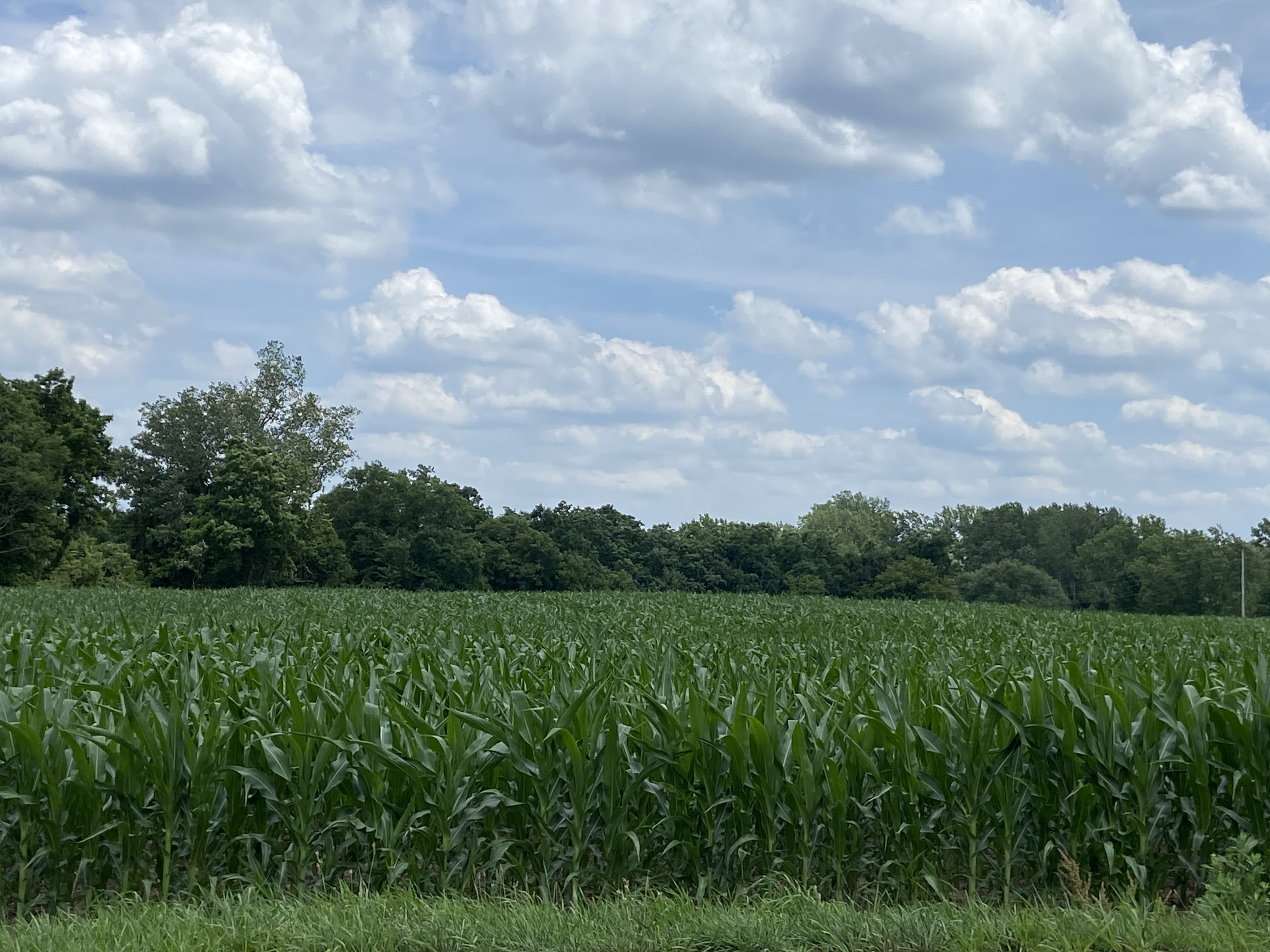 The weather has been so good this year – no late snowfall or heavy freeze to stunt early crops – that it was difficult to find a corn field with corn stalks this short to get a photo that represents that wonderful old saying “knee high by the fourth of July”. There were a few other fields that aren’t much taller than this, but they were set back behind a deep ditch that I wasn’t about to wander through for the photo!