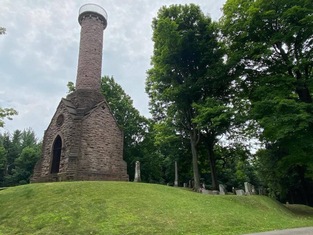 The Soldiers and Sailors Monument at the highest peak in Mount Albion Cemetery.