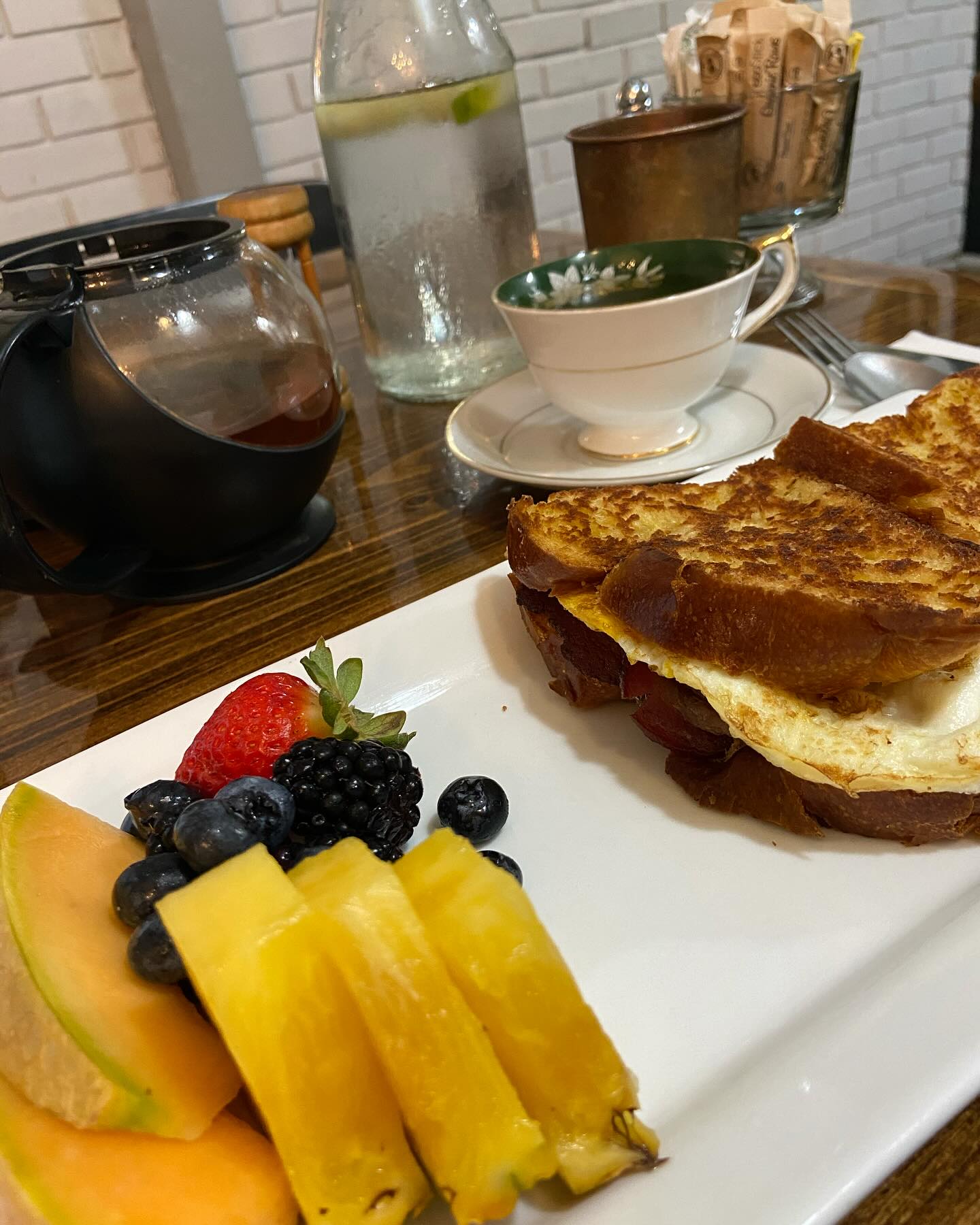 Had this delicious lunch with fresh fruit and breakfast sandwich at the sweetest little restaurant, today…..will tell all about it in a separate post about my adventurous day!
