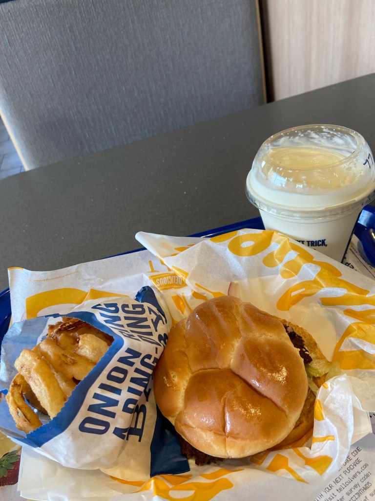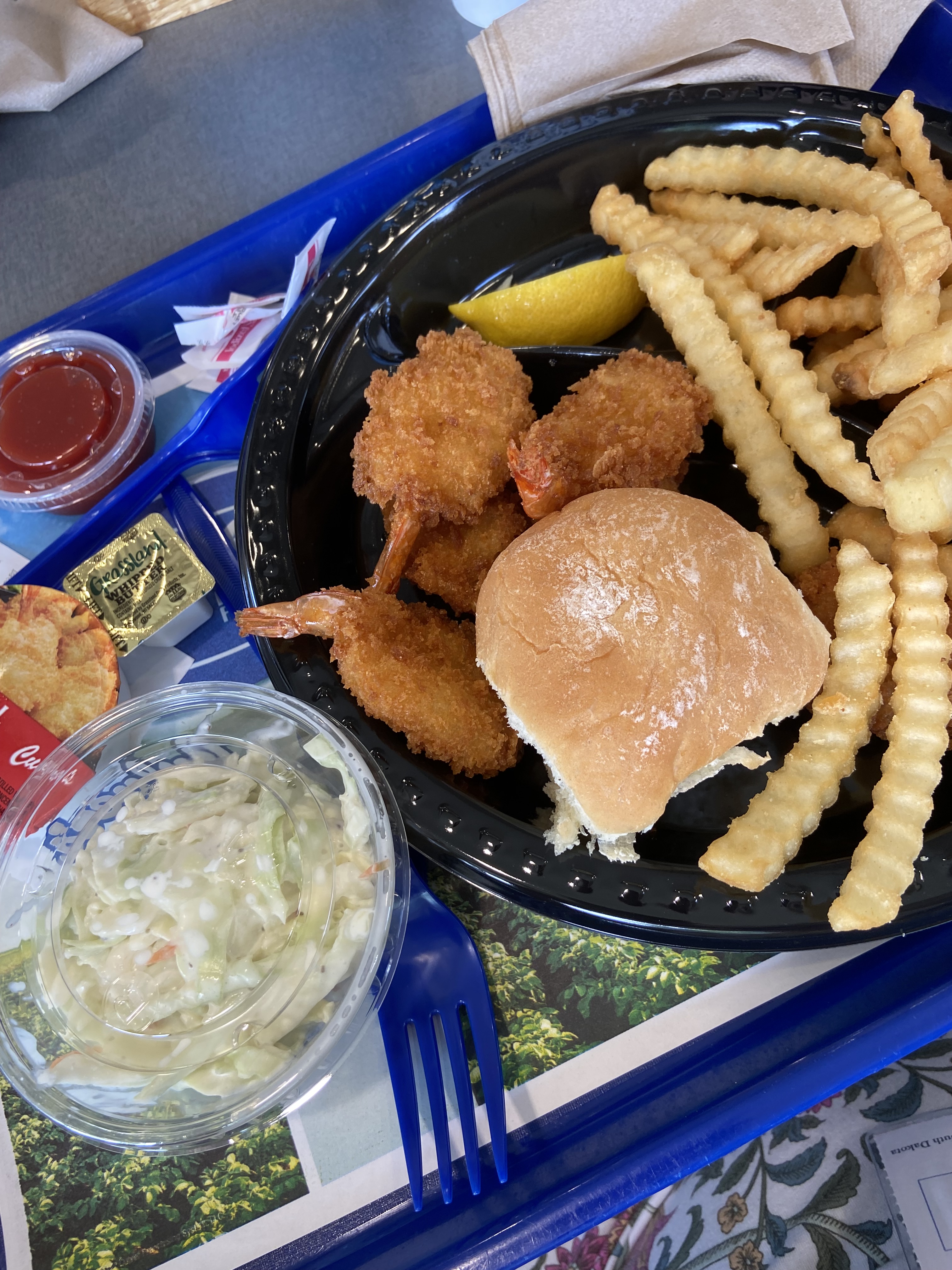 I first asked the young guy who took my order about the pork loin sandwich – I wondered if it was breaded or just sliced pork. I said “can you tell me about the pork sandwich?” – I immediately realized he didn’t speak English very well…..he said “yes, it is pork on a bun”….I decided to be more clear and asked if it was breaded and he said yes it is on bread…..no, I said, not ON bread, is the pork breaded…..he said “you don’t want the bread?” – I just laughed and realized I was not going to get anywhere with him, so I just ordered the shrimp — it was an excellent choice and I was very happy with it, but kinda sad about missing out on the pork sandwich! hahaha I looked it up online after and saw that it IS a nice breaded piece of pork on a bun, so if I ever get to another Culver’s, that’s what I’m going to try!!! 🙂