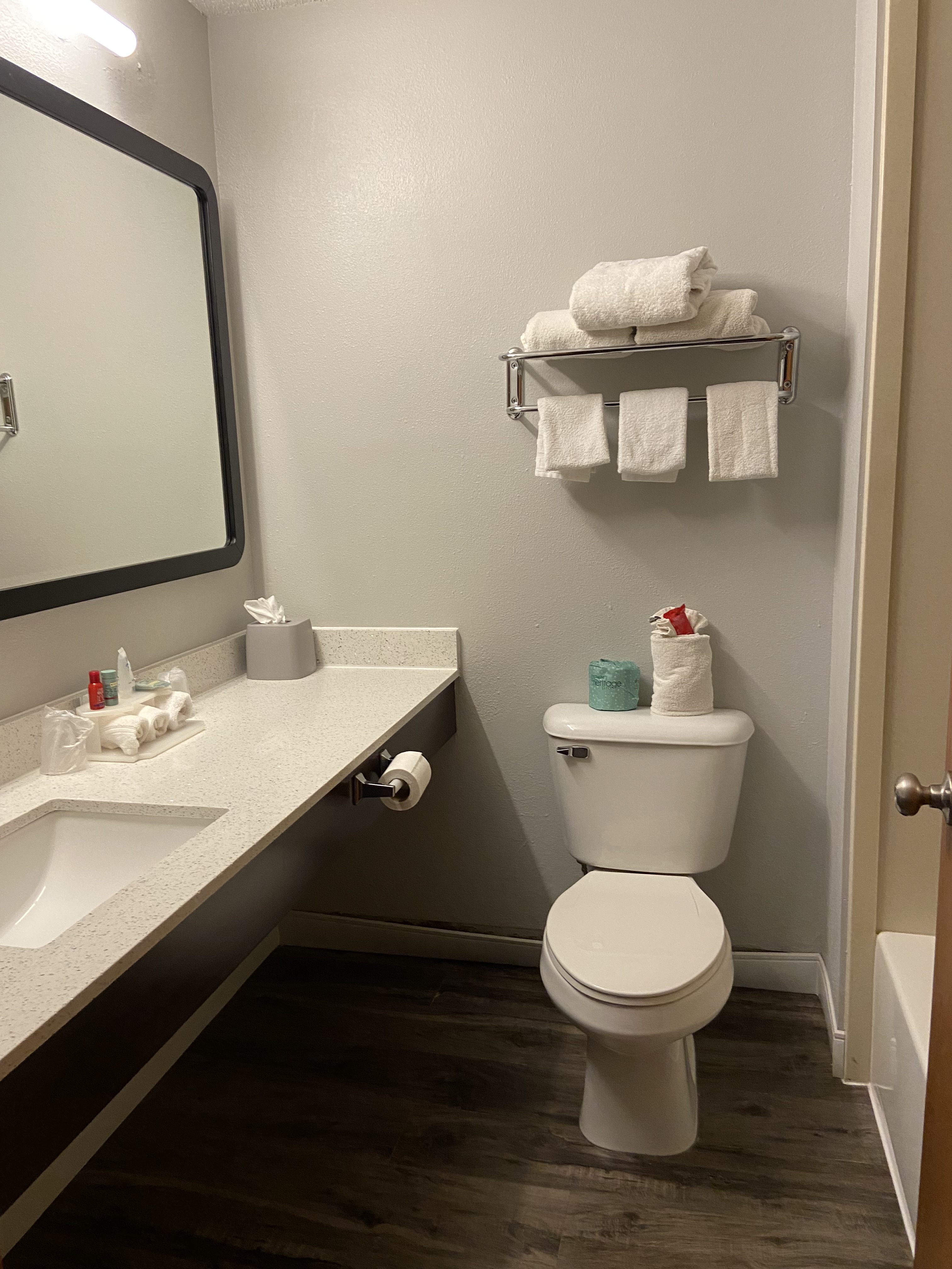 Our hotel on night # 2 was also a SureStay Plus, like the first night, but without the high bed…..no need for acrobatics to get in this one! hahaha!!! But, it also wasn’t quite as comfortable — it was a very nice hotel — clean and had a fabulous shower and the breakfast was good…..but, I didn’t sleep as well – the bed just seemed a bit lumpy and the pillows weren’t very soft…..don’t get me wrong – I got a decent night’s sleep and the hotel was very nice — I’m definitely not complaining about it – all our hotels were good…..it was just my least favorite of the ones we stayed at and it took me a while to fall asleep.