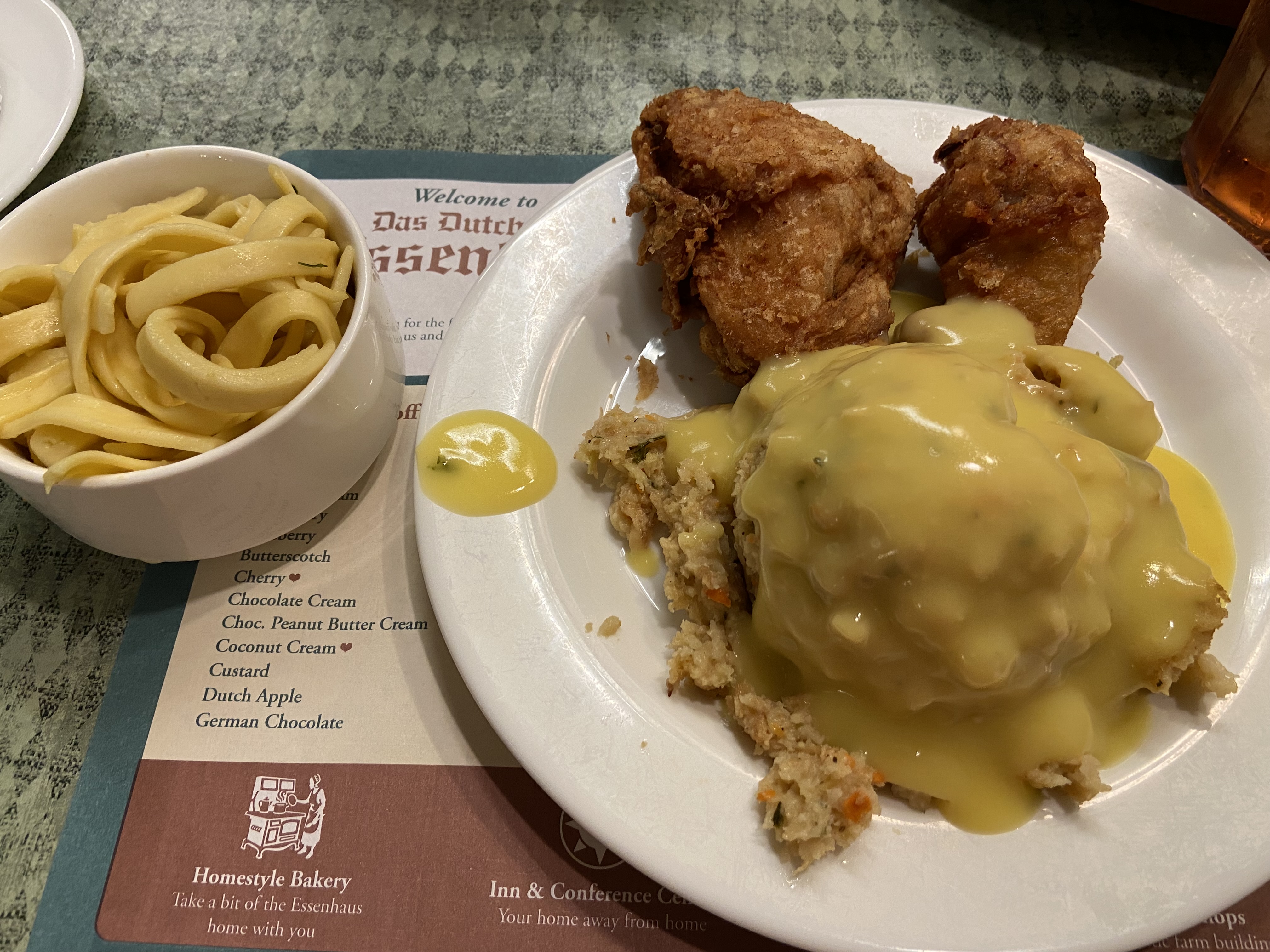The complimentary breakfast at the hotel was good…..after, we loaded up the bus and hit the road at 9:00 am. Our stop on Day 2 was at Das Dutchman Essenhaus in Middlebury, IN – a really sweet Amish village of shops and a restaurant and bakery. We had three hours to spend there, including time for our lunch. I really enjoyed this place. Cool stuff to look at and lots of shopping and delicious food!
