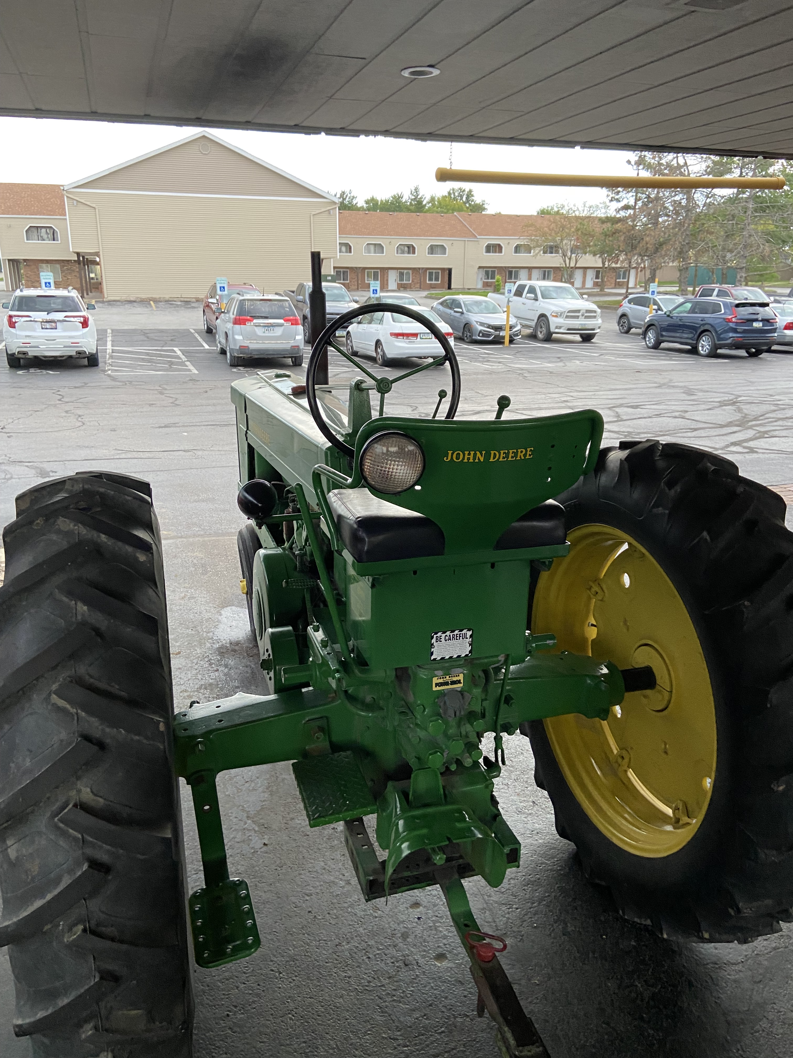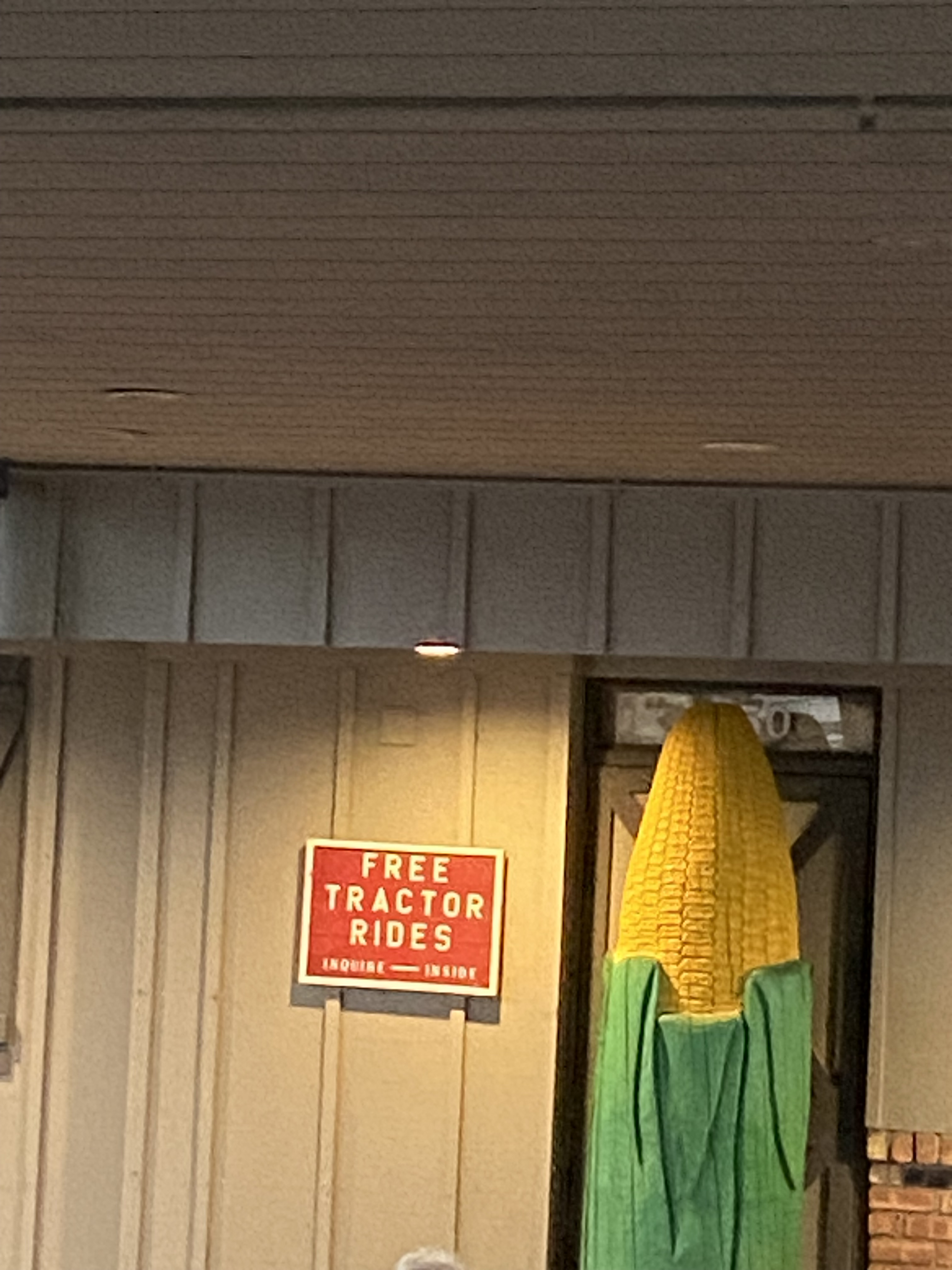 But the hit of the night? The free tractor ride!!! This ole farmer dude was available to give tractor rides…..Kathy asked if he’d give us one and he said “yep”…..I was the first to get up on the wagon hitched to a very old (OK, I’ll be politically correct – vintage) John Deere! We soon filled the wagon with some wives on their husbands laps cause we ran out of seats!