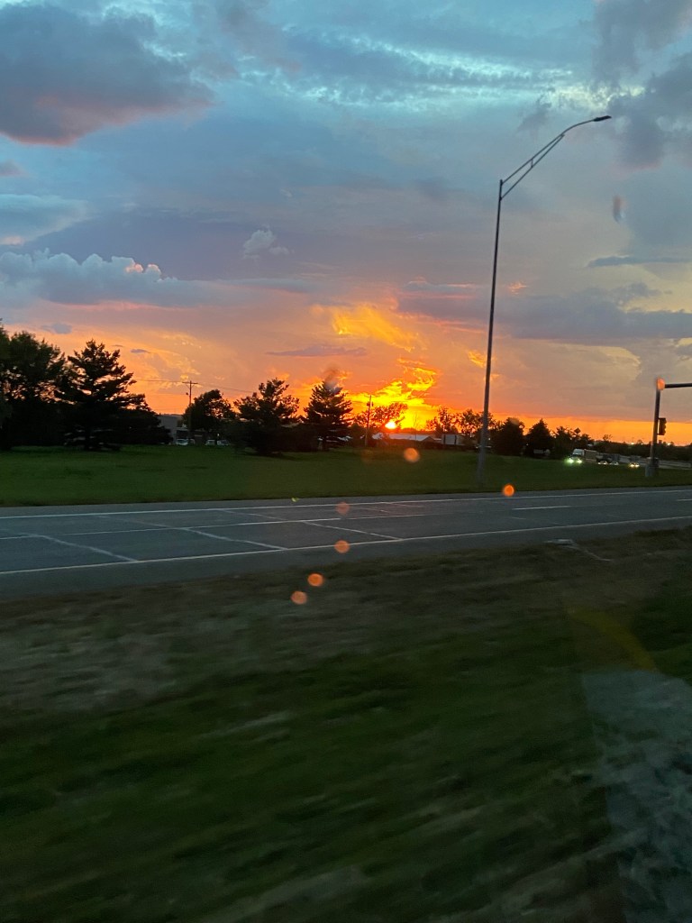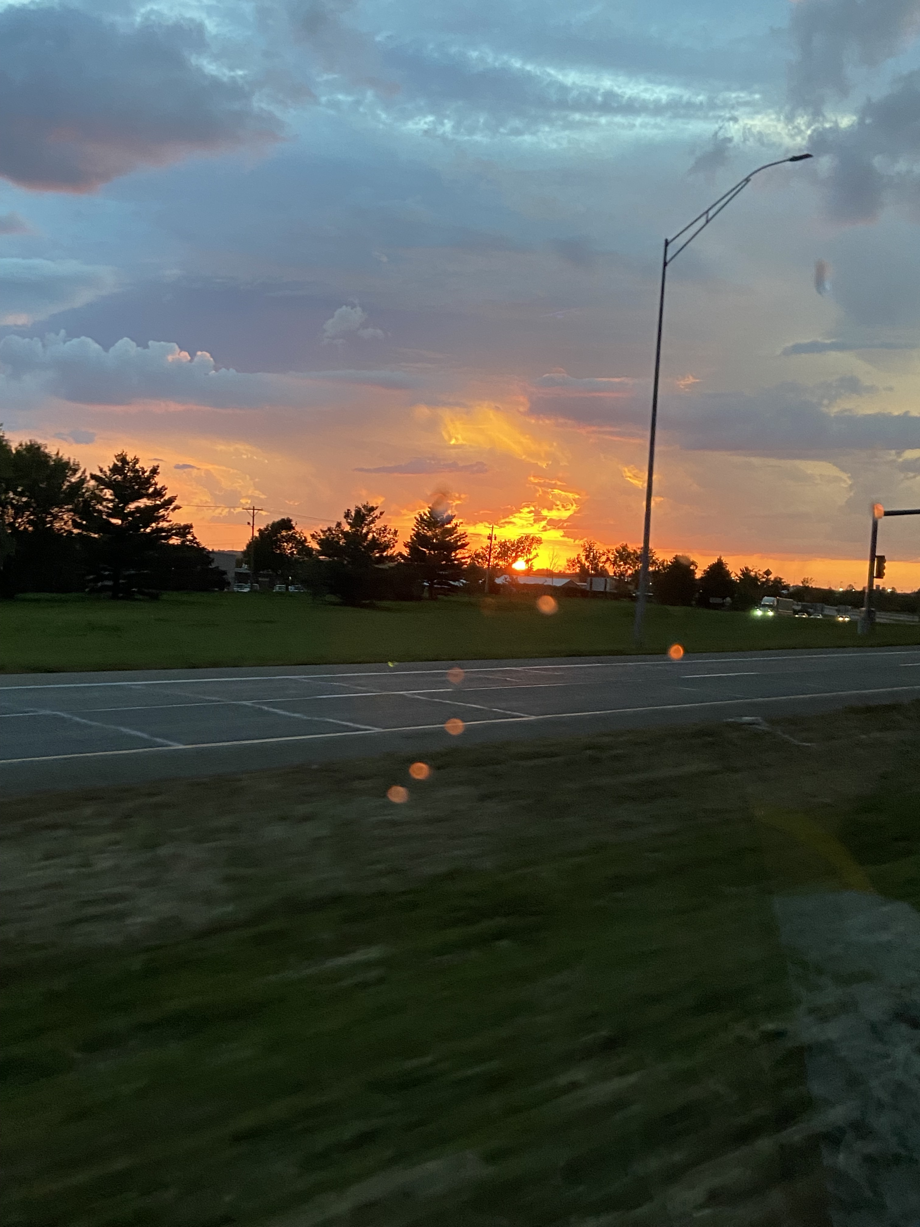On the way to the hotel, the rain came and then gave way to a beautiful sunset: