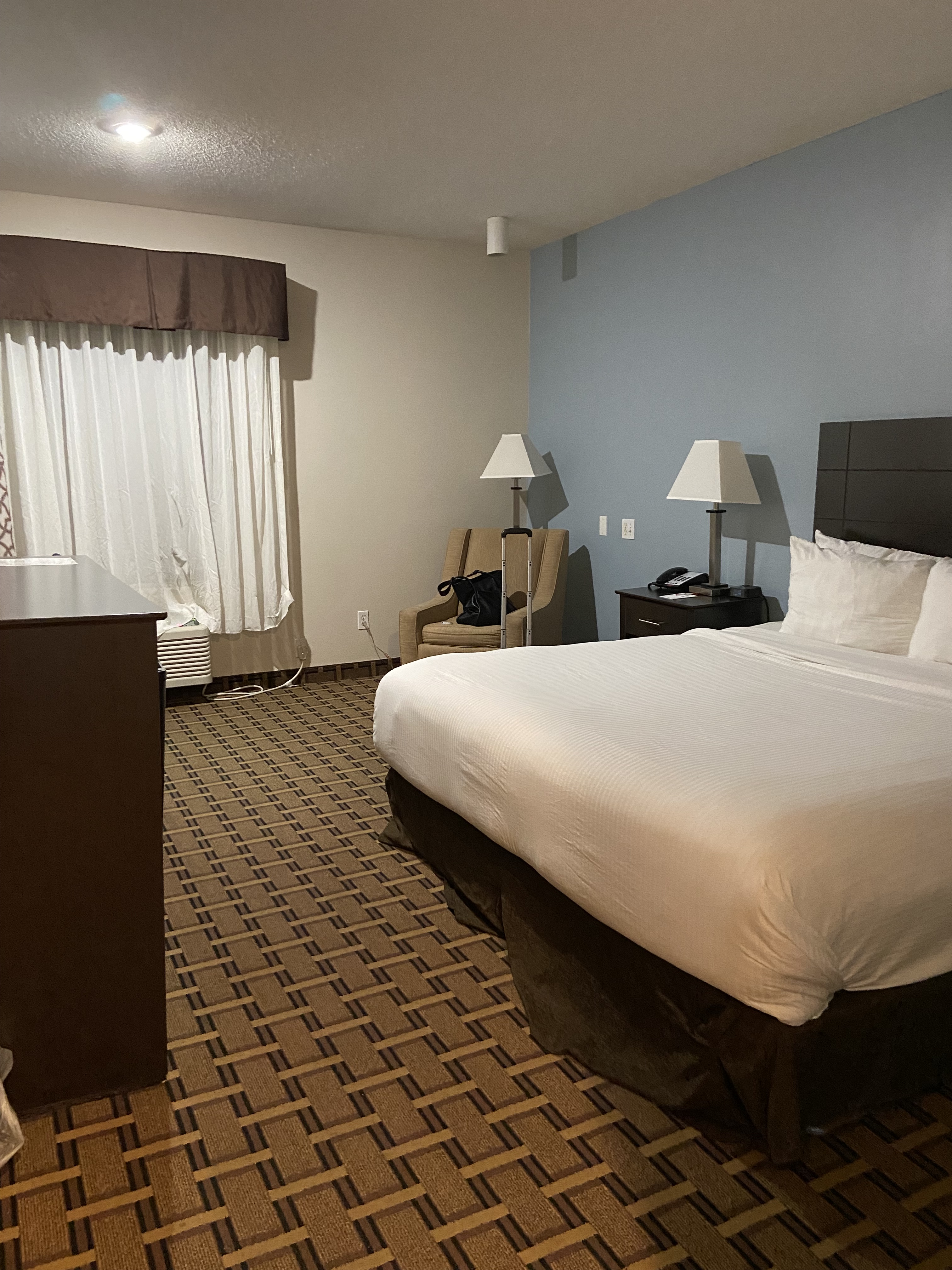 We arrived at our first hotel of the trip in Fremont, Indiana – SureStay Plus. It was a nice hotel – clean and comfortable. Getting there was funny….poor Rachel drove past the entrance drive and turned around in a shopping center behind the hotel and drove past it again and turned around down the street and finally figured it out…..to be fair, it was kinda hidden and difficult to figure out…..but, she got us there!