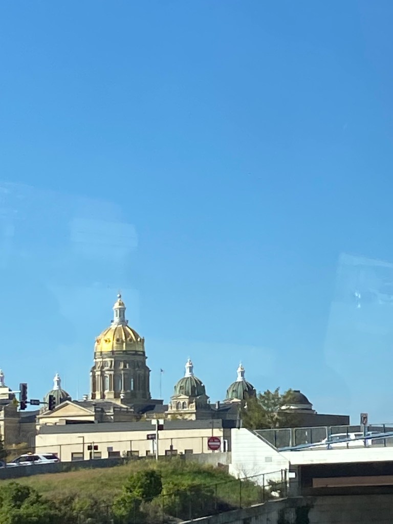 On our way to the gardens, we got a glimpse of the beautiful gold dome on top of the Iowa State Capitol Building in Des Moines! What a sight — almost looked like the Taj Mahal!!! I would have enjoyed getting a closer look at that!
