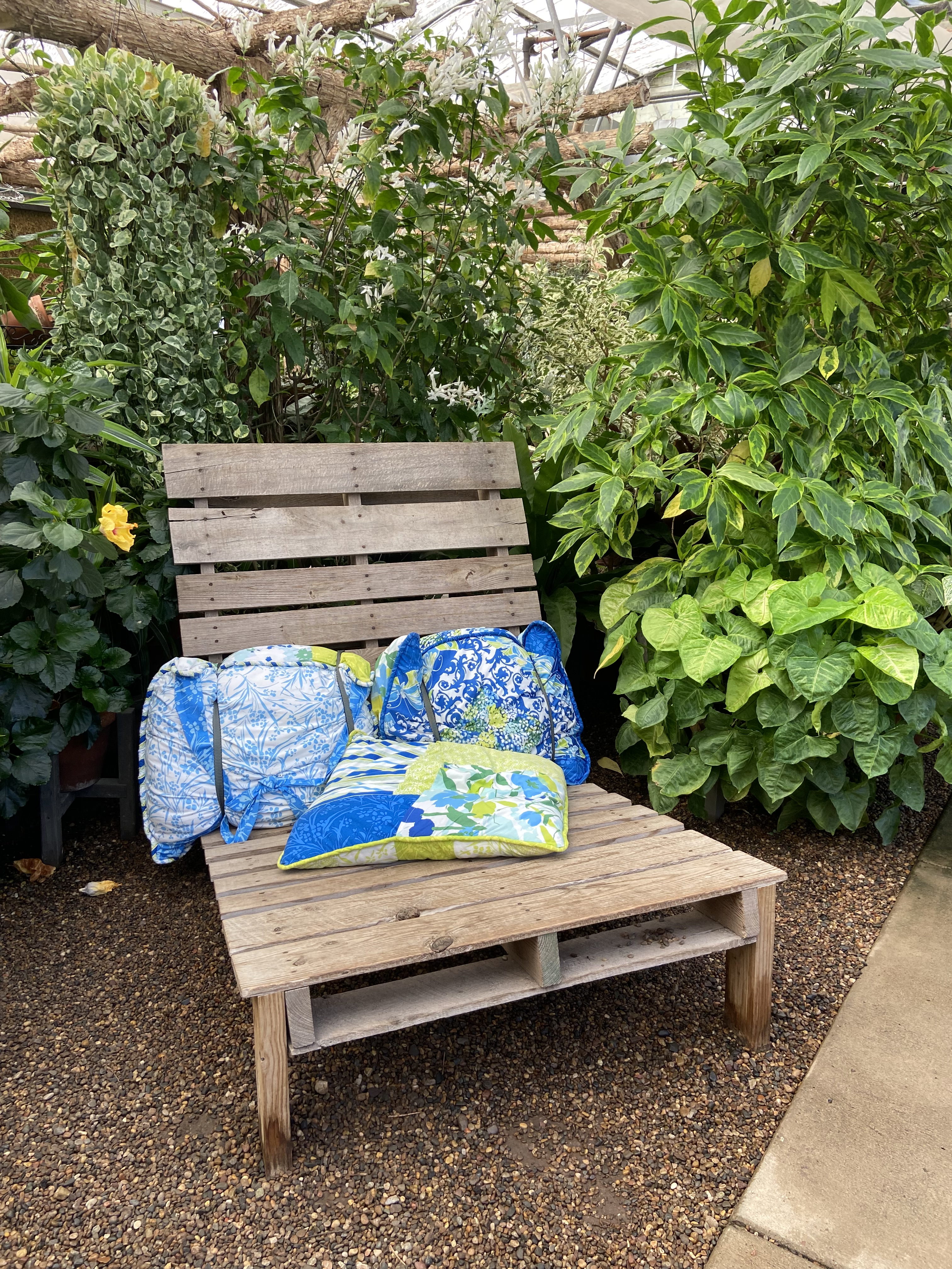 We got back on the bus at 1:00 and drove to a spot on the property where they have a “flower quilt” – a spot where they plant flowers in the pattern of a quilt square – in this case, it was a star pattern. Kathy had us get off the bus and go stand all around the flower quilt for a group photo. She’s going to send us a copy of the photo she took…..I’ll try to do a follow up post with any photos that she sends me, but for now, here is the flower quilt without the group around it!