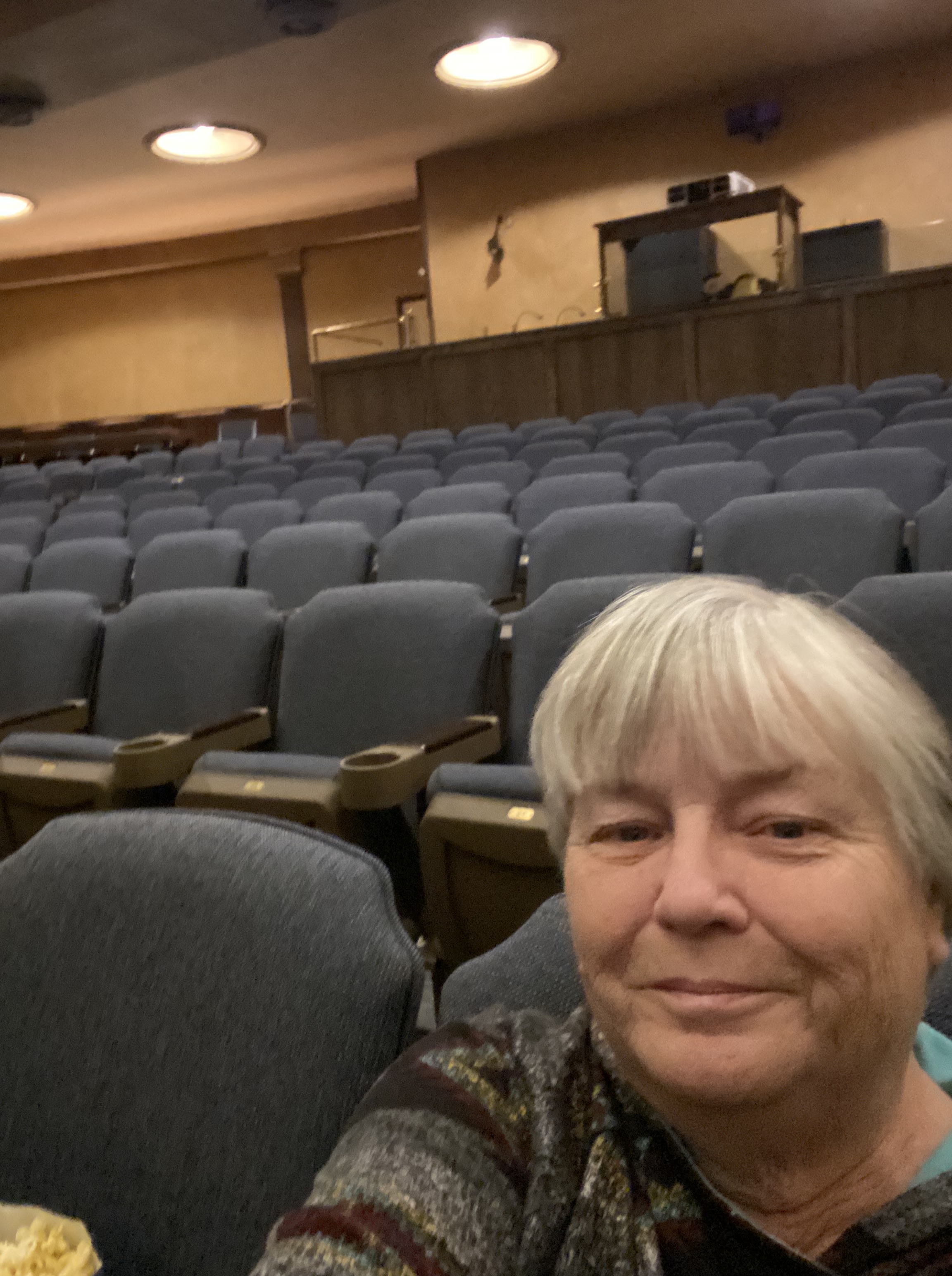I was the first to arrive for the 4:00 show…..I bought some popcorn (it is against all laws of nature to see a movie in a theater without popcorn) and a coke and chose my seat. It wasn’t long after I took my photos and settled in that others started to arrive…..there were about a dozen by the time the show started….all behind me, which was nice – I felt like I was the only one there and there were no heads in my way!!! 😉